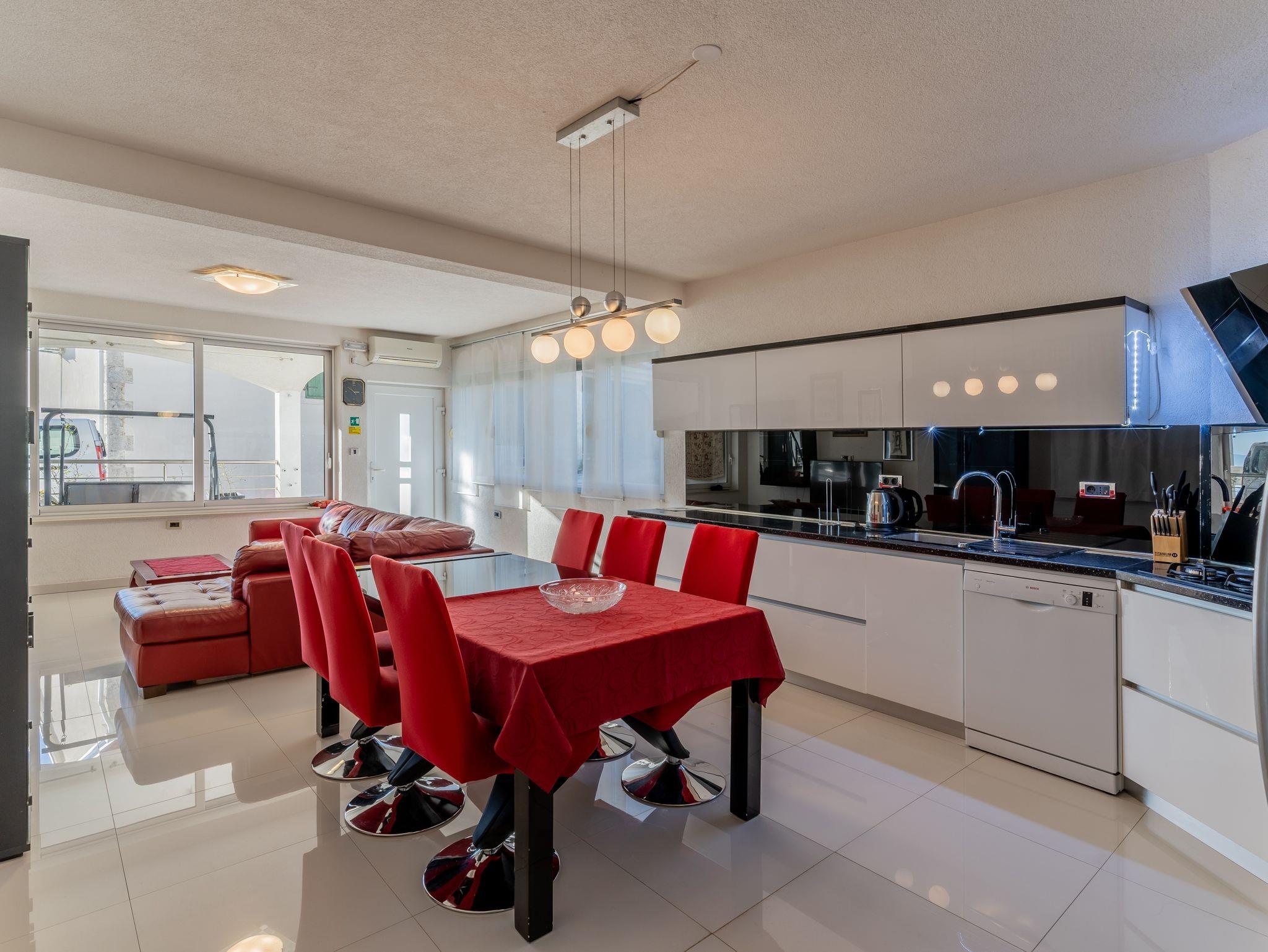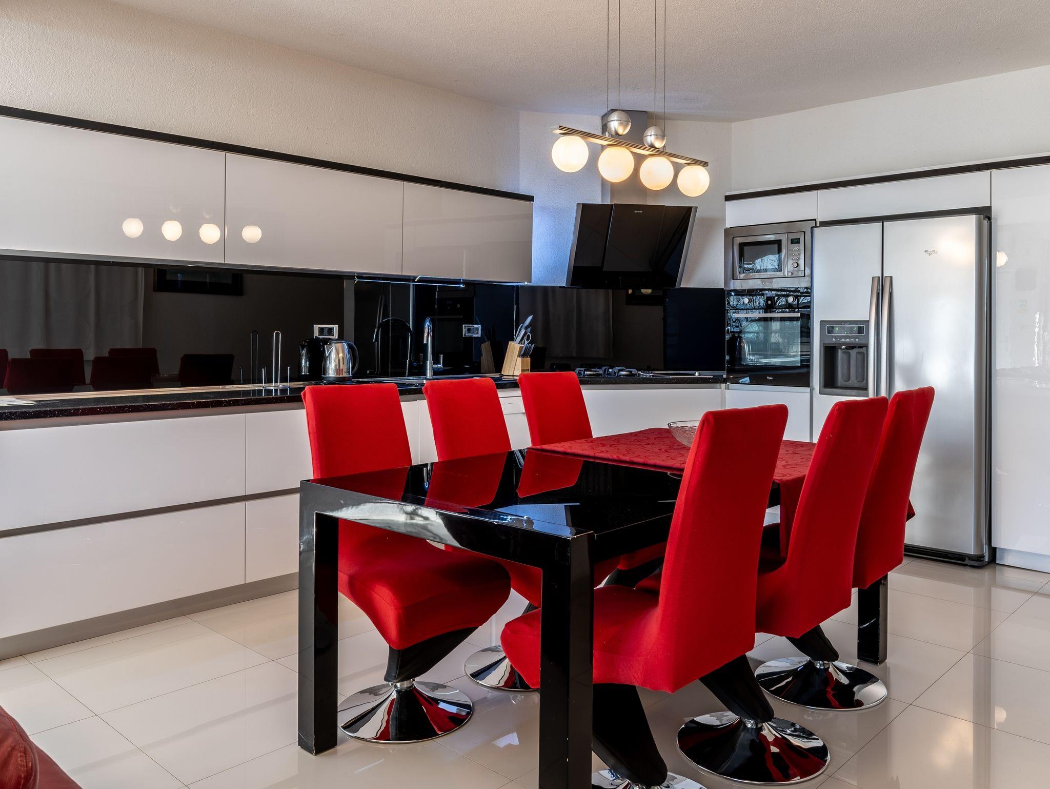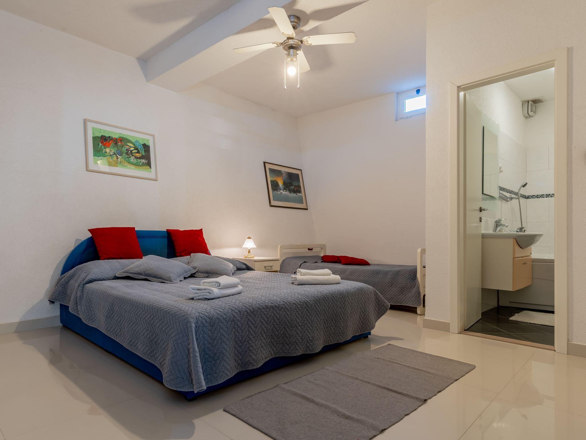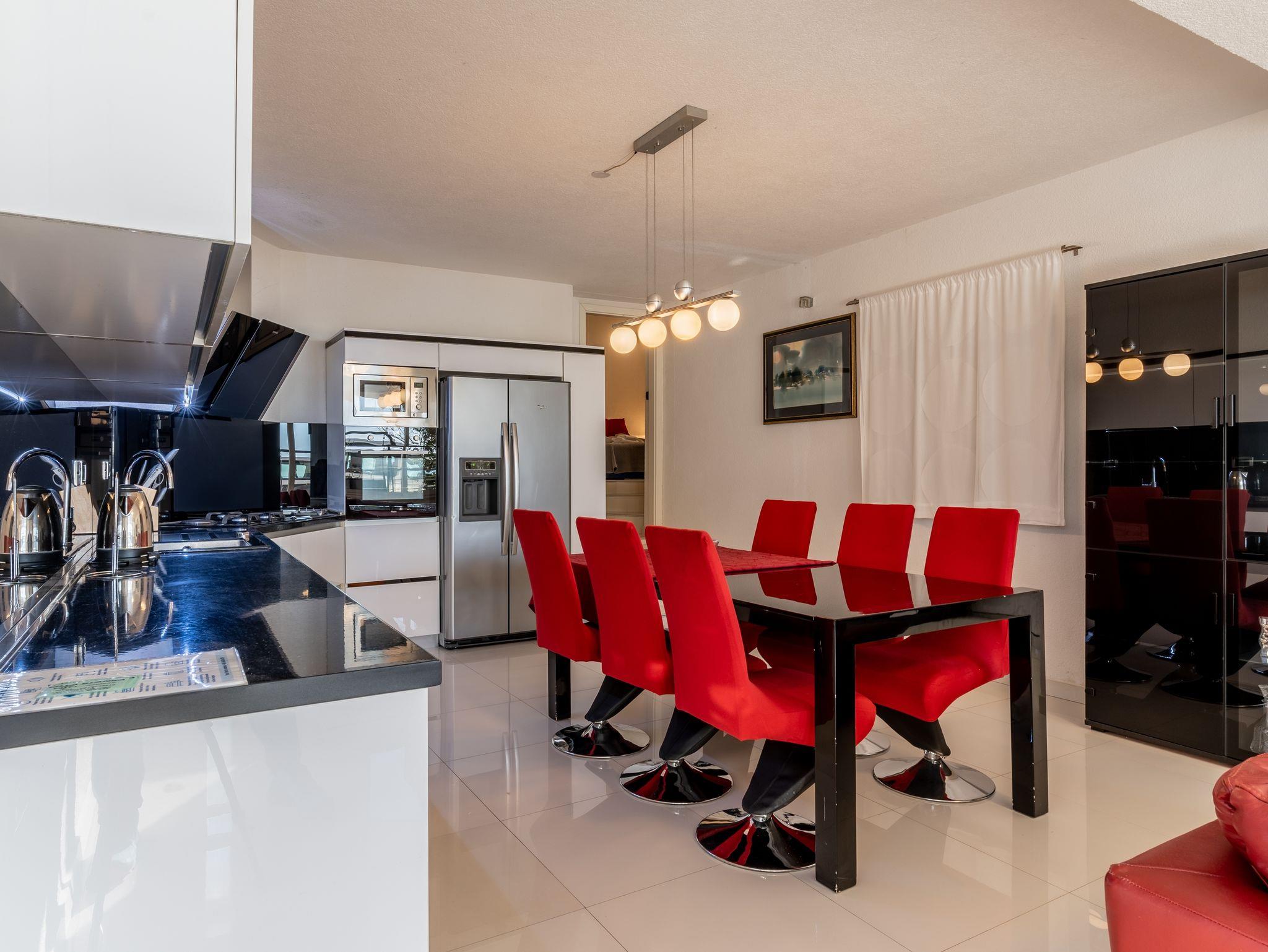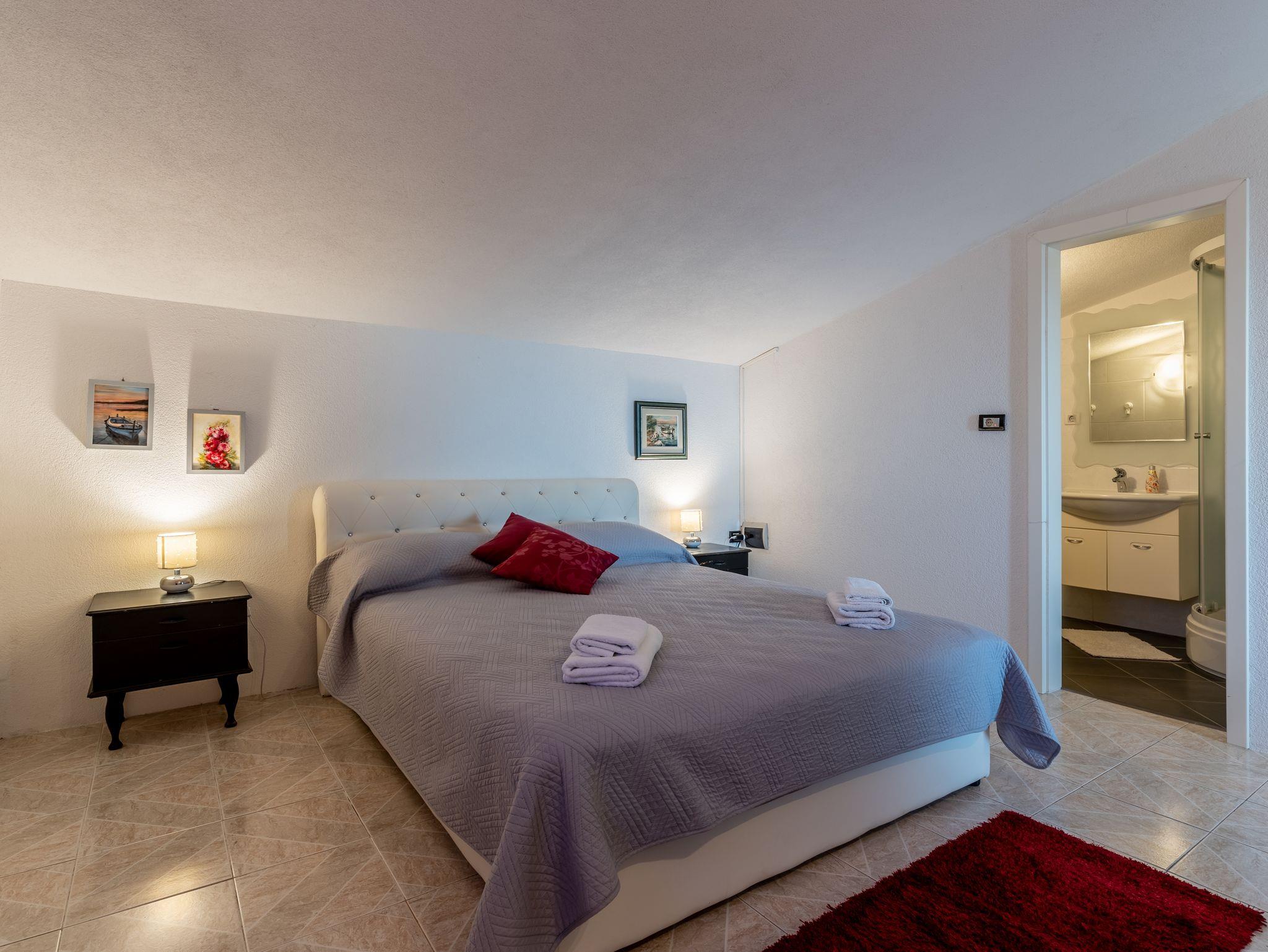Haus bietet Platz für 12 Gäste. Die Betten sind in Schlafzimmern, die es 6 gibt, innerhalb einer Gesamtfläche von 182m2, angeordnet. Die Gäste haben eine eigene Terrasse zur Verfügung, auf der sie in warmen Sommernächten genießen können. Das Haus bietet Meerblick. Für vollen Genuss und Entspannung gibt es einen privaten Grill für Gäste dieser Unterkunft. Während ihres Aufenthalts können sich Gäste im privaten Schwimmbad entspannen. IM PREIS INBEGRIFFEN: Kurtaxe, Endreinigung, Klimatisierung, Pool, Parkplatz, Internet, Kinderbett, Bügeleisen, Bügelbrett, Föhn. Die Verfügbarkeit zusätzlicher Dienstleistungen in Ihrem reservierten Termin und die Preise derselben (falls nicht aufgeführt) müssen im Voraus überprüft werden. Zusätzliche Dienstleistungen die in der Zahlungsaufforderung nicht aufgeführt sind werden direkt beim Vermieter bezahlt, angenommen der Gast nutzt auch diese.