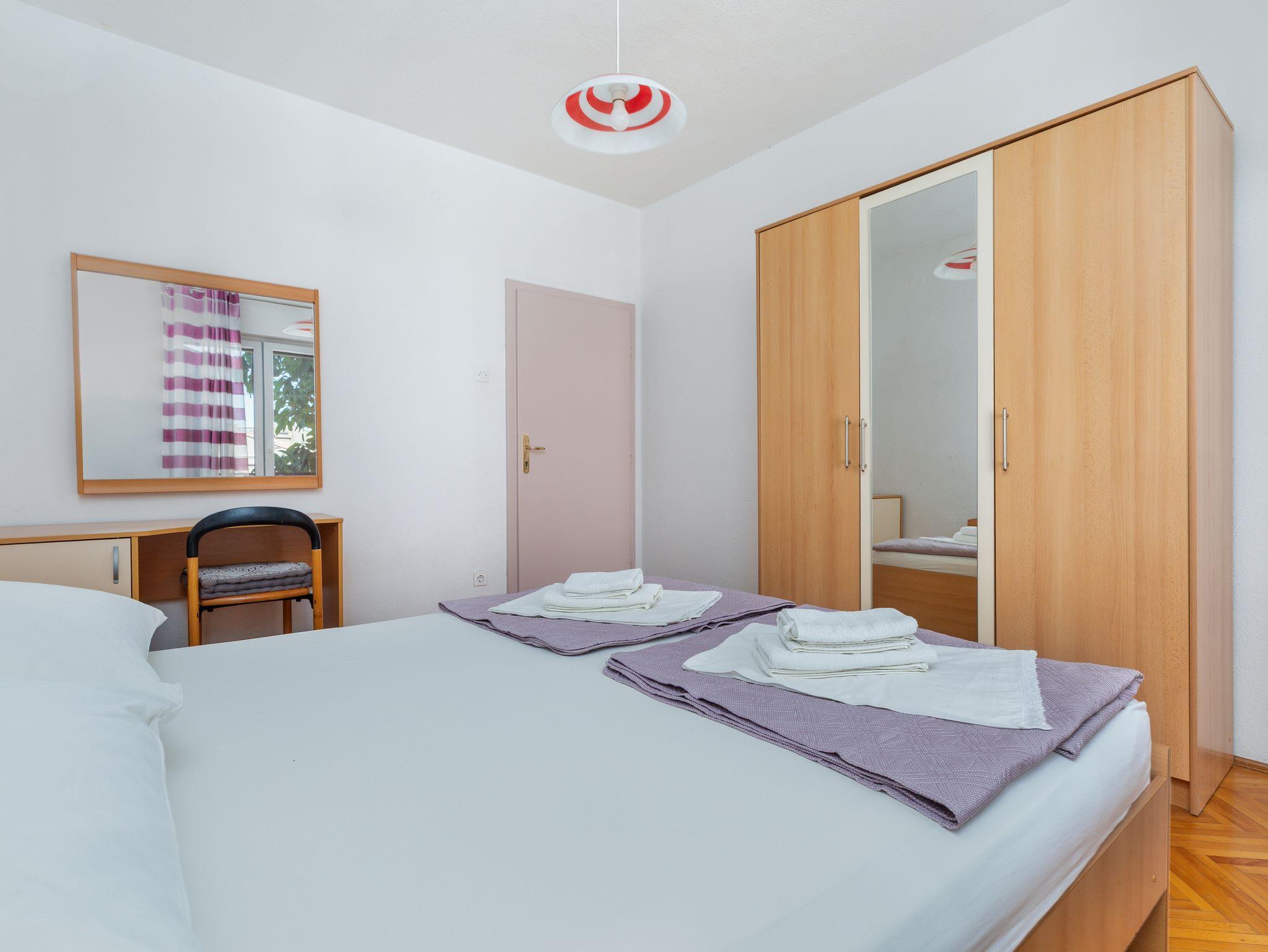 Ferienwohnung bietet Platz für 4 Gäste. Die Betten sind in Schlafzimmern, die es 2 gibt, innerhalb einer Gesamtfläche von 63m2, angeordnet. Die Gäste haben einen eigenen Balkon zur Verfügung, auf der sie in warmen Sommernächten genießen können. Das Apartment bietet Meerblick. Es ist erlaubt, Speisen auf dem Gemeinschafts-Grill vorzubereiten. In der Unterkunftseinheit besteht die Möglichkeit des Mitbringens von Haustieren, und die Dienstleistung ist im Preis der Unterkunft enthalten. IM PREIS INBEGRIFFEN: Kurtaxe, Endreinigung, Klimatisierung, Parkplatz, Internet, Haustiere, Bügeleisen, Bügelbrett, Föhn, tragbarer Grill, Sonnenschirm. Die Verfügbarkeit zusätzlicher Dienstleistungen in Ihrem reservierten Termin und die Preise derselben (falls nicht aufgeführt) müssen im Voraus überprüft werden. Zusätzliche Dienstleistungen die in der Zahlungsaufforderung nicht aufgeführt sind werden direkt beim Vermieter bezahlt, angenommen der Gast nutzt auch diese.