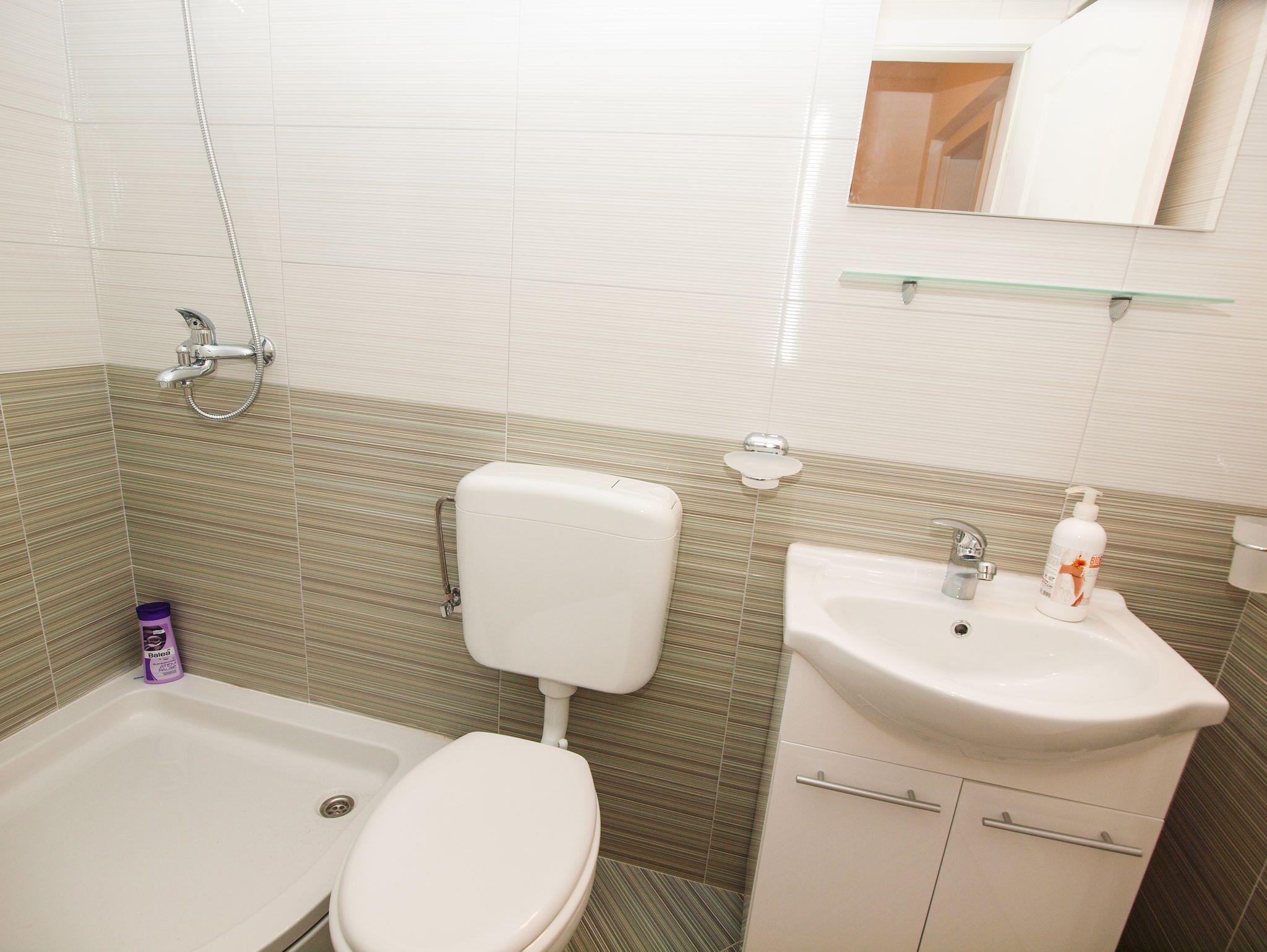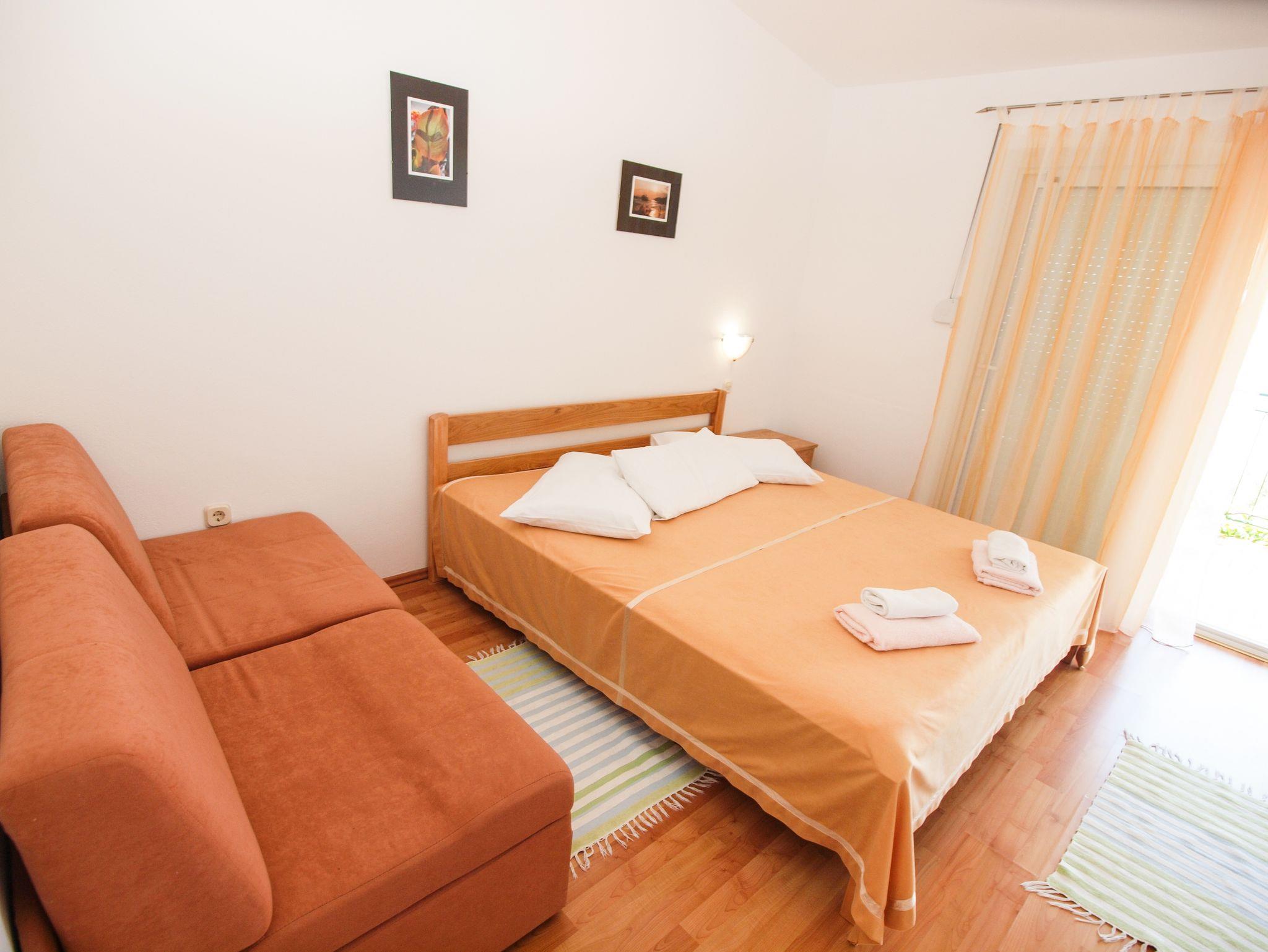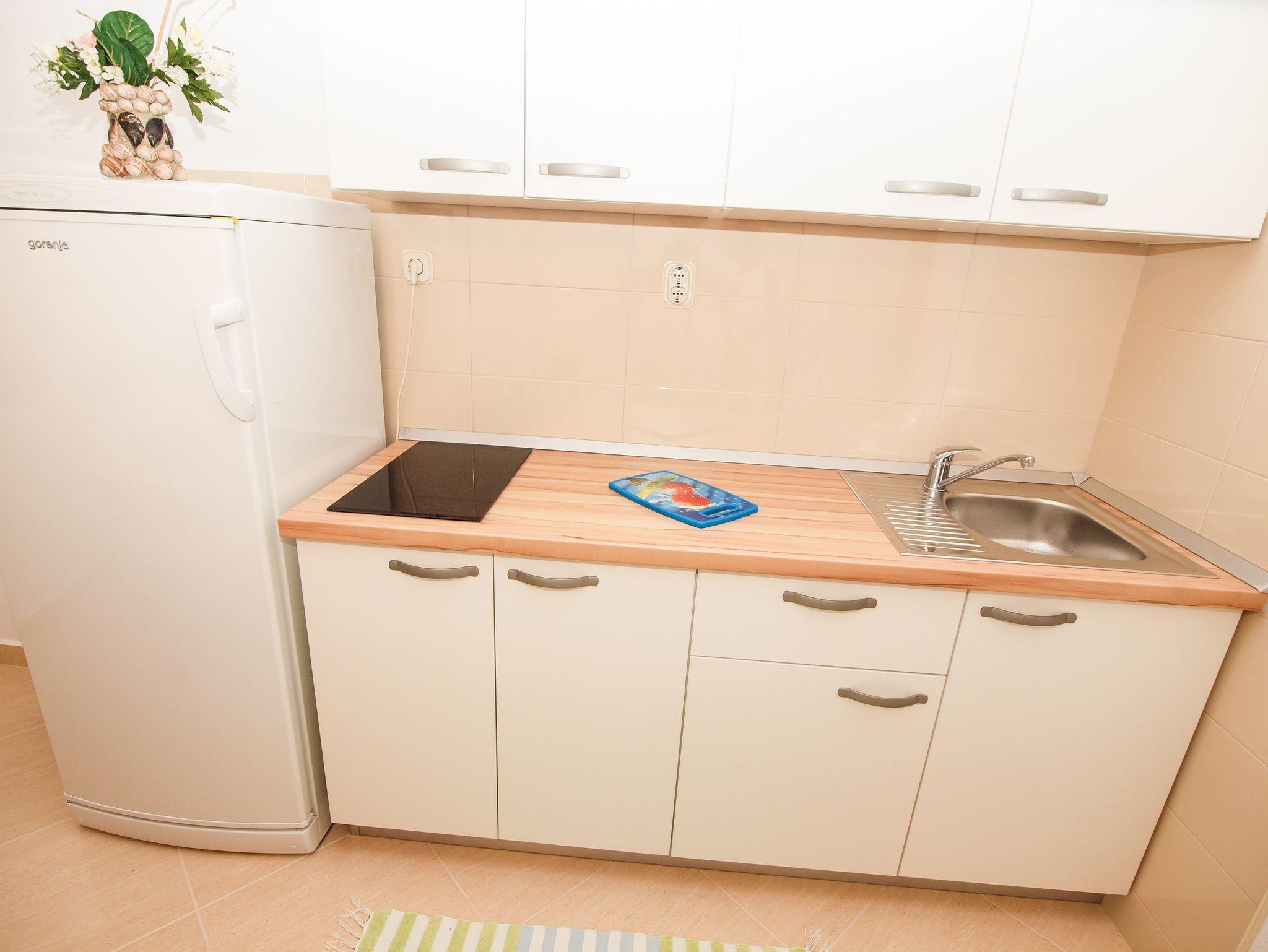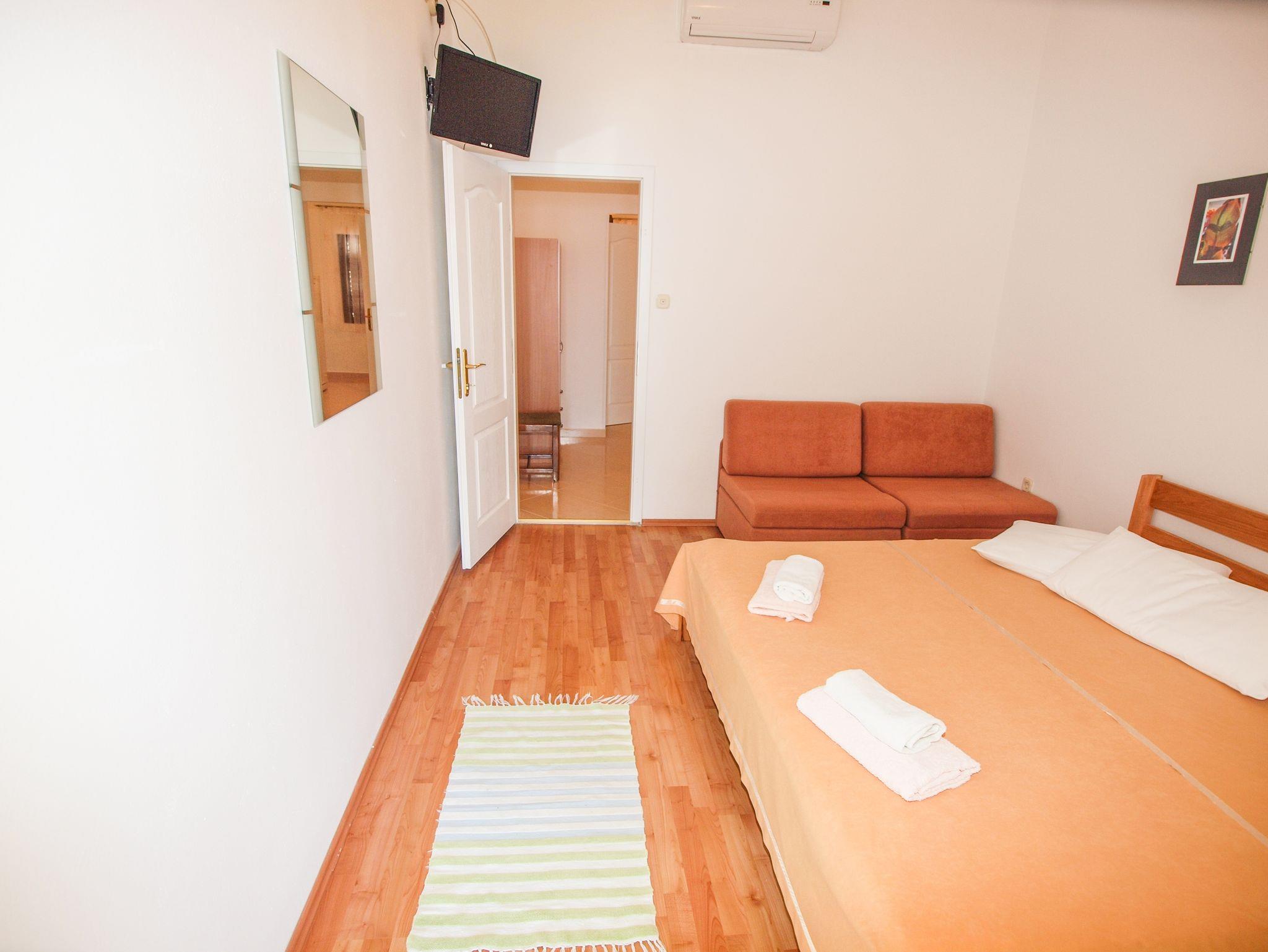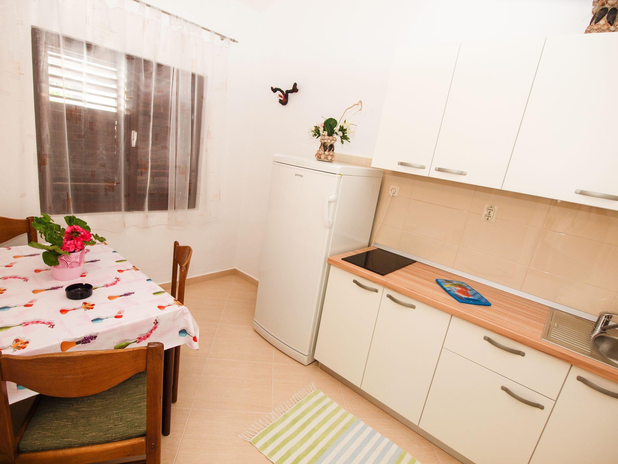 Ferienwohnung bietet Platz für 3 Gäste. Die Betten sind in Schlafzimmern, die es 1 gibt, innerhalb einer Gesamtfläche von 32m2, angeordnet. Die Gäste haben einen eigenen Balkon zur Verfügung, auf der sie in warmen Sommernächten genießen können. Das Apartment bietet Meerblick. Es ist erlaubt, Speisen auf dem Gemeinschafts-Grill vorzubereiten. In der Unterkunftseinheit besteht die Möglichkeit des Mitbringens von Haustieren gegen Aufpreis. IM PREIS INBEGRIFFEN: Kurtaxe, Endreinigung, Klimatisierung, Parkplatz, Internet, Kinderbett, Föhn. VERBINDLICHE ZUSÄTZLICHE KOSTEN: Aufzahlung für Kurzaufenthalte (prozentualer Zuschlag pro Nächtigungsanzahl: 30% - 1, 20% - 2, 10% - 3). UNVERBINDLICHE ZUSÄTZLICHE KOSTEN: Wäschewaschen (10,00 € Waschen), Bootsanlegeplatz (50,00 € pro Nacht), Haustiere (8,00 € pro Nacht), Fahrrad (20,00 € täglich (pro Stück)). Die Verfügbarkeit zusätzlicher Dienstleistungen in Ihrem reservierten Termin und die Preise derselben (falls nicht aufgeführt) müssen im Voraus überprüft werden. Zusätzliche Dienstleistungen die in der Zahlungsaufforderung nicht aufgeführt sind werden direkt beim Vermieter bezahlt, angenommen der Gast nutzt auch diese.