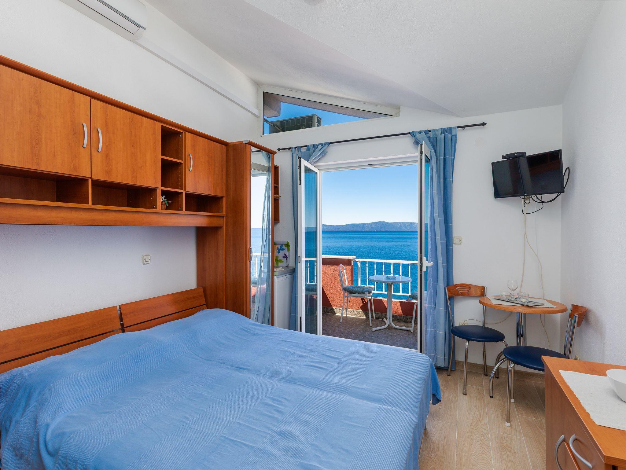 Zimmer bietet Platz für 2 Gäste. Die Betten sind in Schlafzimmern, die es 1 gibt, innerhalb einer Gesamtfläche von 13m2, angeordnet. Die Gäste haben einen eigenen Balkon zur Verfügung, auf der sie in warmen Sommernächten genießen können. Das Zimmer bietet Meerblick. Es ist erlaubt, Speisen auf dem Gemeinschafts-Grill vorzubereiten. Die reservierte Unterkunftseinheit ist ein Zimmer mit eigenem Badezimmer ohne die Möglichkeit der Nutzung einer Küche. IM PREIS INBEGRIFFEN: Kurtaxe, Endreinigung, Klimatisierung, Parkplatz, Internet, Kinderbett, Bügeleisen, Bügelbrett, Föhn. VERBINDLICHE ZUSÄTZLICHE KOSTEN: Aufzahlung für Kurzaufenthalte (prozentualer Zuschlag pro Nächtigungsanzahl: 30% - 1, 20% - 2, 10% - 3). Die Verfügbarkeit zusätzlicher Dienstleistungen in Ihrem reservierten Termin und die Preise derselben (falls nicht aufgeführt) müssen im Voraus überprüft werden. Zusätzliche Dienstleistungen die in der Zahlungsaufforderung nicht aufgeführt sind werden direkt beim Vermieter bezahlt, angenommen der Gast nutzt auch diese. Ermäßigung auf den Grundpreis: Gratistag 14=13 (bei einem Aufenthalt von 14 Tagen oder mehr erhalten Sie einen Gratistag für den Aufenthalt bis 31.12.26).