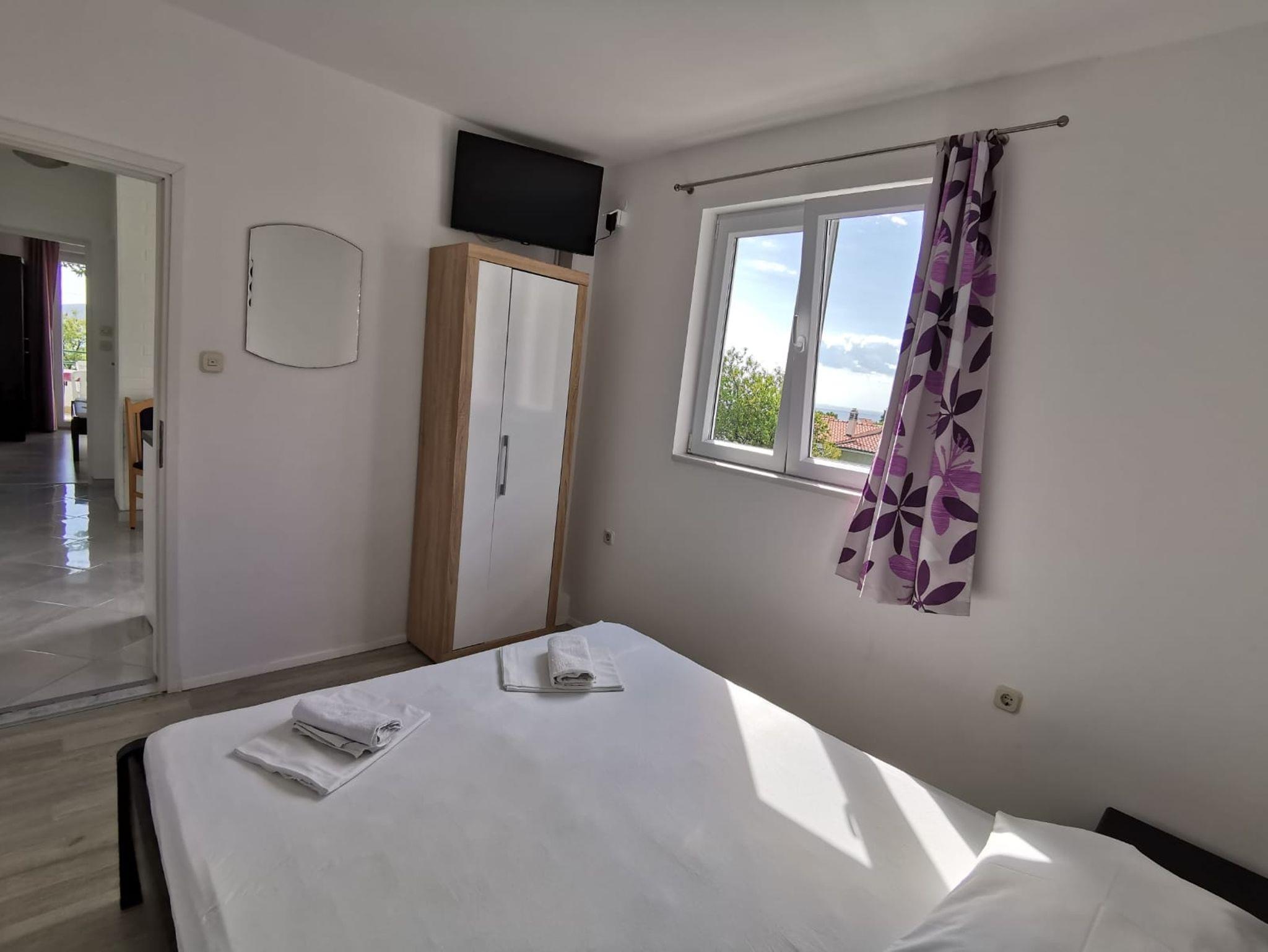 Ferienwohnung bietet Platz für 5 Gäste. Die Betten sind in Schlafzimmern, die es 2 gibt, innerhalb einer Gesamtfläche von 32m2, angeordnet. Die Gäste haben einen eigenen Balkon zur Verfügung, auf der sie in warmen Sommernächten genießen können. Das Apartment bietet Meerblick. Es ist erlaubt, Speisen auf dem Gemeinschafts-Grill vorzubereiten. In der Unterkunftseinheit besteht die Möglichkeit des Mitbringens von Haustieren gegen Aufpreis. IM PREIS INBEGRIFFEN: Kurtaxe, Endreinigung, Klimatisierung, Parkplatz, Internet, Kinderbett, Föhn. VERBINDLICHE ZUSÄTZLICHE KOSTEN: Aufzahlung für Kurzaufenthalte (prozentualer Zuschlag pro Nächtigungsanzahl: 30% - 1, 20% - 2, 10% - 3). UNVERBINDLICHE ZUSÄTZLICHE KOSTEN: Wäschewaschen (10,00 € Waschen), Bootsanlegeplatz (50,00 € pro Nacht), Haustiere (8,00 € pro Nacht), Fahrrad (20,00 € täglich (pro Stück)). Die Verfügbarkeit zusätzlicher Dienstleistungen in Ihrem reservierten Termin und die Preise derselben (falls nicht aufgeführt) müssen im Voraus überprüft werden. Zusätzliche Dienstleistungen die in der Zahlungsaufforderung nicht aufgeführt sind werden direkt beim Vermieter bezahlt, angenommen der Gast nutzt auch diese.