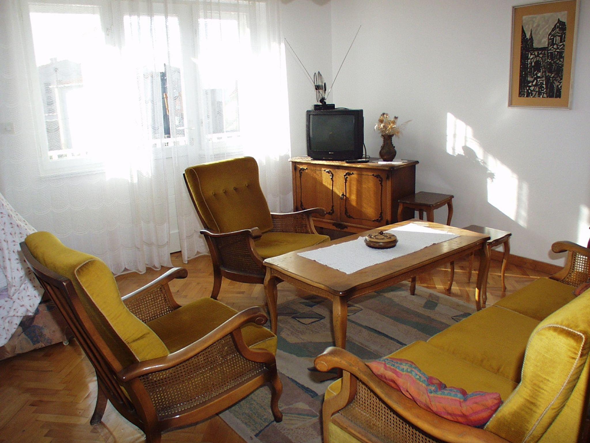Ferienwohnung bietet Platz für 6 Gäste. Die Betten sind in Schlafzimmern, die es 2 gibt, und in Wohnzimmer, innerhalb einer Gesamtfläche von 67m2, angeordnet. Die Gäste haben einen eigenen Balkon zur Verfügung, auf der sie in warmen Sommernächten genießen können. Das Apartment bietet Meerblick. Es ist erlaubt, Speisen auf dem Gemeinschafts-Grill vorzubereiten. IM PREIS INBEGRIFFEN: Kurtaxe, Endreinigung, Klimatisierung, Parkplatz, Internet, Kinderbett. VERBINDLICHE ZUSÄTZLICHE KOSTEN: Aufzahlung für Kurzaufenthalte (prozentualer Zuschlag pro Nächtigungsanzahl: 30% - 1, 20% - 2, 10% - 3). UNVERBINDLICHE ZUSÄTZLICHE KOSTEN: Wäschewaschen (2,00 € Waschen). Die Verfügbarkeit zusätzlicher Dienstleistungen in Ihrem reservierten Termin und die Preise derselben (falls nicht aufgeführt) müssen im Voraus überprüft werden. Zusätzliche Dienstleistungen die in der Zahlungsaufforderung nicht aufgeführt sind werden direkt beim Vermieter bezahlt, angenommen der Gast nutzt auch diese.