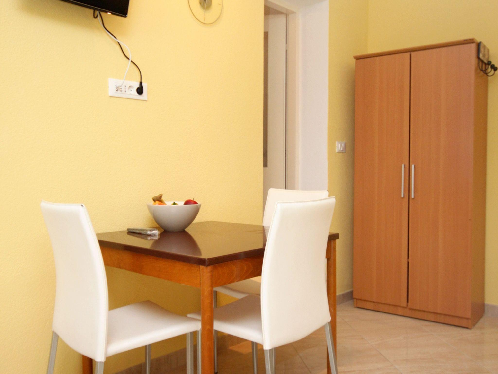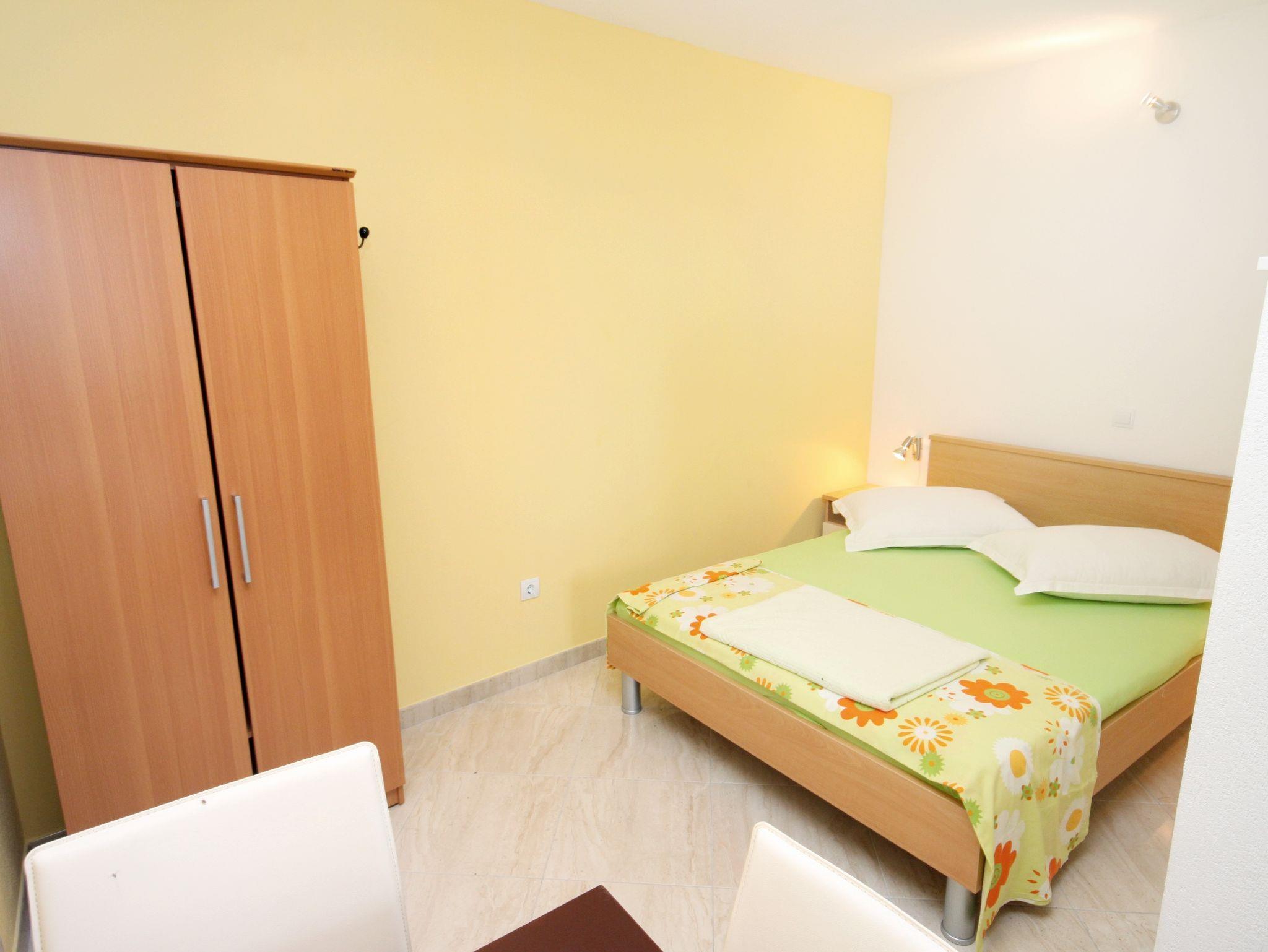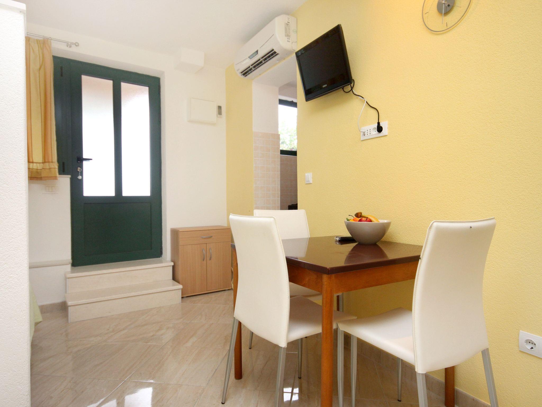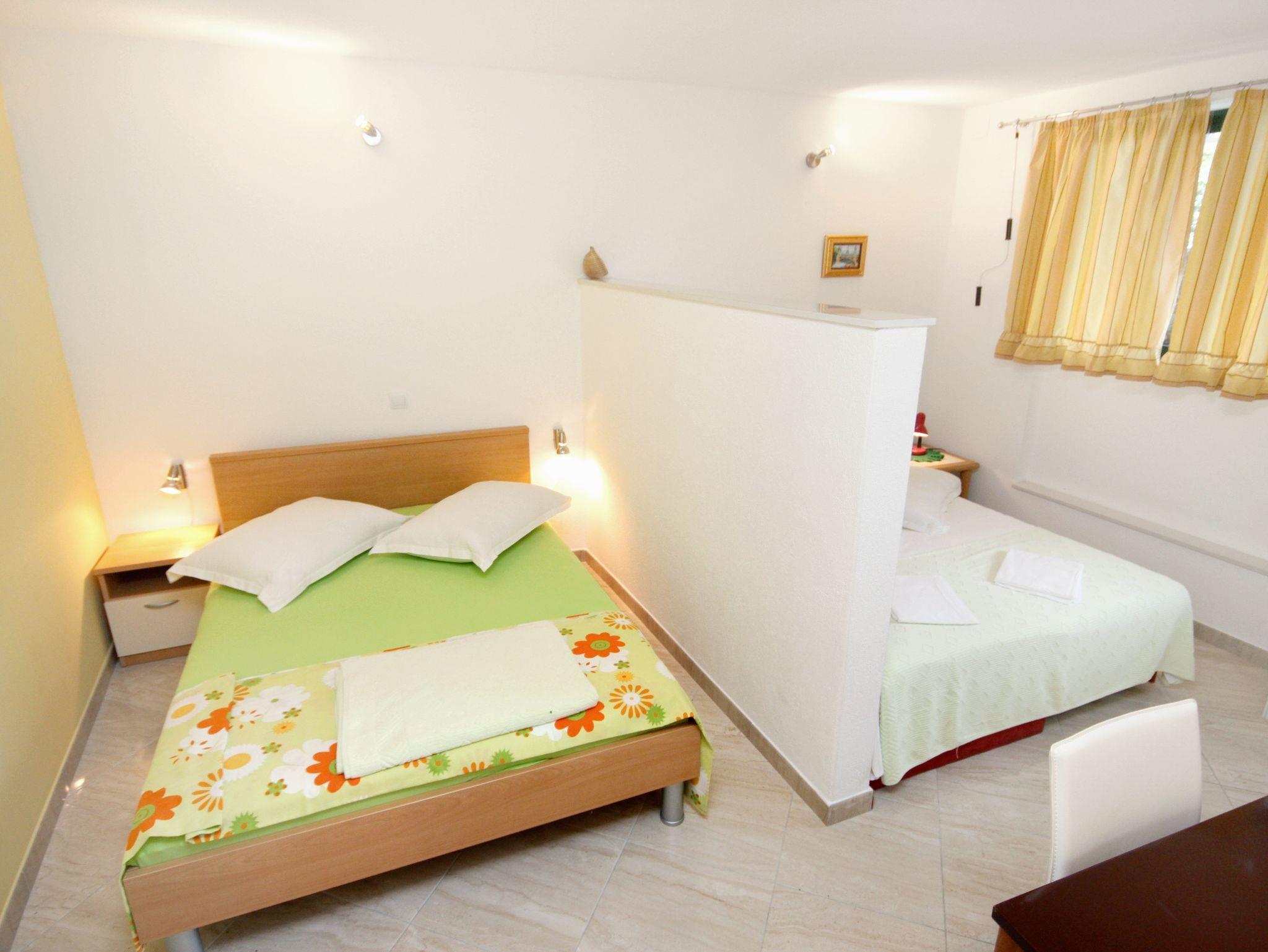 Studio bietet Platz für 3 Gäste. Die Betten sind in Schlafzimmern, die es 1 gibt, innerhalb einer Gesamtfläche von 23m2, angeordnet. Die Gäste haben eine eigene Terrasse zur Verfügung, auf der sie in warmen Sommernächten genießen können. Das Studio-Apartment bietet Meerblick. Es ist erlaubt, Speisen auf dem Gemeinschafts-Grill vorzubereiten. IM PREIS INBEGRIFFEN: Kurtaxe, Endreinigung, Klimatisierung, Parkplatz, Internet, Wäschewaschen, Fahrrad, Bügeleisen, Bügelbrett, Föhn, tragbarer Grill. VERBINDLICHE ZUSÄTZLICHE KOSTEN: Aufzahlung für Kurzaufenthalte (prozentualer Zuschlag pro Nächtigungsanzahl: 30% - 1, 20% - 2, 10% - 3). Die Verfügbarkeit zusätzlicher Dienstleistungen in Ihrem reservierten Termin und die Preise derselben (falls nicht aufgeführt) müssen im Voraus überprüft werden. Zusätzliche Dienstleistungen die in der Zahlungsaufforderung nicht aufgeführt sind werden direkt beim Vermieter bezahlt, angenommen der Gast nutzt auch diese.