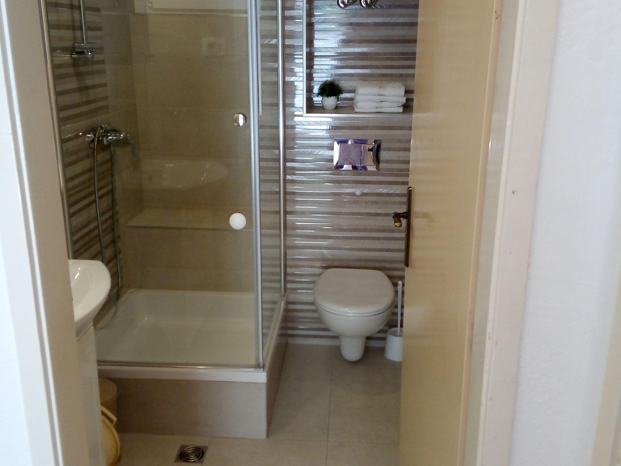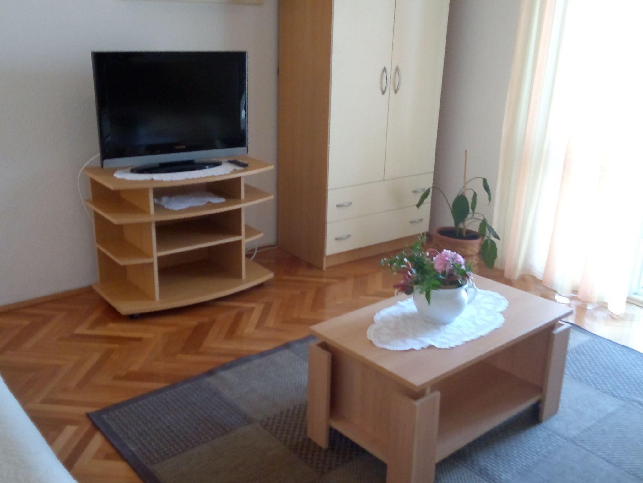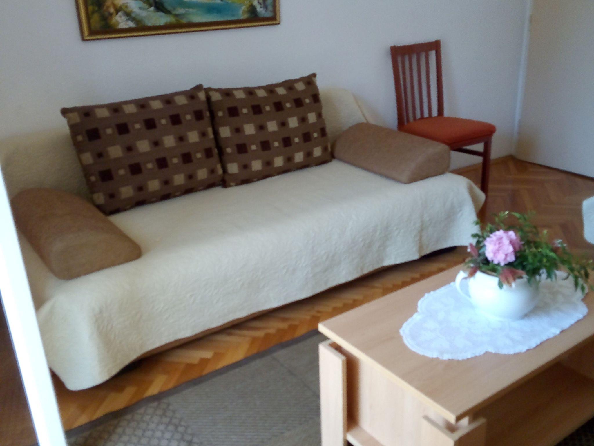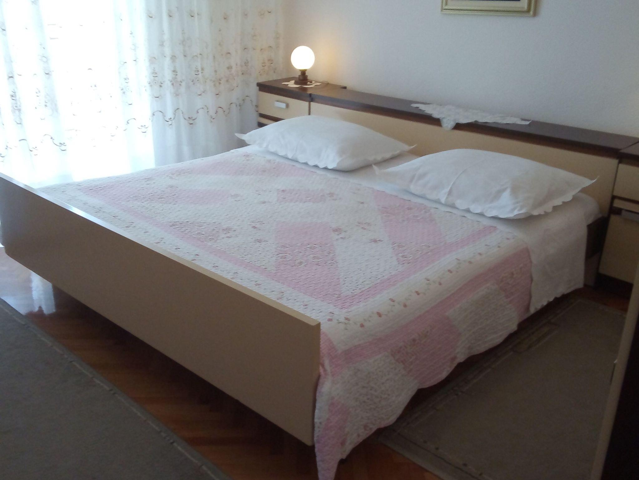 Ferienwohnung bietet Platz für 6 Gäste. Die Betten sind in Schlafzimmern, die es 2 gibt, und in Wohnzimmer, innerhalb einer Gesamtfläche von 68m2, angeordnet. Die Gäste haben eine eigene Terrasse zur Verfügung, auf der sie in warmen Sommernächten genießen können. Das Apartment bietet Meerblick. Es ist erlaubt, Speisen auf dem Gemeinschafts-Grill vorzubereiten. IM PREIS INBEGRIFFEN: Kurtaxe, Endreinigung, Klimatisierung, Parkplatz, Internet, Kinderbett, Bügeleisen, Bügelbrett, Föhn. VERBINDLICHE ZUSÄTZLICHE KOSTEN: Aufzahlung für Kurzaufenthalte (prozentualer Zuschlag pro Nächtigungsanzahl: 30% - 1, 20% - 2, 10% - 3). UNVERBINDLICHE ZUSÄTZLICHE KOSTEN: Wäschewaschen (5,00 € Waschen), Zusatzbett (10,00 € pro Nacht). Die Verfügbarkeit zusätzlicher Dienstleistungen in Ihrem reservierten Termin und die Preise derselben (falls nicht aufgeführt) müssen im Voraus überprüft werden. Zusätzliche Dienstleistungen die in der Zahlungsaufforderung nicht aufgeführt sind werden direkt beim Vermieter bezahlt, angenommen der Gast nutzt auch diese. Ermäßigung auf den Grundpreis: Gratistag 14=13 (bei einem Aufenthalt von 14 Tagen oder mehr erhalten Sie einen Gratistag für den Aufenthalt bis 31.12.26).