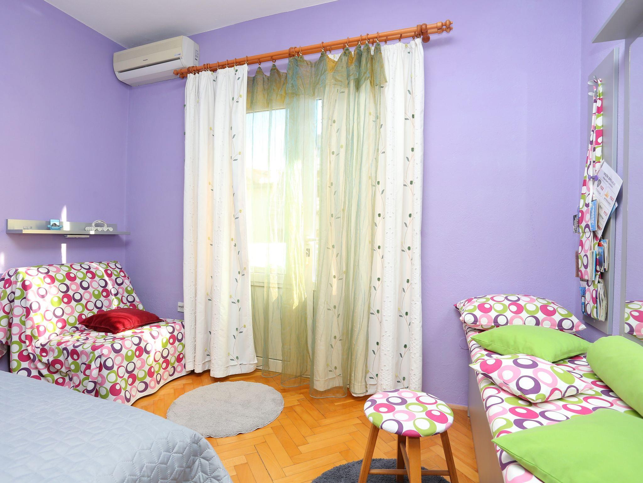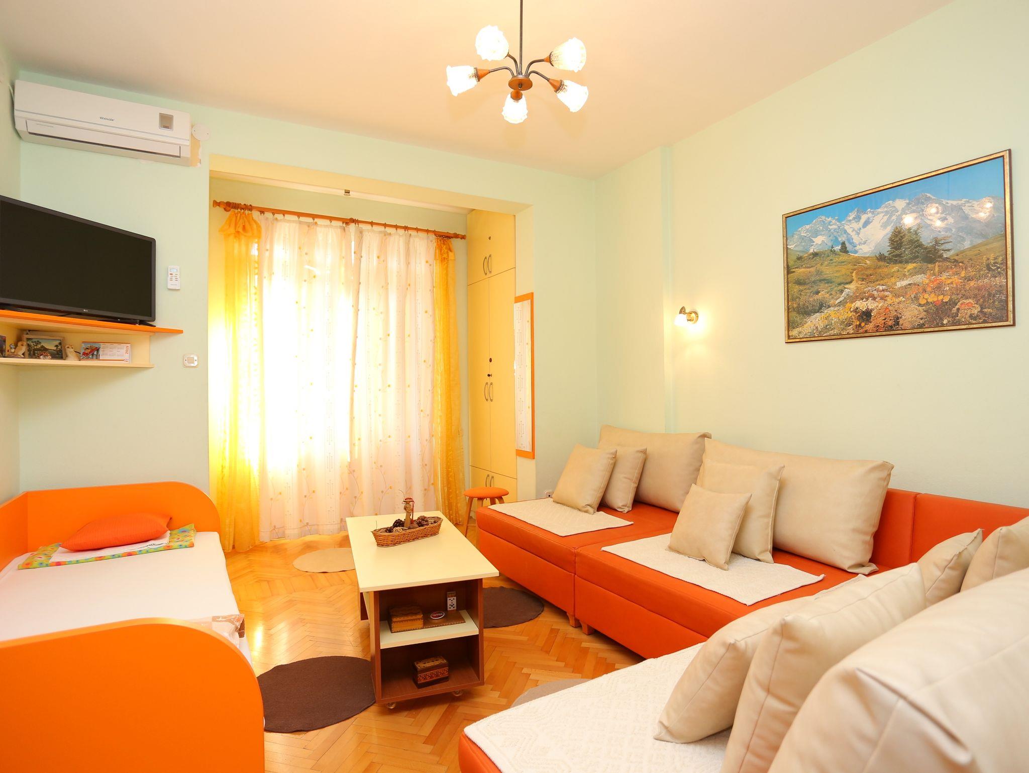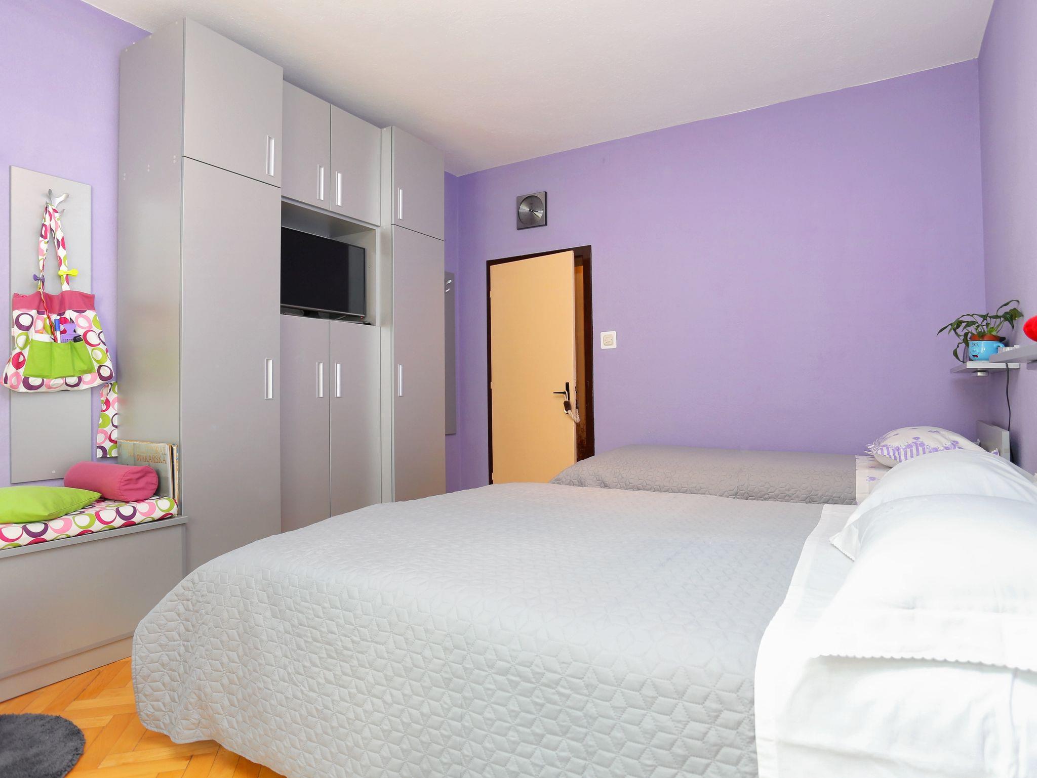 Ferienwohnung bietet Platz für 9 Gäste. Die Betten sind in Schlafzimmern, die es 3 gibt, innerhalb einer Gesamtfläche von 70m2, angeordnet. Die Gäste haben eine eigene Terrasse zur Verfügung, auf der sie in warmen Sommernächten genießen können. Das Apartment bietet Meerblick. Es ist erlaubt, Speisen auf dem Gemeinschafts-Grill vorzubereiten. In der Unterkunftseinheit besteht die Möglichkeit des Mitbringens von Haustieren gegen Aufpreis. IM PREIS INBEGRIFFEN: Kurtaxe, Endreinigung, Klimatisierung, Parkplatz, Internet, Kinderbett, Bügeleisen, Bügelbrett, Föhn. VERBINDLICHE ZUSÄTZLICHE KOSTEN: Aufzahlung für Kurzaufenthalte (prozentualer Zuschlag pro Nächtigungsanzahl: 30% - 1, 20% - 2, 10% - 3). UNVERBINDLICHE ZUSÄTZLICHE KOSTEN: Haustiere (7,00 € pro Nacht). Die Verfügbarkeit zusätzlicher Dienstleistungen in Ihrem reservierten Termin und die Preise derselben (falls nicht aufgeführt) müssen im Voraus überprüft werden. Zusätzliche Dienstleistungen die in der Zahlungsaufforderung nicht aufgeführt sind werden direkt beim Vermieter bezahlt, angenommen der Gast nutzt auch diese.