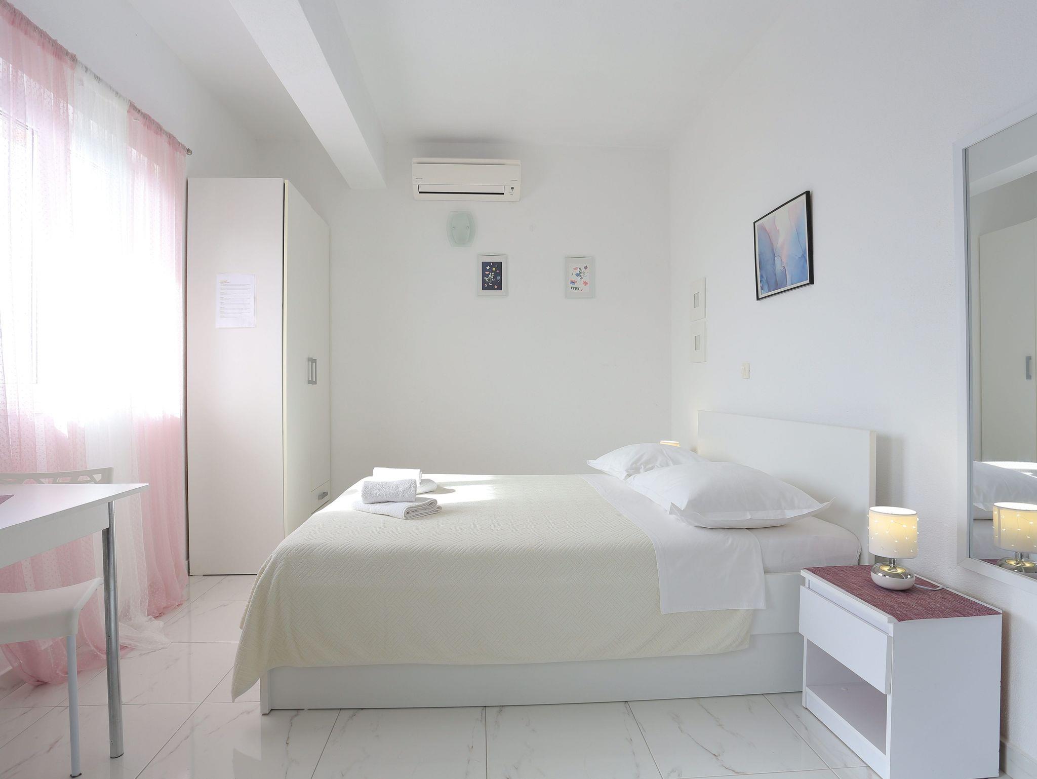 Studio bietet Platz für 3 Gäste. Die Betten sind in Schlafzimmern, die es 1 gibt, und in Wohnzimmer, innerhalb einer Gesamtfläche von 25m2, angeordnet. Die Gäste haben eine eigene Terrasse zur Verfügung, auf der sie in warmen Sommernächten genießen können. Das Studio-Apartment bietet Meerblick. Es ist erlaubt, Speisen auf dem Gemeinschafts-Grill vorzubereiten. In der Unterkunftseinheit besteht die Möglichkeit des Mitbringens von Haustieren gegen Aufpreis. IM PREIS INBEGRIFFEN: Kurtaxe, Endreinigung, Klimatisierung, Parkplatz, Internet, Wäschewaschen, Föhn. UNVERBINDLICHE ZUSÄTZLICHE KOSTEN: Haustiere (10,00 € pro Nacht). Die Verfügbarkeit zusätzlicher Dienstleistungen in Ihrem reservierten Termin und die Preise derselben (falls nicht aufgeführt) müssen im Voraus überprüft werden. Zusätzliche Dienstleistungen die in der Zahlungsaufforderung nicht aufgeführt sind werden direkt beim Vermieter bezahlt, angenommen der Gast nutzt auch diese.