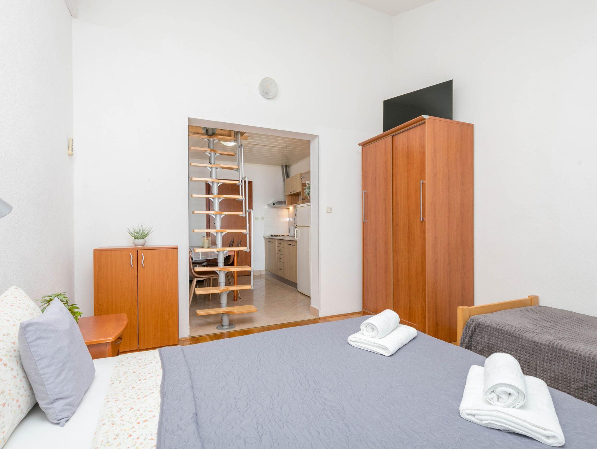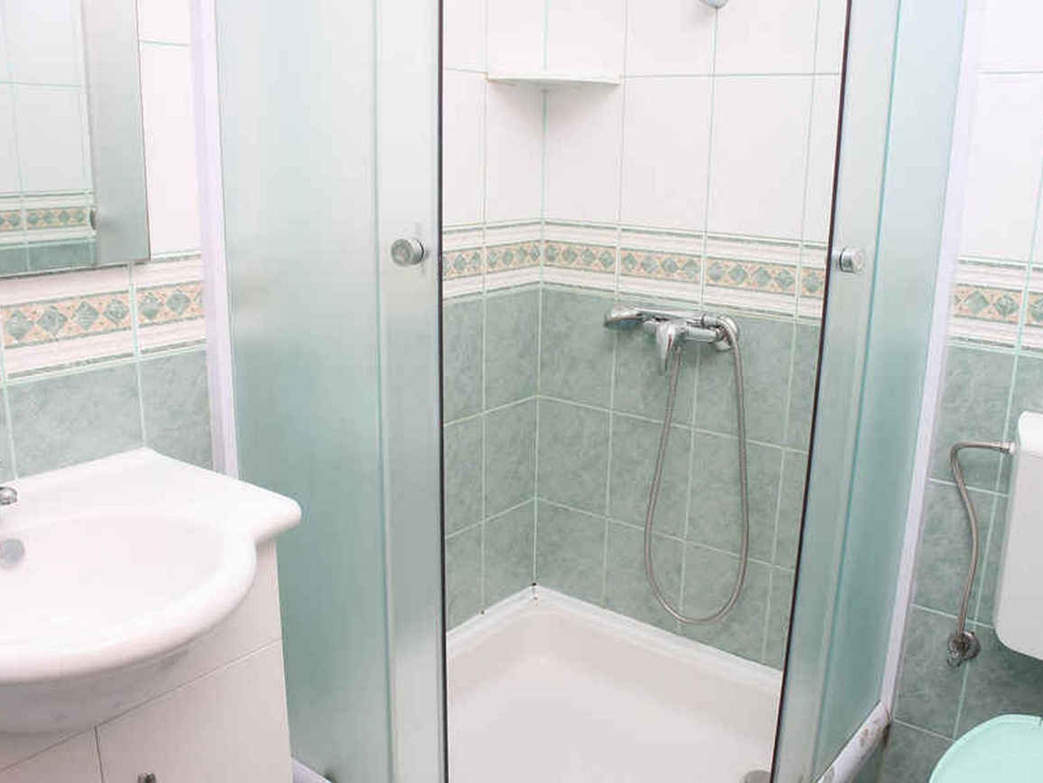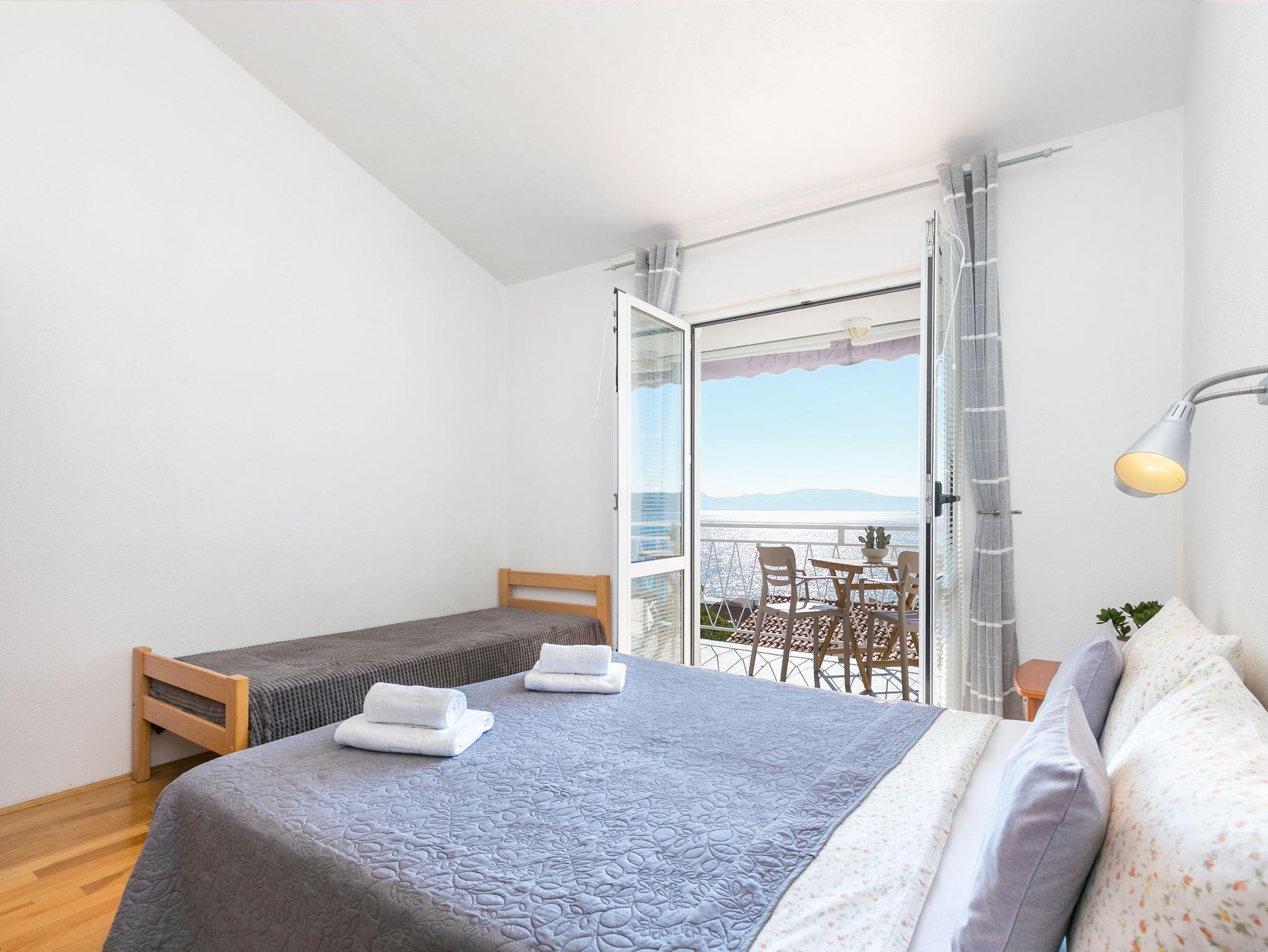 Ferienwohnung bietet Platz für 5 Gäste. Die Betten sind in Schlafzimmern, die es 2 gibt, innerhalb einer Gesamtfläche von 34m2, angeordnet. Die Gäste haben einen eigenen Balkon zur Verfügung, auf der sie in warmen Sommernächten genießen können. Das Apartment bietet Meerblick. Es ist erlaubt, Speisen auf dem Gemeinschafts-Grill vorzubereiten. IM PREIS INBEGRIFFEN: Kurtaxe, Endreinigung, Klimatisierung, Parkplatz, Internet, Wäschewaschen, Kinderbett, Bügeleisen, Bügelbrett. VERBINDLICHE ZUSÄTZLICHE KOSTEN: Aufzahlung für Kurzaufenthalte (prozentualer Zuschlag pro Nächtigungsanzahl: 30% - 1, 20% - 2, 10% - 3). Die Verfügbarkeit zusätzlicher Dienstleistungen in Ihrem reservierten Termin und die Preise derselben (falls nicht aufgeführt) müssen im Voraus überprüft werden. Zusätzliche Dienstleistungen die in der Zahlungsaufforderung nicht aufgeführt sind werden direkt beim Vermieter bezahlt, angenommen der Gast nutzt auch diese. Ermäßigung auf den Grundpreis: Gratistag 14=13 (bei einem Aufenthalt von 14 Tagen oder mehr erhalten Sie einen Gratistag für den Aufenthalt bis 31.12.26).