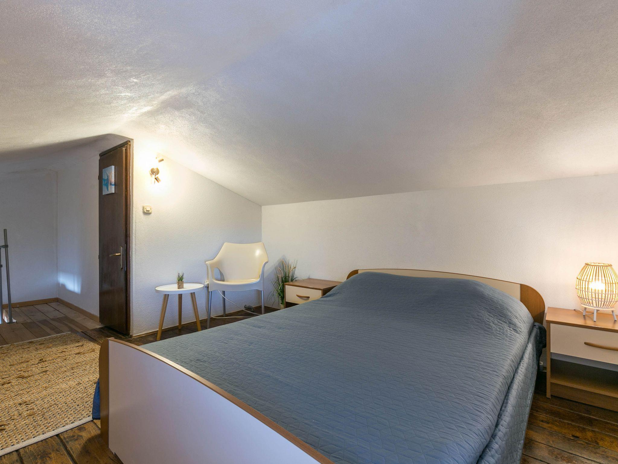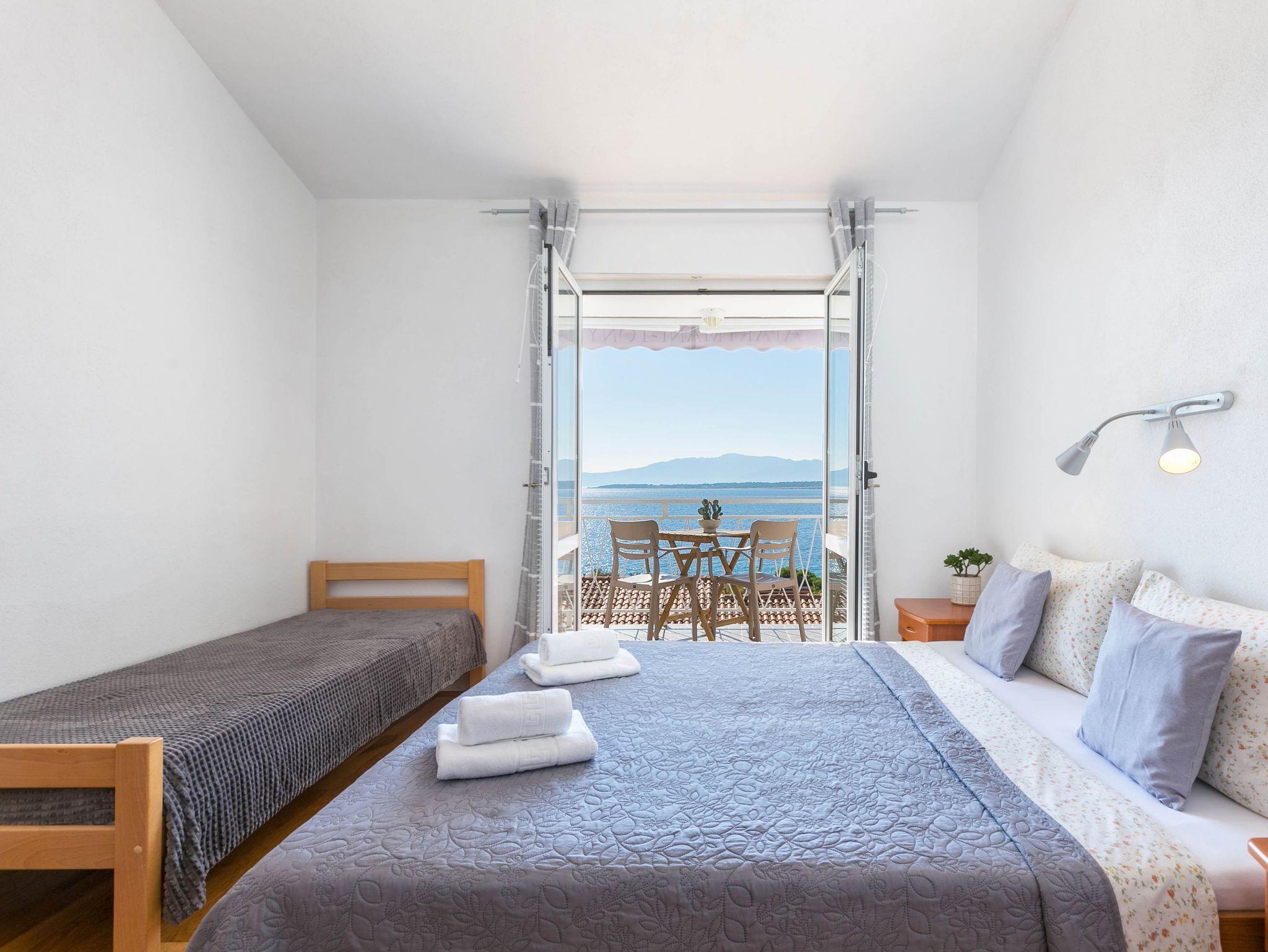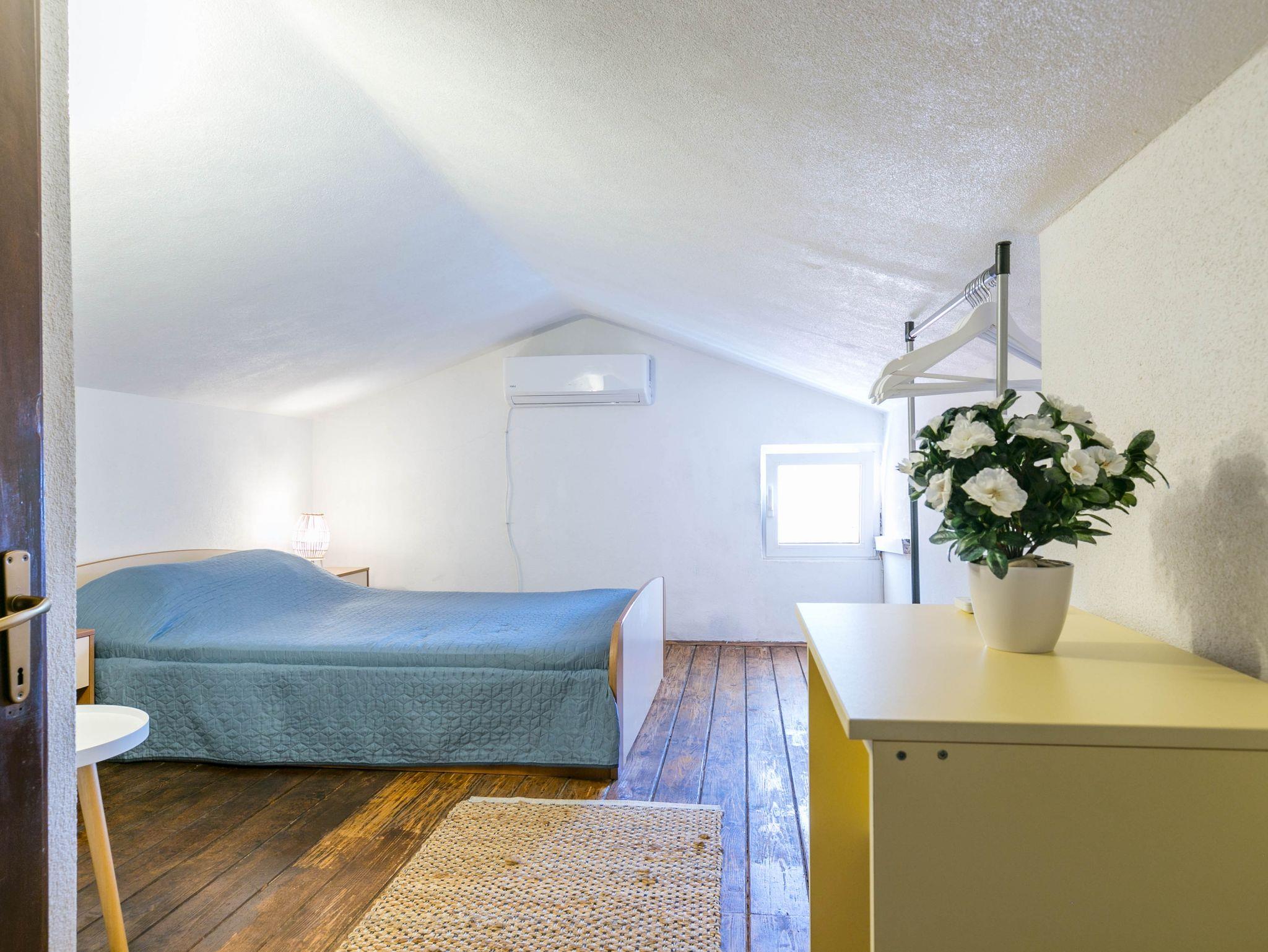 Ferienwohnung bietet Platz für 5 Gäste. Die Betten sind in Schlafzimmern, die es 2 gibt, innerhalb einer Gesamtfläche von 34m2, angeordnet. Die Gäste haben einen eigenen Balkon zur Verfügung, auf der sie in warmen Sommernächten genießen können. Das Apartment bietet Meerblick. Es ist erlaubt, Speisen auf dem Gemeinschafts-Grill vorzubereiten. IM PREIS INBEGRIFFEN: Kurtaxe, Endreinigung, Klimatisierung, Parkplatz, Internet, Wäschewaschen, Kinderbett, Bügeleisen, Bügelbrett. VERBINDLICHE ZUSÄTZLICHE KOSTEN: Aufzahlung für Kurzaufenthalte (prozentualer Zuschlag pro Nächtigungsanzahl: 30% - 1, 20% - 2, 10% - 3). Die Verfügbarkeit zusätzlicher Dienstleistungen in Ihrem reservierten Termin und die Preise derselben (falls nicht aufgeführt) müssen im Voraus überprüft werden. Zusätzliche Dienstleistungen die in der Zahlungsaufforderung nicht aufgeführt sind werden direkt beim Vermieter bezahlt, angenommen der Gast nutzt auch diese. Ermäßigung auf den Grundpreis: Gratistag 14=13 (bei einem Aufenthalt von 14 Tagen oder mehr erhalten Sie einen Gratistag für den Aufenthalt bis 31.12.26).