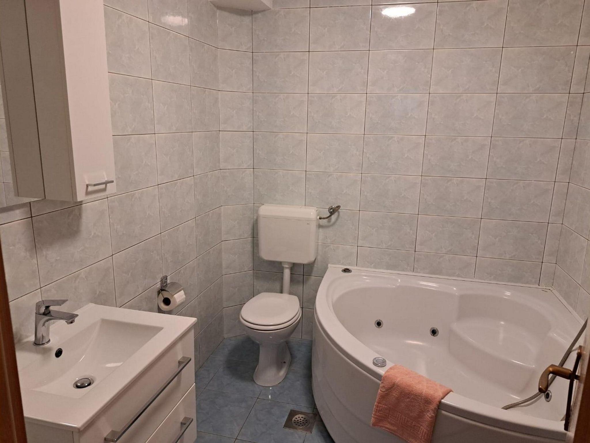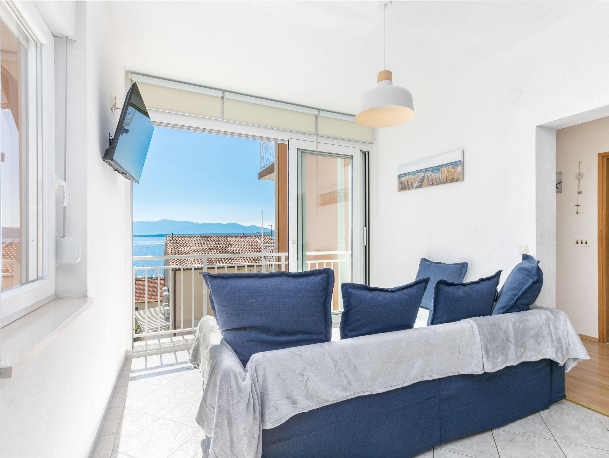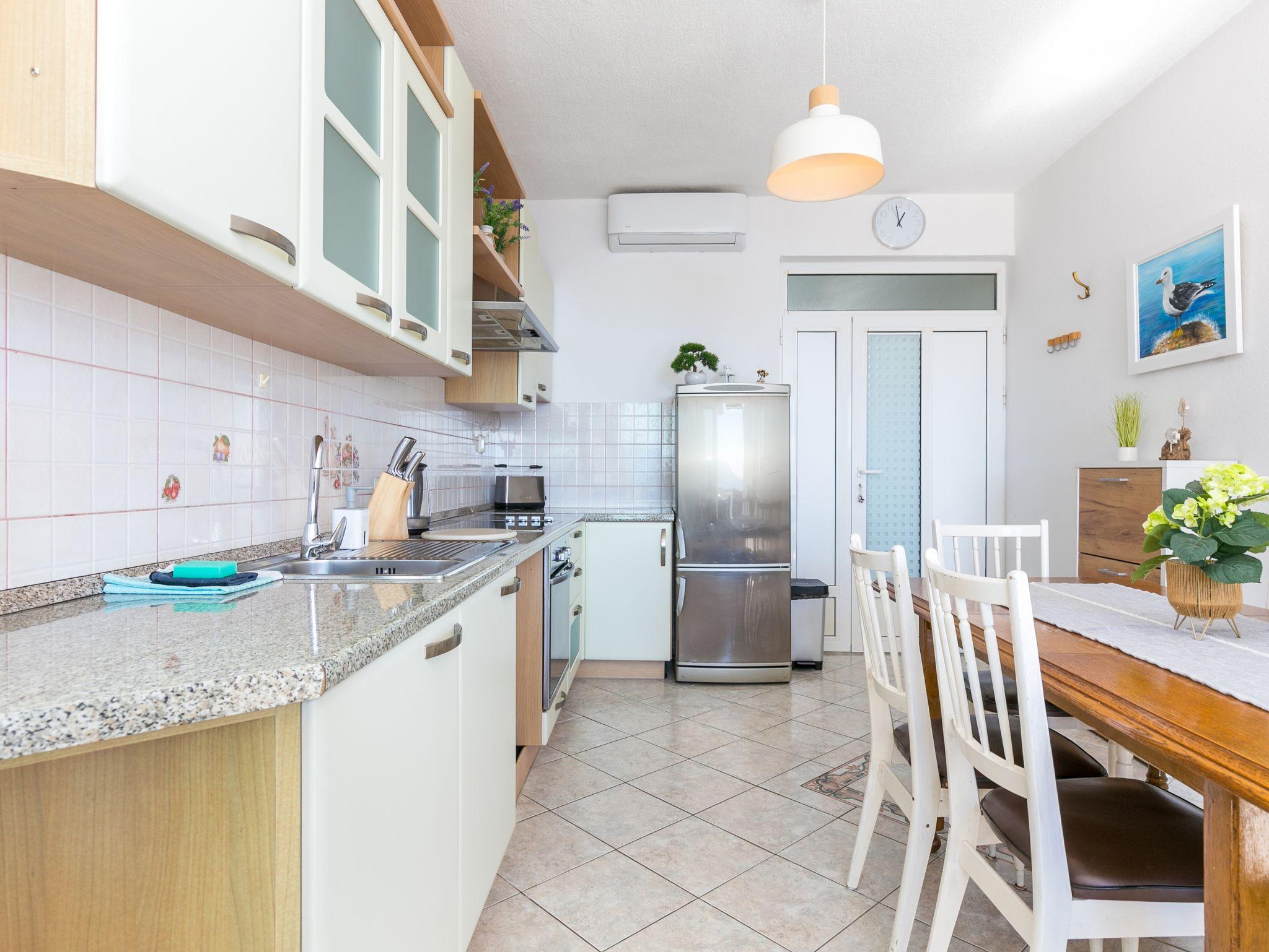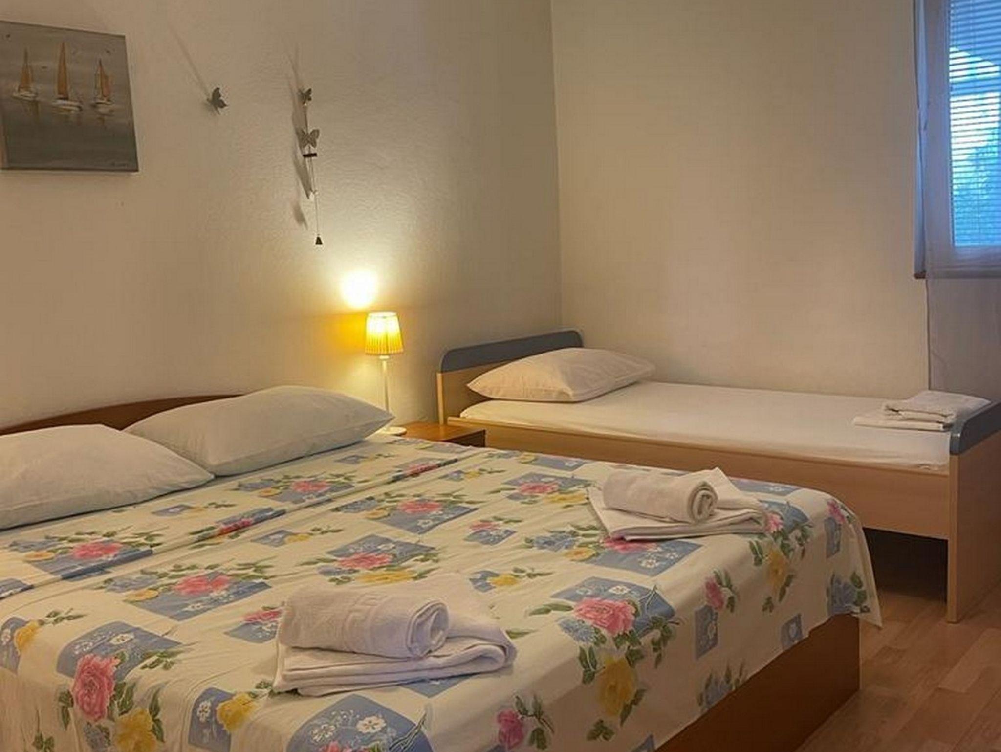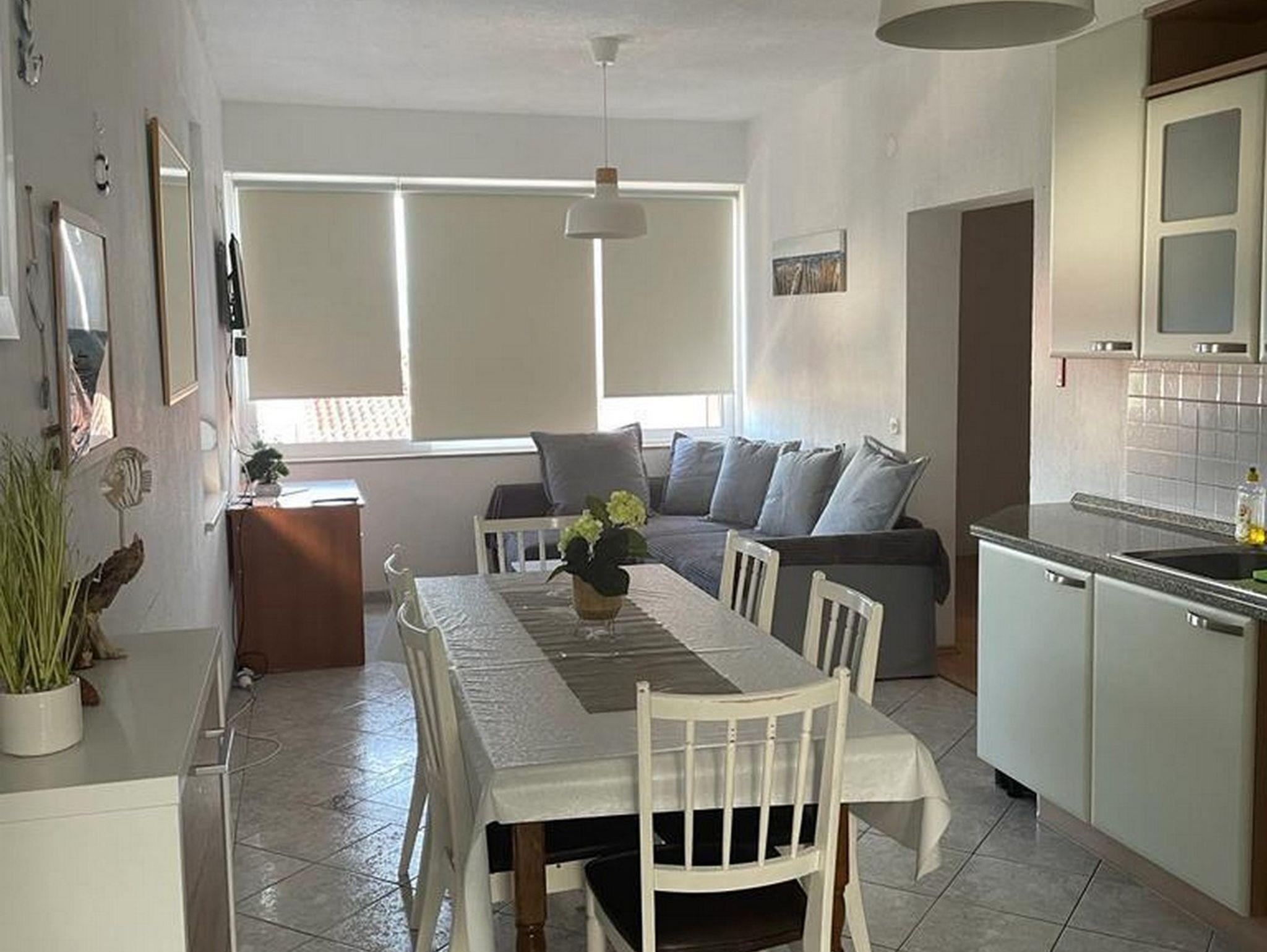 Ferienwohnung bietet Platz für 8 Gäste. Die Betten sind in Schlafzimmern, die es 2 gibt, und in Wohnzimmer, innerhalb einer Gesamtfläche von 55m2, angeordnet. Die Gäste haben einen eigenen Balkon zur Verfügung, auf der sie in warmen Sommernächten genießen können. Das Apartment bietet Meerblick. Es ist erlaubt, Speisen auf dem Gemeinschafts-Grill vorzubereiten. IM PREIS INBEGRIFFEN: Kurtaxe, Endreinigung, Klimatisierung, Parkplatz, Internet, Wäschewaschen, Kinderbett, Bügeleisen, Bügelbrett. VERBINDLICHE ZUSÄTZLICHE KOSTEN: Aufzahlung für Kurzaufenthalte (prozentualer Zuschlag pro Nächtigungsanzahl: 30% - 1, 20% - 2, 10% - 3). Die Verfügbarkeit zusätzlicher Dienstleistungen in Ihrem reservierten Termin und die Preise derselben (falls nicht aufgeführt) müssen im Voraus überprüft werden. Zusätzliche Dienstleistungen die in der Zahlungsaufforderung nicht aufgeführt sind werden direkt beim Vermieter bezahlt, angenommen der Gast nutzt auch diese. Ermäßigung auf den Grundpreis: Gratistag 14=13 (bei einem Aufenthalt von 14 Tagen oder mehr erhalten Sie einen Gratistag für den Aufenthalt bis 31.12.26).
