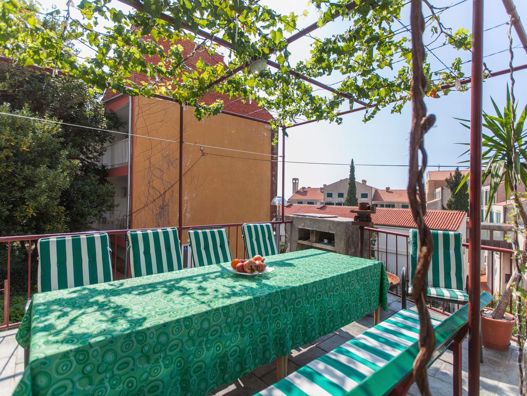 Ferienwohnung bietet Platz für 9 Gäste. Die Betten sind in Schlafzimmern, die es 4 gibt, innerhalb einer Gesamtfläche von 109m2, angeordnet. Die Gäste haben eine eigene Terrasse zur Verfügung, auf der sie in warmen Sommernächten genießen können. Für vollen Genuss und Entspannung gibt es einen privaten Grill für Gäste dieser Unterkunft. IM PREIS INBEGRIFFEN: Kurtaxe, Endreinigung, Klimatisierung, Parkplatz, Internet, Bügeleisen, Bügelbrett, Föhn. VERBINDLICHE ZUSÄTZLICHE KOSTEN: Aufzahlung für Kurzaufenthalte (prozentualer Zuschlag pro Nächtigungsanzahl: 30% - 1, 20% - 2, 10% - 3). Die Verfügbarkeit zusätzlicher Dienstleistungen in Ihrem reservierten Termin und die Preise derselben (falls nicht aufgeführt) müssen im Voraus überprüft werden. Zusätzliche Dienstleistungen die in der Zahlungsaufforderung nicht aufgeführt sind werden direkt beim Vermieter bezahlt, angenommen der Gast nutzt auch diese.