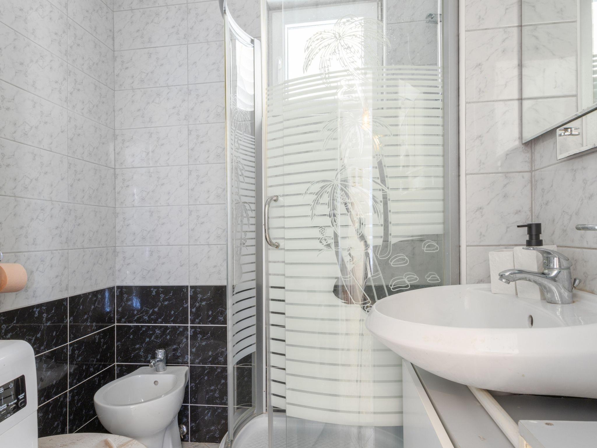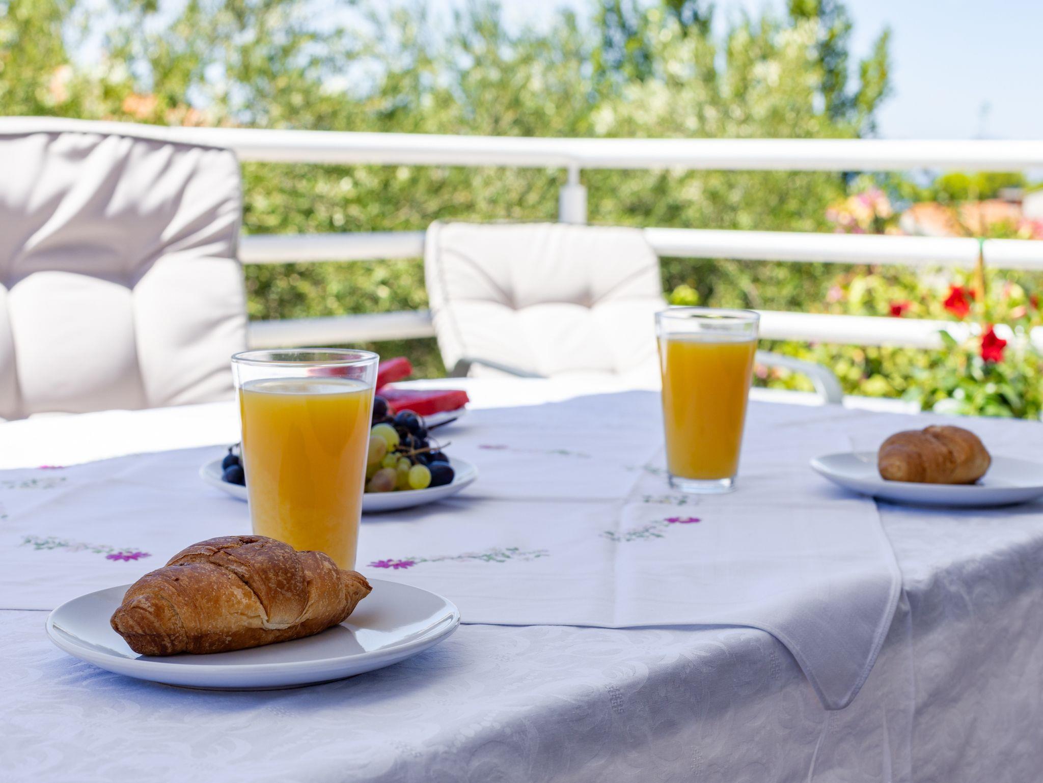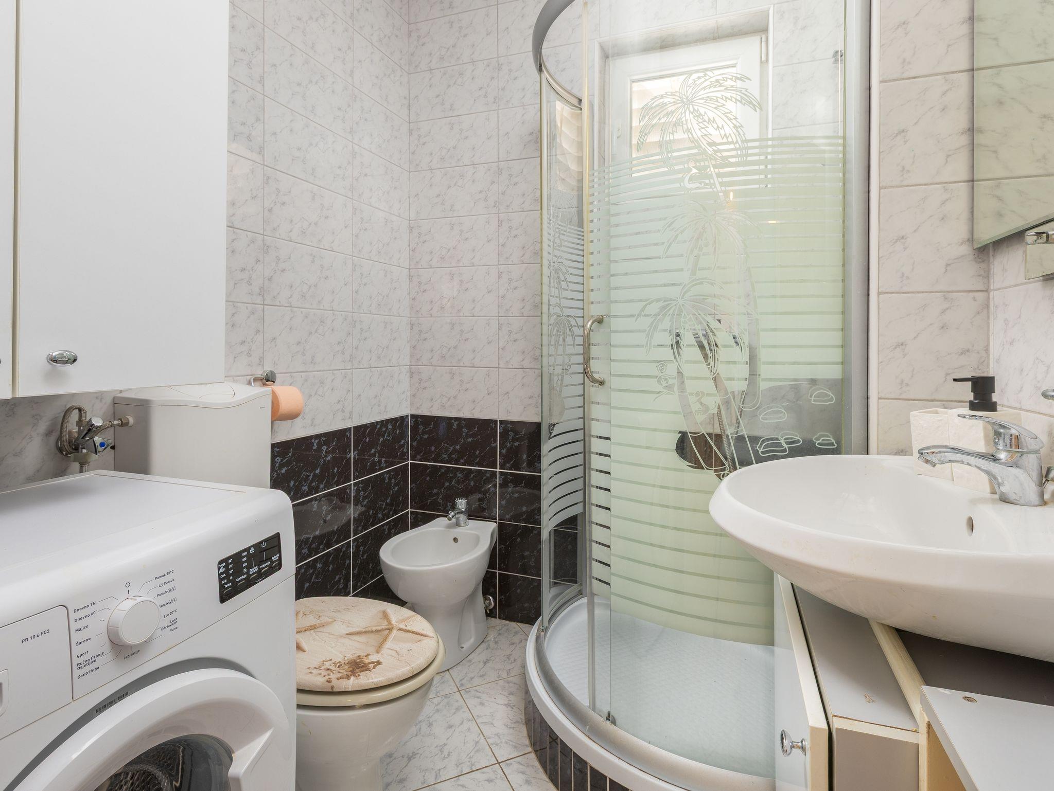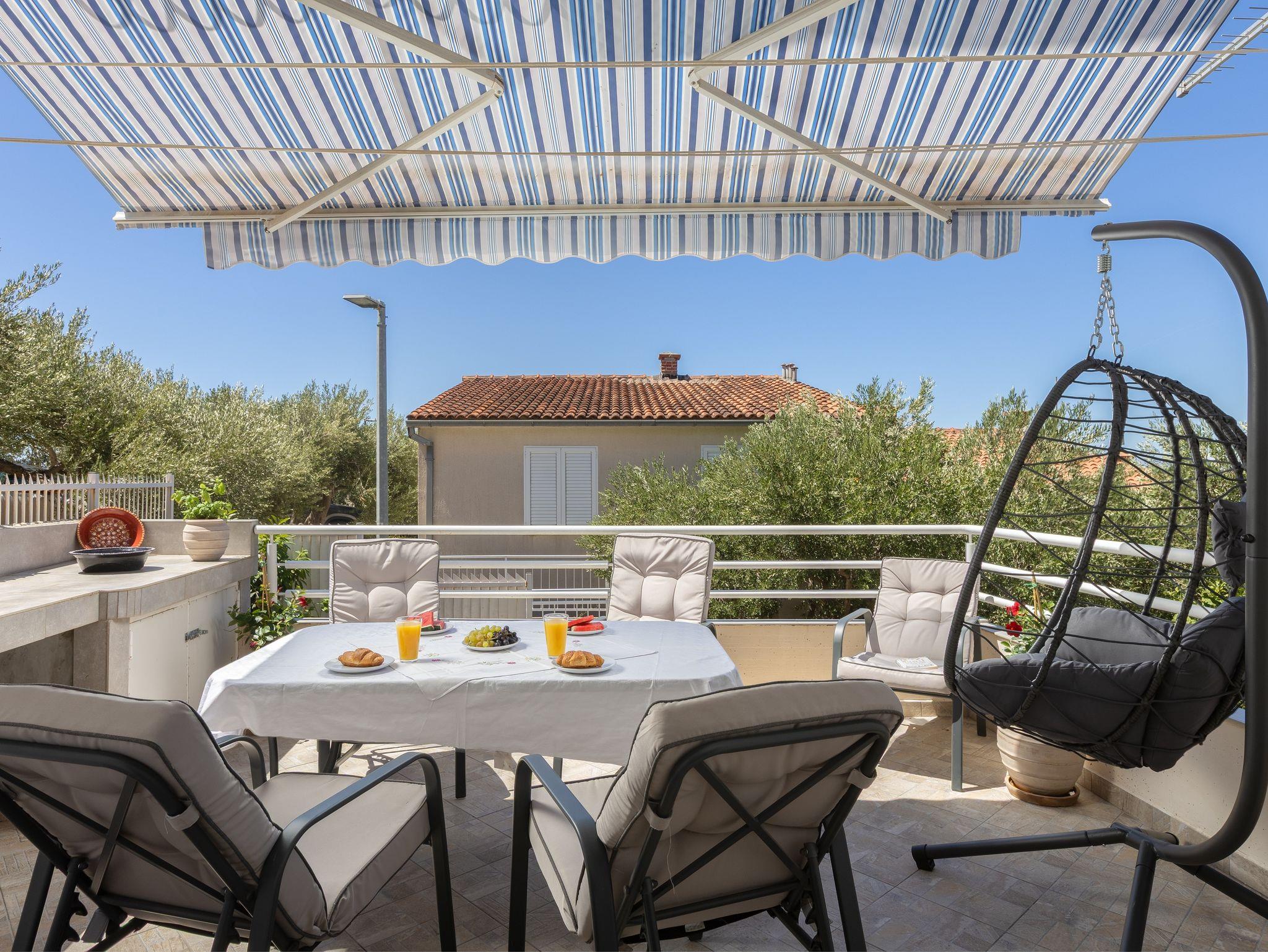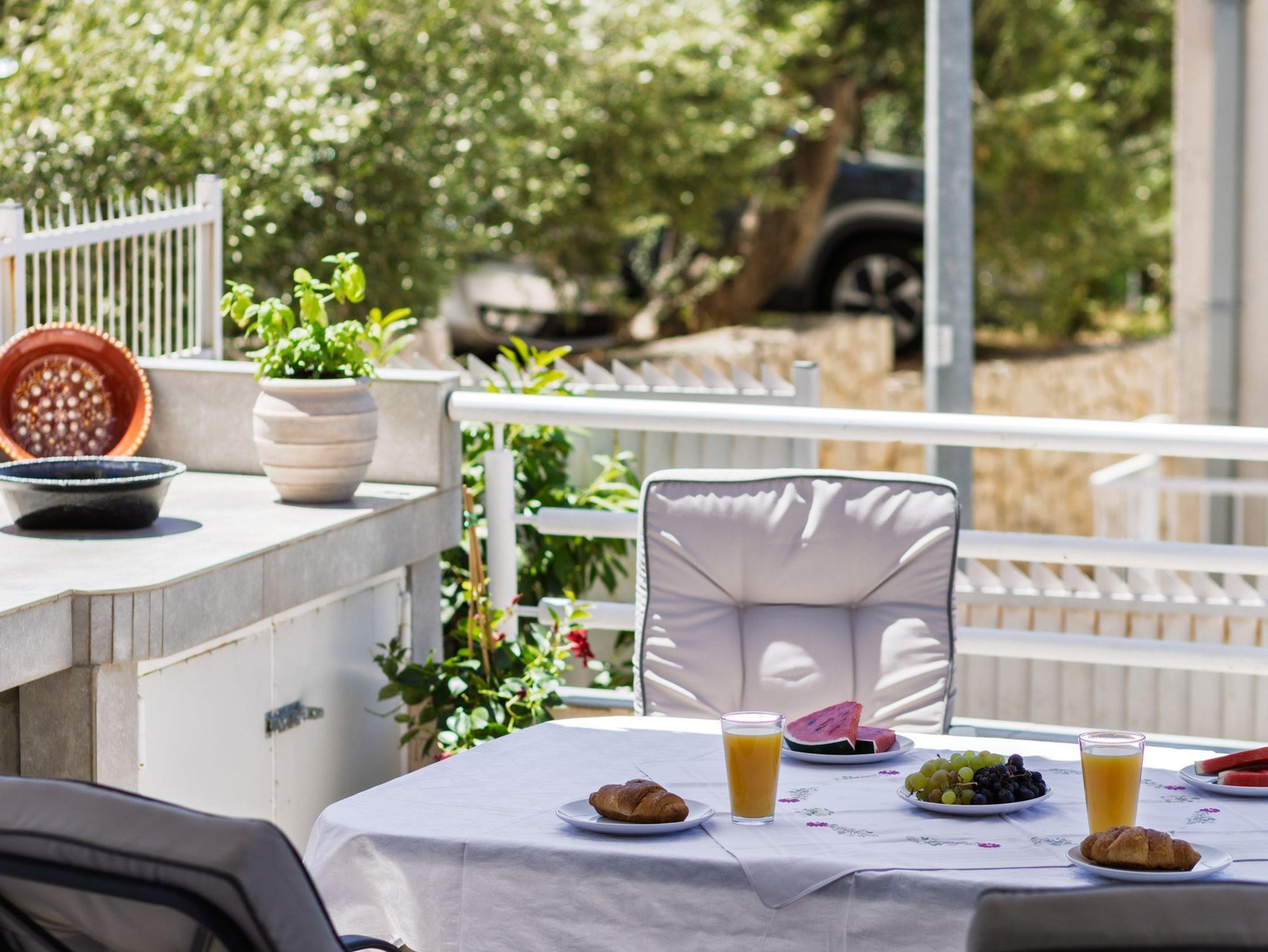 Ferienwohnung bietet Platz für 5 Gäste. Die Betten sind in Schlafzimmern, die es 2 gibt, und in Wohnzimmer, innerhalb einer Gesamtfläche von 50m2, angeordnet. Die Gäste haben eine eigene Terrasse zur Verfügung, auf der sie in warmen Sommernächten genießen können. Das Apartment bietet Meerblick. IM PREIS INBEGRIFFEN: Kurtaxe, Endreinigung, Klimatisierung, Parkplatz, Internet, Wäschewaschen, Kinderbett, Bügeleisen, Bügelbrett, Föhn. VERBINDLICHE ZUSÄTZLICHE KOSTEN: Aufzahlung für Kurzaufenthalte (prozentualer Zuschlag pro Nächtigungsanzahl: 30% - 1, 20% - 2, 10% - 3). Die Verfügbarkeit zusätzlicher Dienstleistungen in Ihrem reservierten Termin und die Preise derselben (falls nicht aufgeführt) müssen im Voraus überprüft werden. Zusätzliche Dienstleistungen die in der Zahlungsaufforderung nicht aufgeführt sind werden direkt beim Vermieter bezahlt, angenommen der Gast nutzt auch diese.