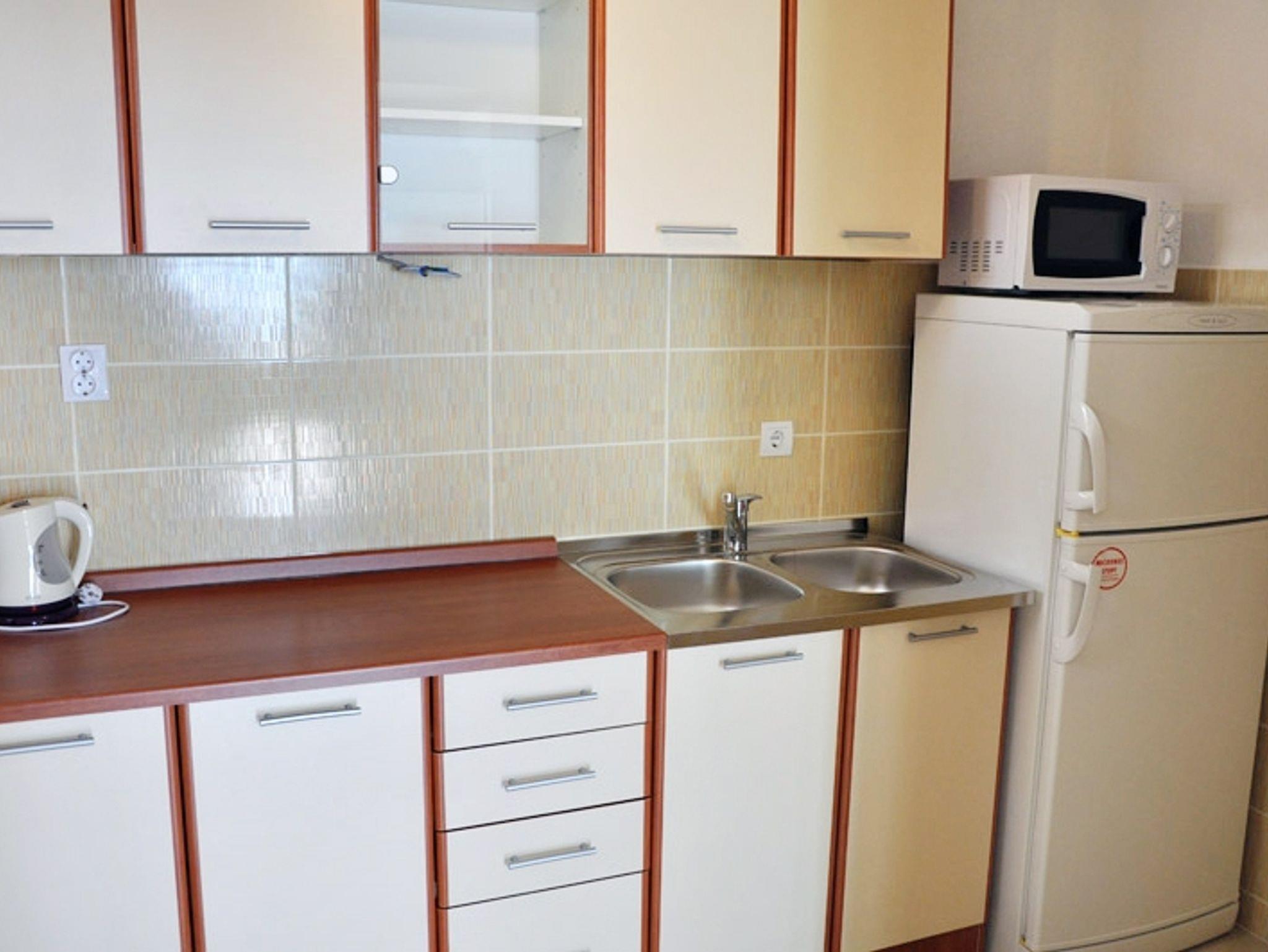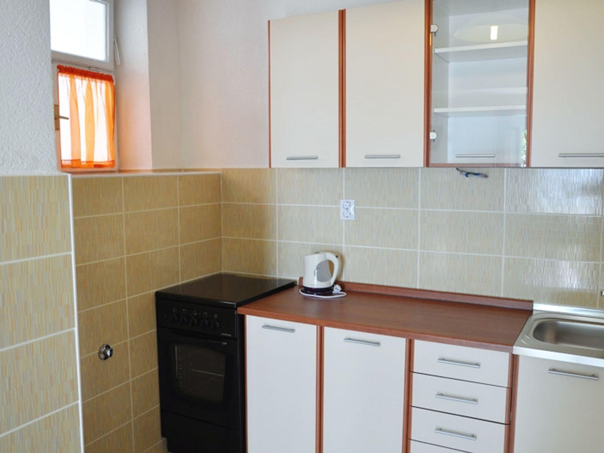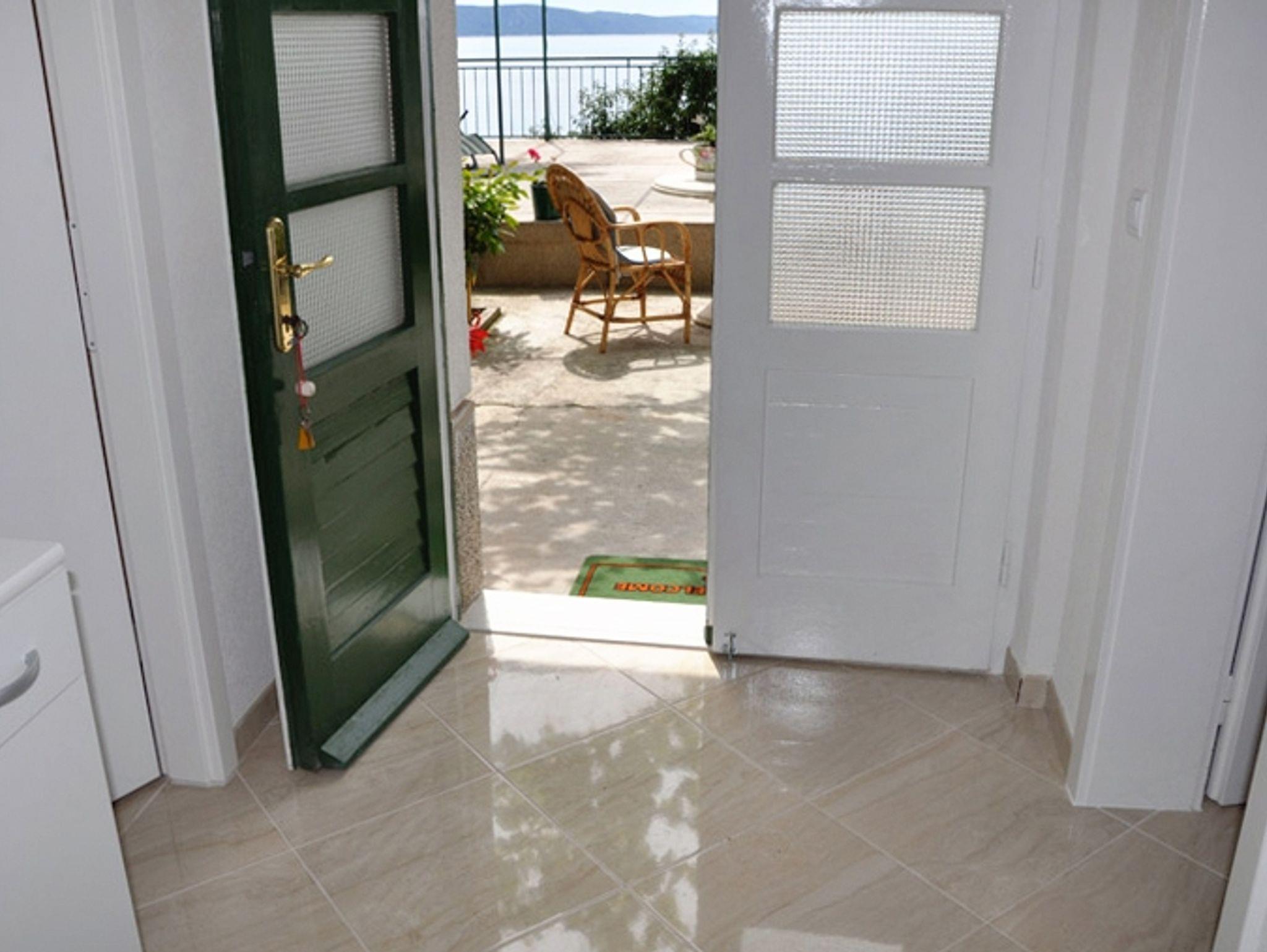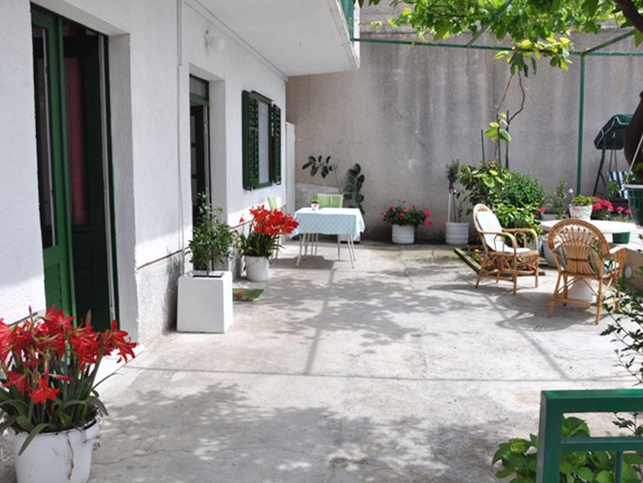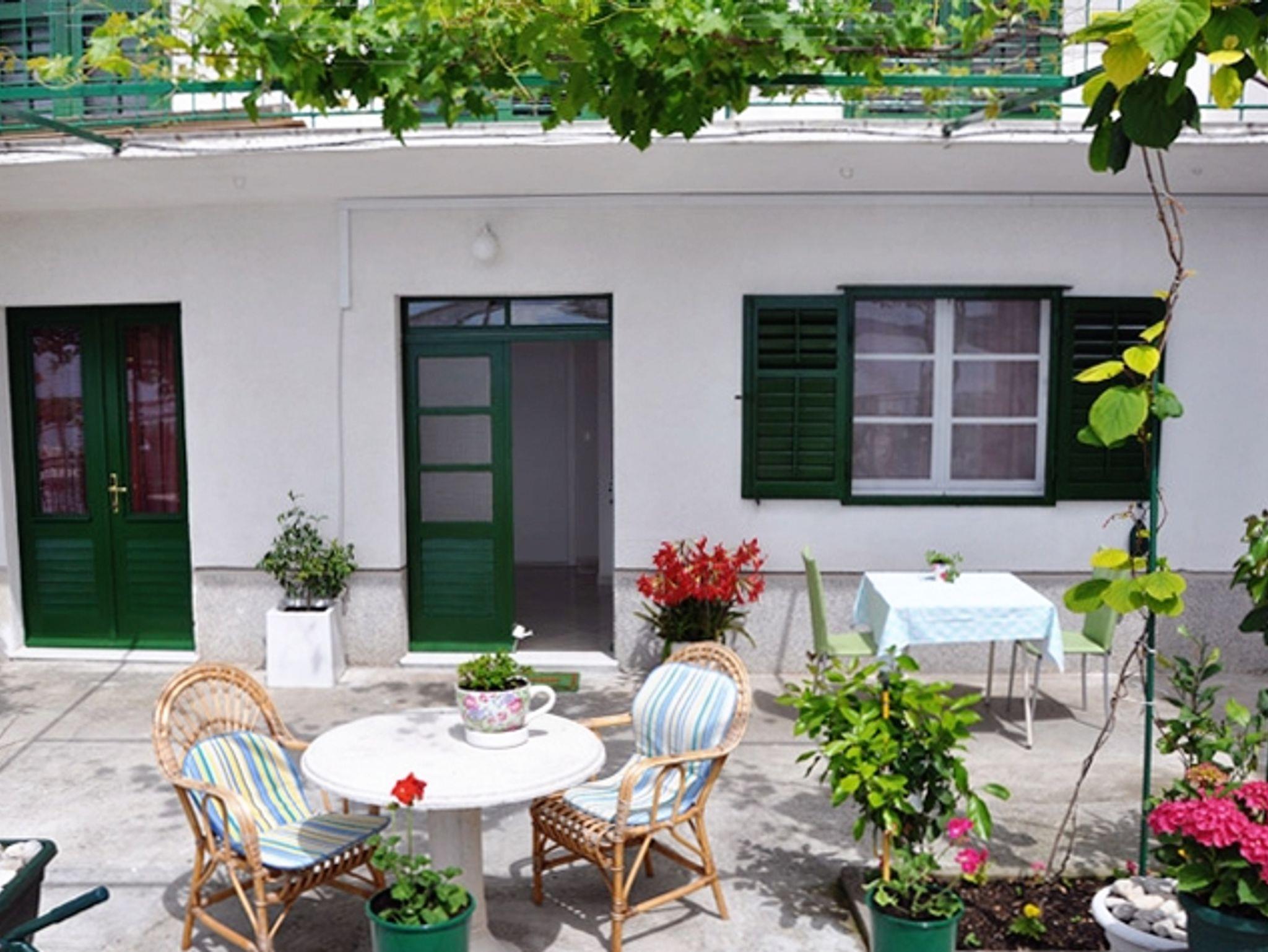Ferienwohnung bietet Platz für 5 Gäste. Die Betten sind in Schlafzimmern, die es 1 gibt, und in Esszimmer, innerhalb einer Gesamtfläche von 41m2, angeordnet. Die Gäste haben eine eigene Terrasse zur Verfügung, auf der sie in warmen Sommernächten genießen können. Das Apartment bietet Meerblick. Es ist erlaubt, Speisen auf dem Gemeinschafts-Grill vorzubereiten. Durch die Terrasse der gebuchten Unterkunftseinheit gehen auch andere Gäste oder Vermieter. IM PREIS INBEGRIFFEN: Kurtaxe, Endreinigung, Klimatisierung, Parkplatz, Internet, Wäschewaschen, Fahrrad, Bügeleisen, Bügelbrett, Föhn, tragbarer Grill. VERBINDLICHE ZUSÄTZLICHE KOSTEN: Aufzahlung für Kurzaufenthalte (prozentualer Zuschlag pro Nächtigungsanzahl: 30% - 1, 20% - 2, 10% - 3). Die Verfügbarkeit zusätzlicher Dienstleistungen in Ihrem reservierten Termin und die Preise derselben (falls nicht aufgeführt) müssen im Voraus überprüft werden. Zusätzliche Dienstleistungen die in der Zahlungsaufforderung nicht aufgeführt sind werden direkt beim Vermieter bezahlt, angenommen der Gast nutzt auch diese.