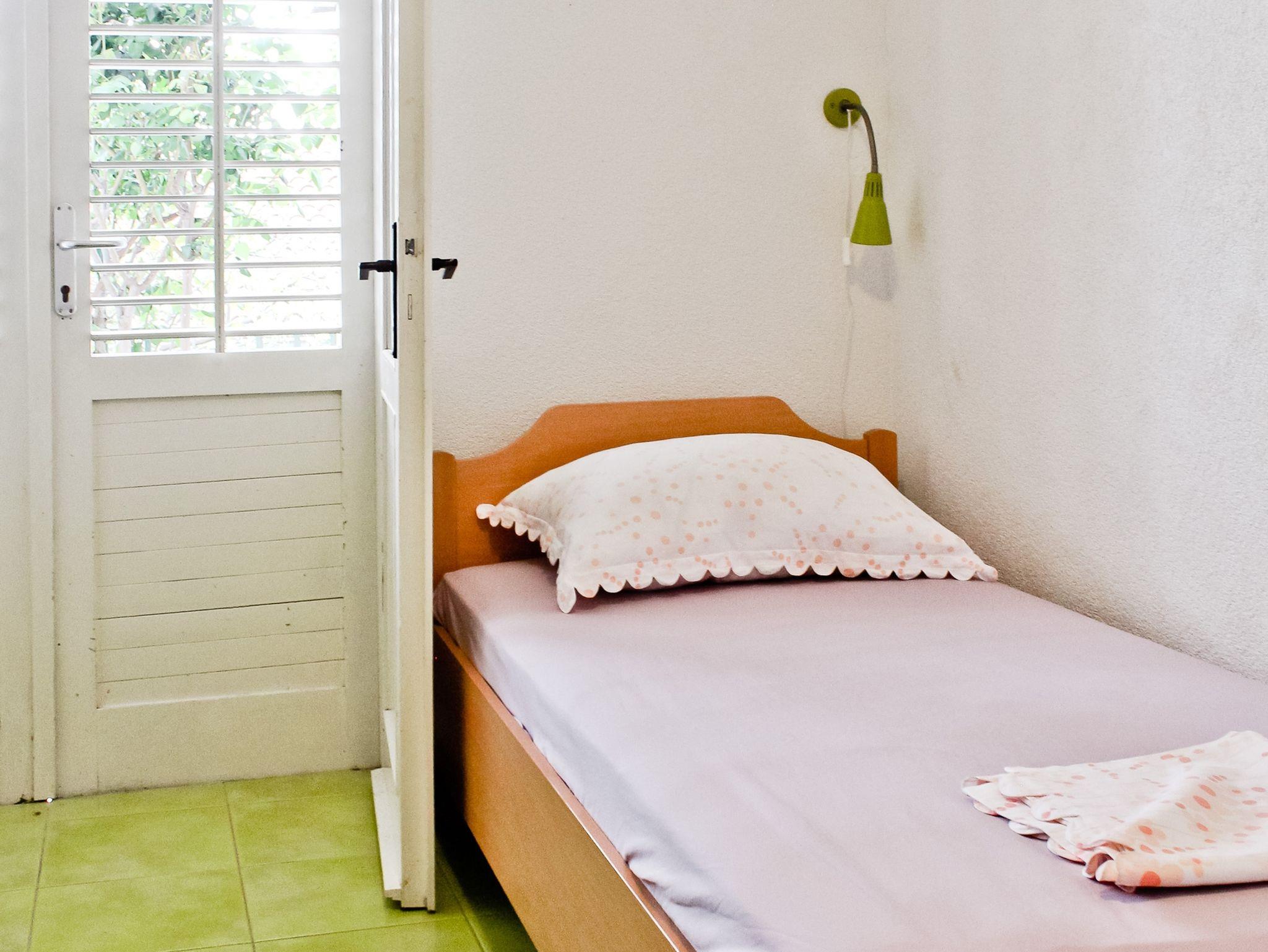 Ferienwohnung bietet Platz für 5 Gäste. Die Betten sind in Schlafzimmern, die es 2 gibt, und in Wohnzimmer, innerhalb einer Gesamtfläche von 37m2, angeordnet. Die Gäste haben eine eigene Terrasse zur Verfügung, auf der sie in warmen Sommernächten genießen können. IM PREIS INBEGRIFFEN: Kurtaxe, Endreinigung, Klimatisierung, Parkplatz, Internet, Bügeleisen, Bügelbrett, Föhn. VERBINDLICHE ZUSÄTZLICHE KOSTEN: Aufzahlung für Kurzaufenthalte (prozentualer Zuschlag pro Nächtigungsanzahl: 30% - 1, 20% - 2, 10% - 3). Die Verfügbarkeit zusätzlicher Dienstleistungen in Ihrem reservierten Termin und die Preise derselben (falls nicht aufgeführt) müssen im Voraus überprüft werden. Zusätzliche Dienstleistungen die in der Zahlungsaufforderung nicht aufgeführt sind werden direkt beim Vermieter bezahlt, angenommen der Gast nutzt auch diese. Ermäßigung auf den Grundpreis: Gratistag 14=13 (bei einem Aufenthalt von 14 Tagen oder mehr erhalten Sie einen Gratistag für den Aufenthalt bis 31.12.26).