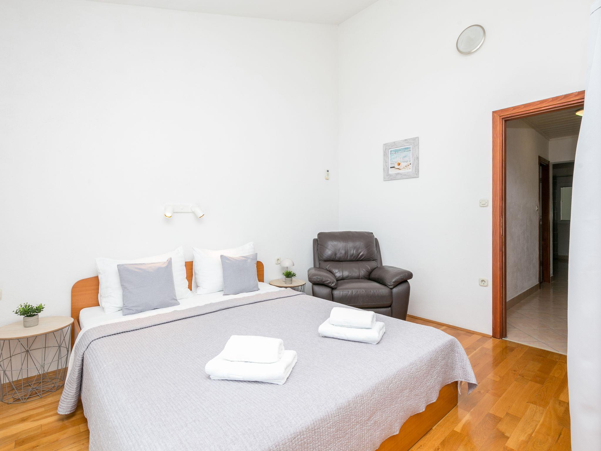 Ferienwohnung bietet Platz für 5 Gäste. Die Betten sind in Schlafzimmern, die es 1 gibt, und in Wohnzimmer, innerhalb einer Gesamtfläche von 35m2, angeordnet. Die Gäste haben einen eigenen Balkon zur Verfügung, auf der sie in warmen Sommernächten genießen können. Das Apartment bietet Meerblick. Es ist erlaubt, Speisen auf dem Gemeinschafts-Grill vorzubereiten. IM PREIS INBEGRIFFEN: Kurtaxe, Endreinigung, Klimatisierung, Parkplatz, Internet, Wäschewaschen, Kinderbett, Bügeleisen, Bügelbrett. VERBINDLICHE ZUSÄTZLICHE KOSTEN: Aufzahlung für Kurzaufenthalte (prozentualer Zuschlag pro Nächtigungsanzahl: 30% - 1, 20% - 2, 10% - 3). Die Verfügbarkeit zusätzlicher Dienstleistungen in Ihrem reservierten Termin und die Preise derselben (falls nicht aufgeführt) müssen im Voraus überprüft werden. Zusätzliche Dienstleistungen die in der Zahlungsaufforderung nicht aufgeführt sind werden direkt beim Vermieter bezahlt, angenommen der Gast nutzt auch diese. Ermäßigung auf den Grundpreis: Gratistag 14=13 (bei einem Aufenthalt von 14 Tagen oder mehr erhalten Sie einen Gratistag für den Aufenthalt bis 31.12.26).