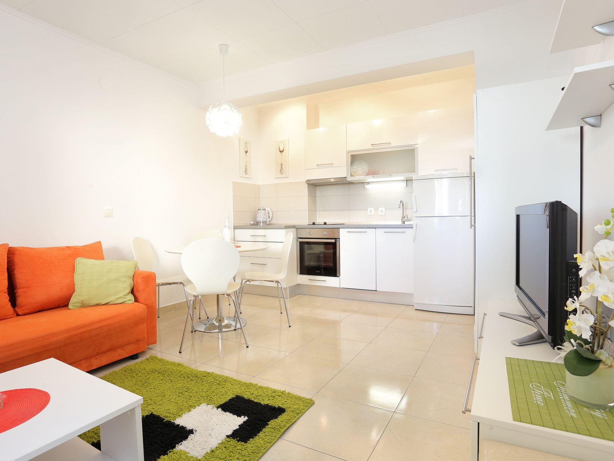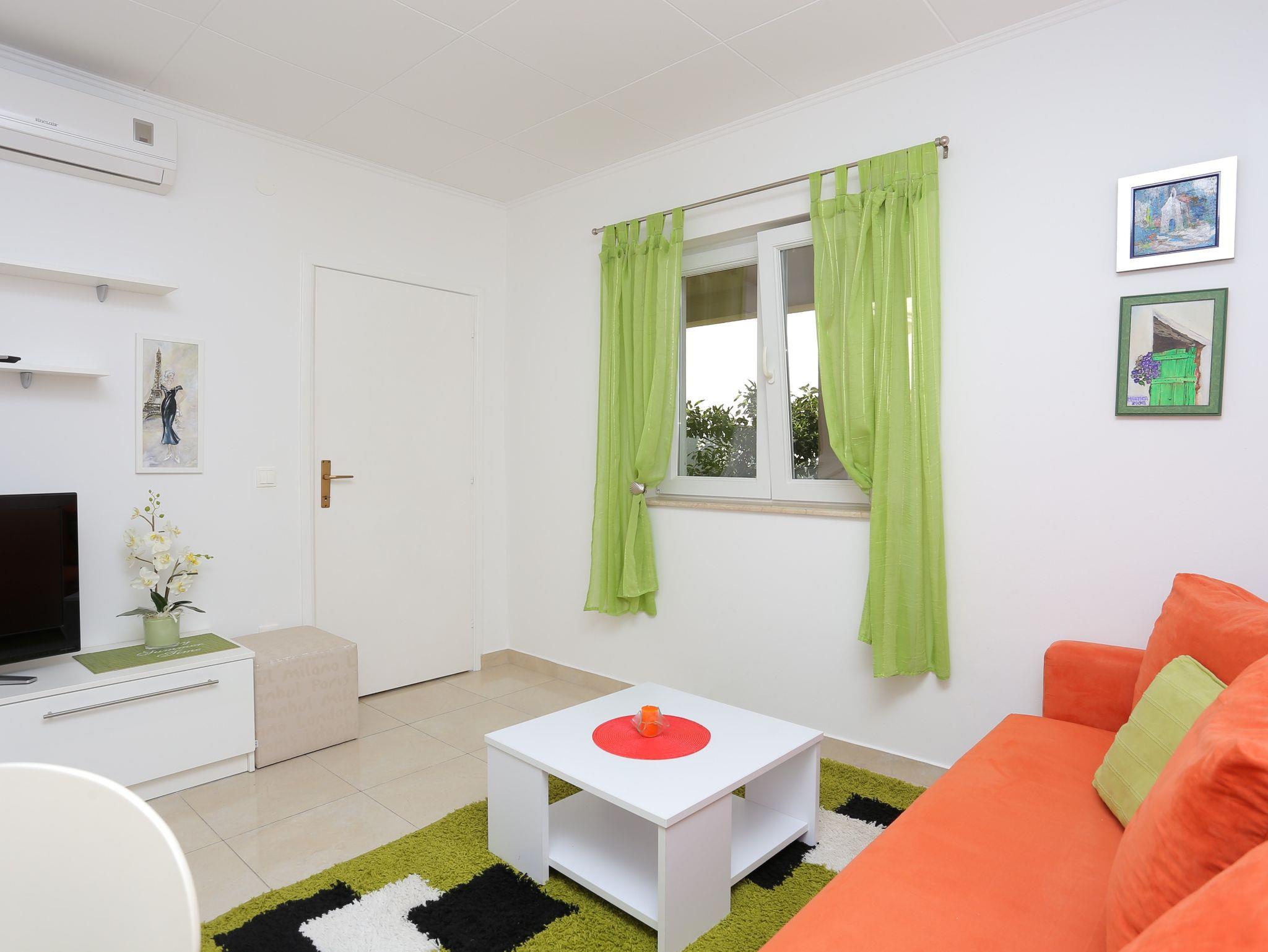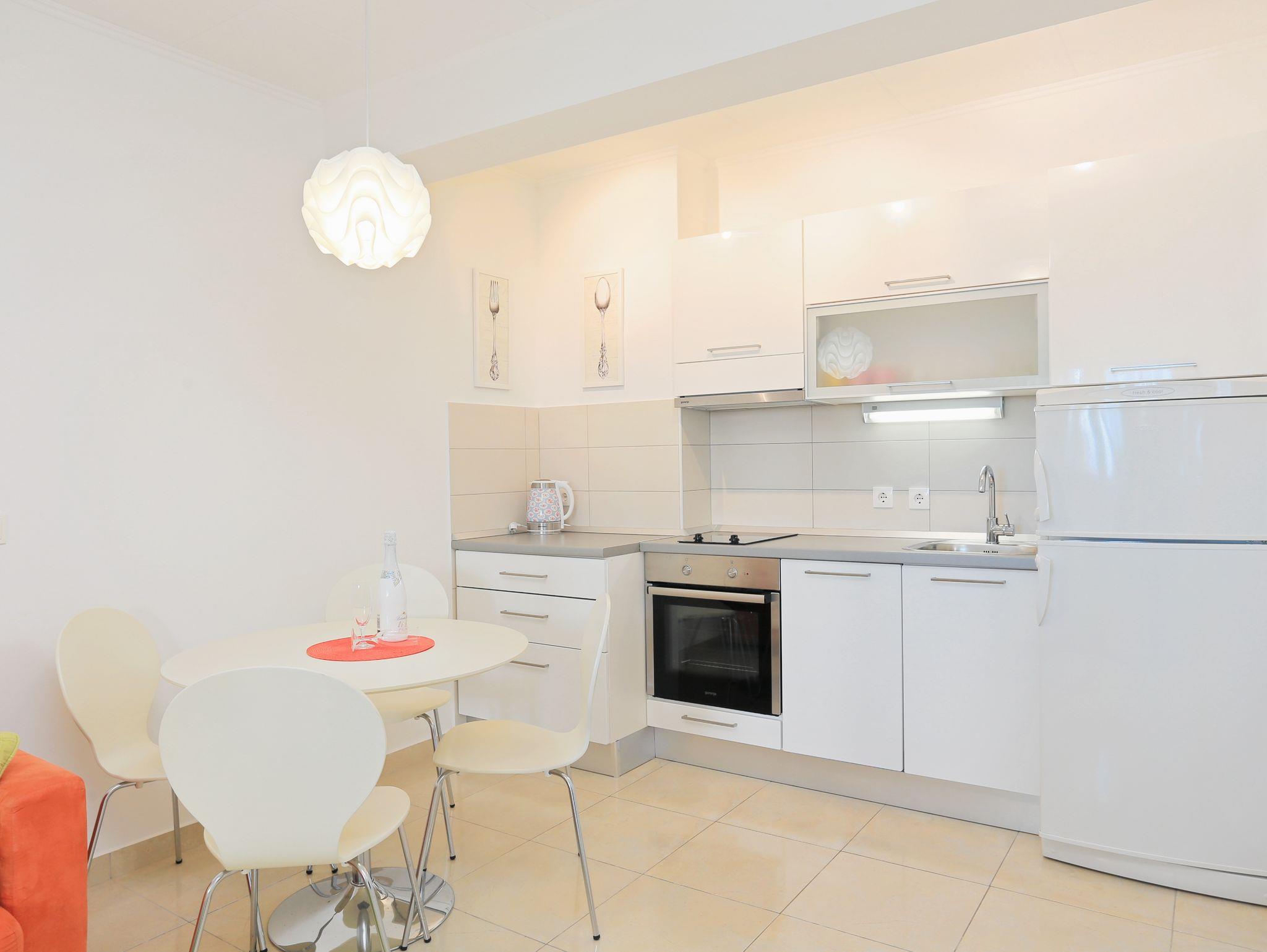 Ferienwohnung bietet Platz für 4 Gäste. Die Betten sind in Schlafzimmern, die es 1 gibt, und in Wohnzimmer, innerhalb einer Gesamtfläche von 31m2, angeordnet. Die Gäste haben eine eigene Terrasse zur Verfügung, auf der sie in warmen Sommernächten genießen können. Das Apartment bietet Meerblick. Es ist erlaubt, Speisen auf dem Gemeinschafts-Grill vorzubereiten. IM PREIS INBEGRIFFEN: Kurtaxe, Endreinigung, Klimatisierung, Parkplatz, Internet, Kinderbett, Bügeleisen, Föhn. VERBINDLICHE ZUSÄTZLICHE KOSTEN: Aufzahlung für Kurzaufenthalte (prozentualer Zuschlag pro Nächtigungsanzahl: 30% - 1, 20% - 2, 10% - 3). Die Verfügbarkeit zusätzlicher Dienstleistungen in Ihrem reservierten Termin und die Preise derselben (falls nicht aufgeführt) müssen im Voraus überprüft werden. Zusätzliche Dienstleistungen die in der Zahlungsaufforderung nicht aufgeführt sind werden direkt beim Vermieter bezahlt, angenommen der Gast nutzt auch diese.