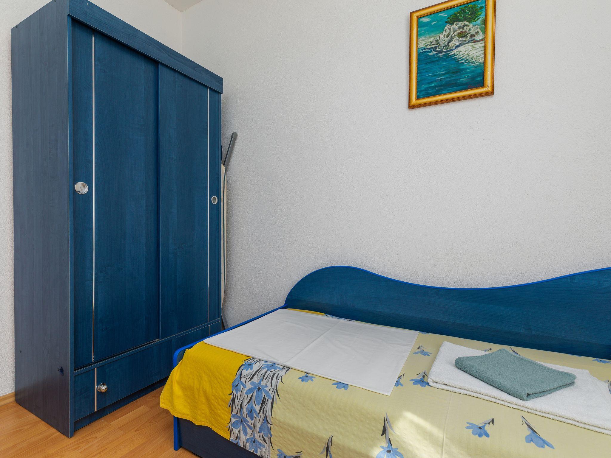 Ferienwohnung bietet Platz für 5 Gäste. Die Betten sind in Schlafzimmern, die es 2 gibt, und in Wohnzimmer, innerhalb einer Gesamtfläche von 62m2, angeordnet. Die Gäste haben einen eigenen Balkon zur Verfügung, auf der sie in warmen Sommernächten genießen können. Das Apartment bietet Meerblick. Es ist erlaubt, Speisen auf dem Gemeinschafts-Grill vorzubereiten. IM PREIS INBEGRIFFEN: Kurtaxe, Endreinigung, Klimatisierung, Parkplatz, Internet, Bügeleisen, Bügelbrett, Föhn. VERBINDLICHE ZUSÄTZLICHE KOSTEN: Aufzahlung für Kurzaufenthalte (prozentualer Zuschlag pro Nächtigungsanzahl: 30% - 1, 20% - 2, 10% - 3). Die Verfügbarkeit zusätzlicher Dienstleistungen in Ihrem reservierten Termin und die Preise derselben (falls nicht aufgeführt) müssen im Voraus überprüft werden. Zusätzliche Dienstleistungen die in der Zahlungsaufforderung nicht aufgeführt sind werden direkt beim Vermieter bezahlt, angenommen der Gast nutzt auch diese. Ermäßigung auf den Grundpreis: Gratistag 14=13 (bei einem Aufenthalt von 14 Tagen oder mehr erhalten Sie einen Gratistag für den Aufenthalt bis 31.12.26).
