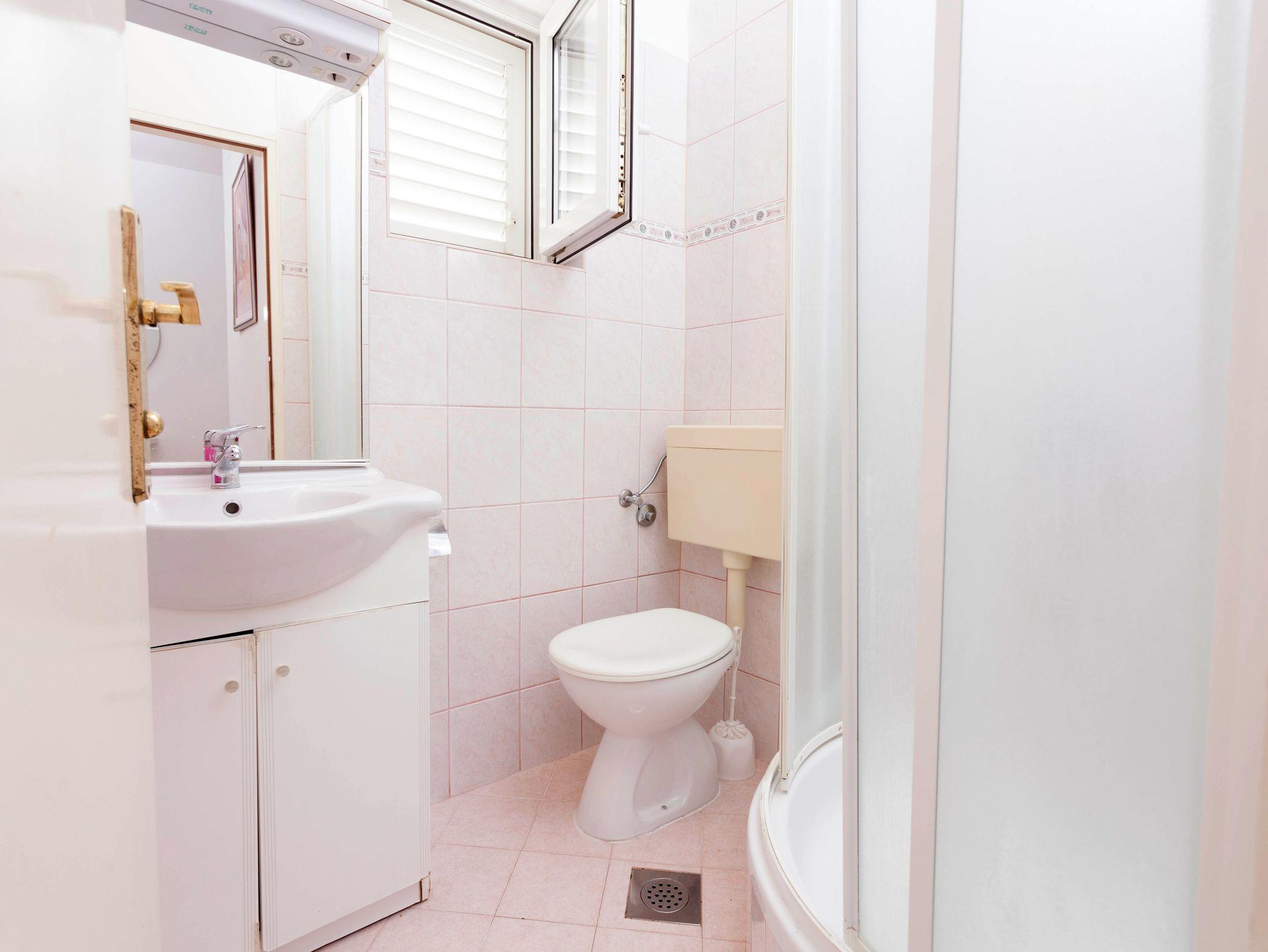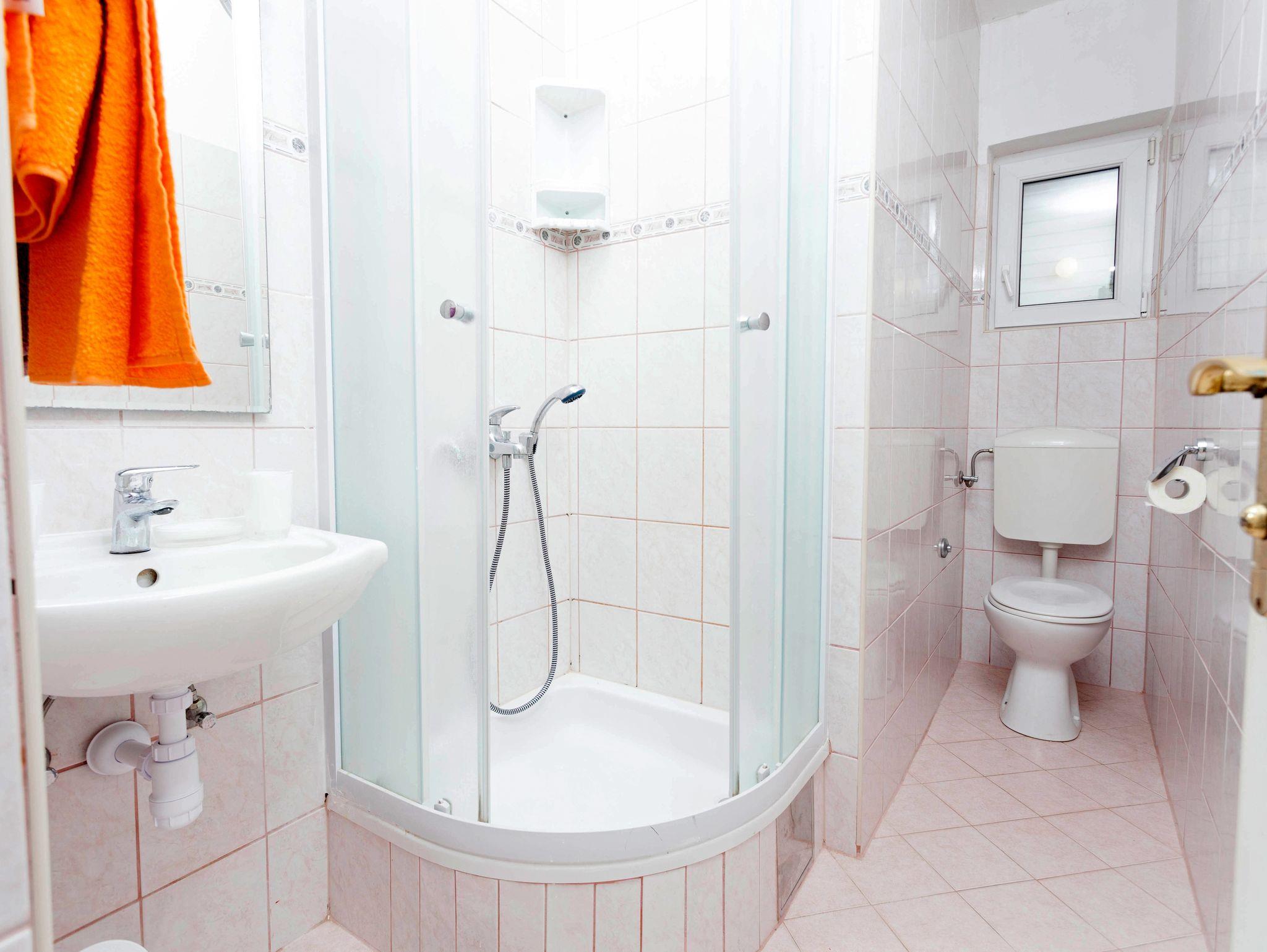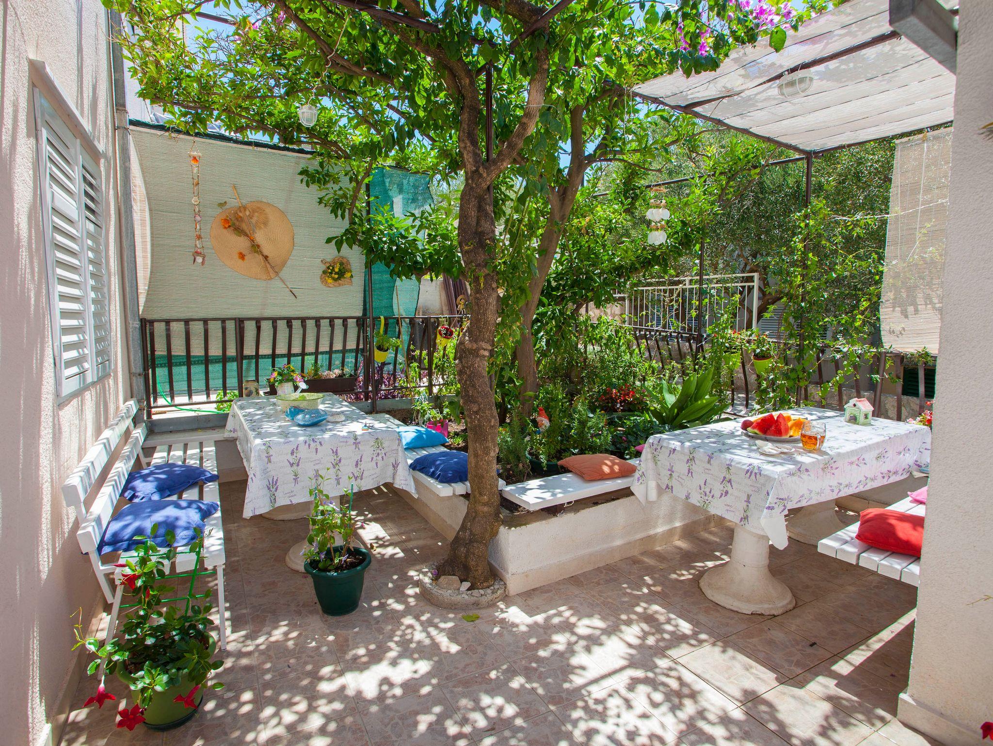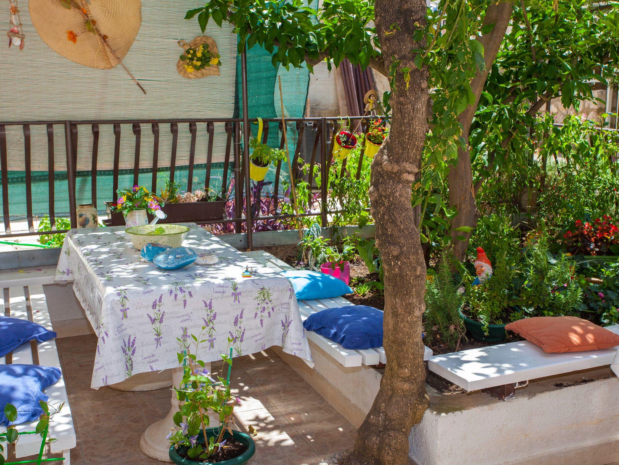 Ferienwohnung bietet Platz für 8 Gäste. Die Betten sind in Schlafzimmern, die es 3 gibt, innerhalb einer Gesamtfläche von 44m2, angeordnet. Die Gäste haben eine eigene Terrasse zur Verfügung, auf der sie in warmen Sommernächten genießen können. Das Apartment bietet Meerblick. Für vollen Genuss und Entspannung gibt es einen privaten Grill für Gäste dieser Unterkunft. Räume der gebuchten Unterkunftseinheit werden nicht in eine Ganze verbunden. Unterkunftseinheit hat Räume, die von dem Rest der Einheit abgetrennt werden. Eingang in die Unterkunftseinheit ist nicht mit einer Tür von anderen Räumen des Objektes getrennt. IM PREIS INBEGRIFFEN: Kurtaxe, Endreinigung, Klimatisierung, Parkplatz, Internet, Wäschewaschen, Kinderbett, Bügeleisen, Bügelbrett, Föhn. VERBINDLICHE ZUSÄTZLICHE KOSTEN: Aufzahlung für Kurzaufenthalte (prozentualer Zuschlag pro Nächtigungsanzahl: 30% - 1, 20% - 2, 10% - 3). Die Verfügbarkeit zusätzlicher Dienstleistungen in Ihrem reservierten Termin und die Preise derselben (falls nicht aufgeführt) müssen im Voraus überprüft werden. Zusätzliche Dienstleistungen die in der Zahlungsaufforderung nicht aufgeführt sind werden direkt beim Vermieter bezahlt, angenommen der Gast nutzt auch diese.