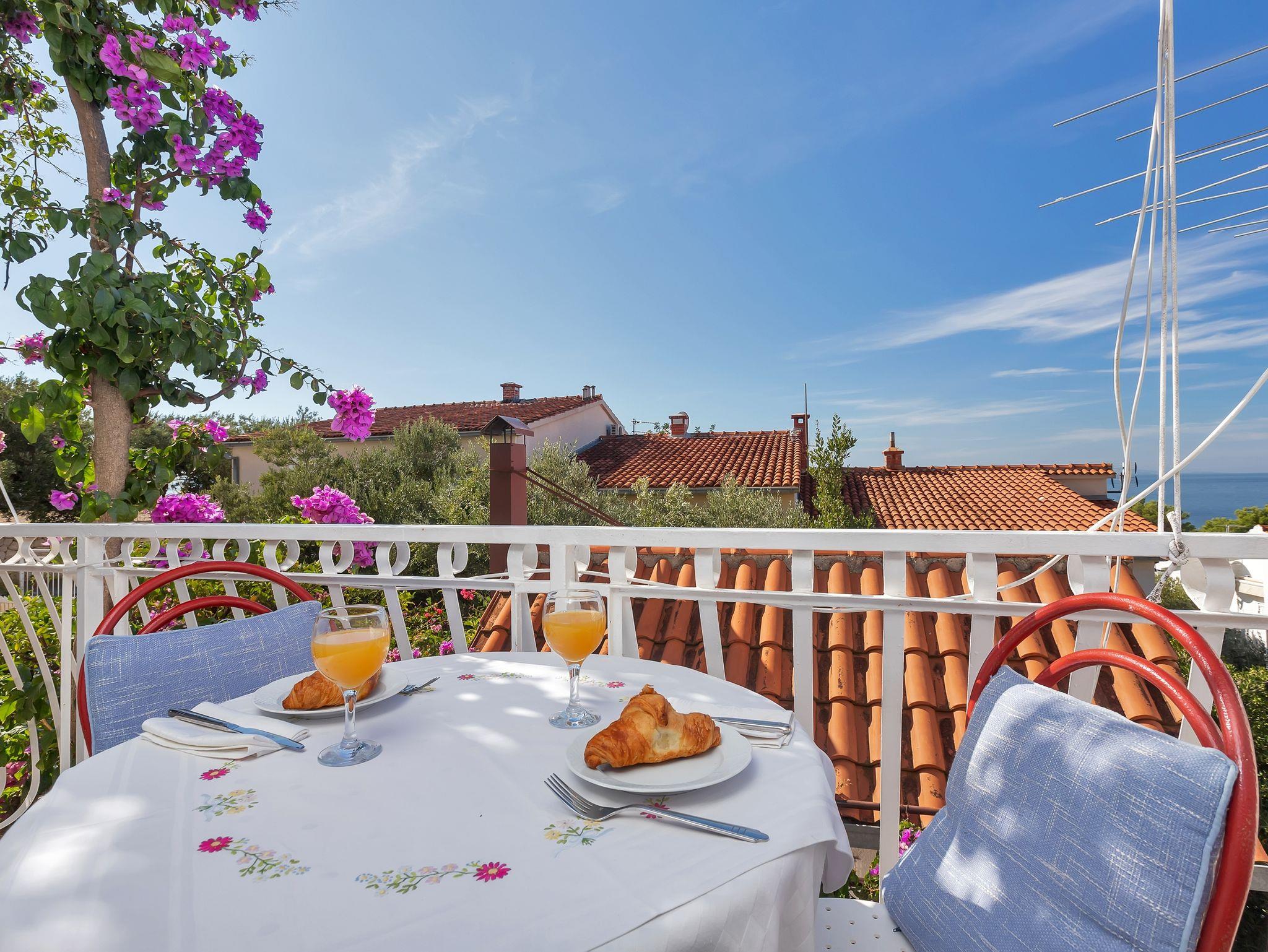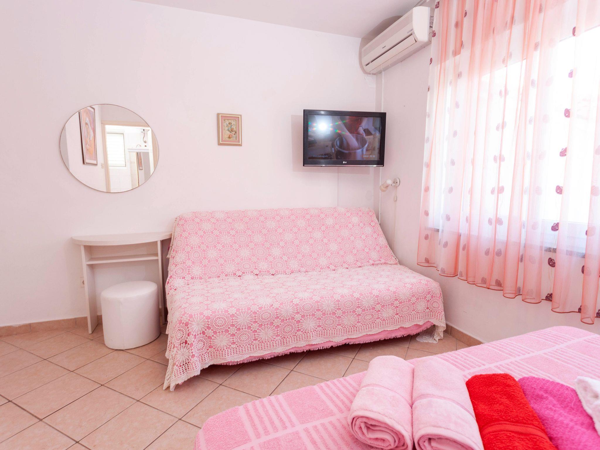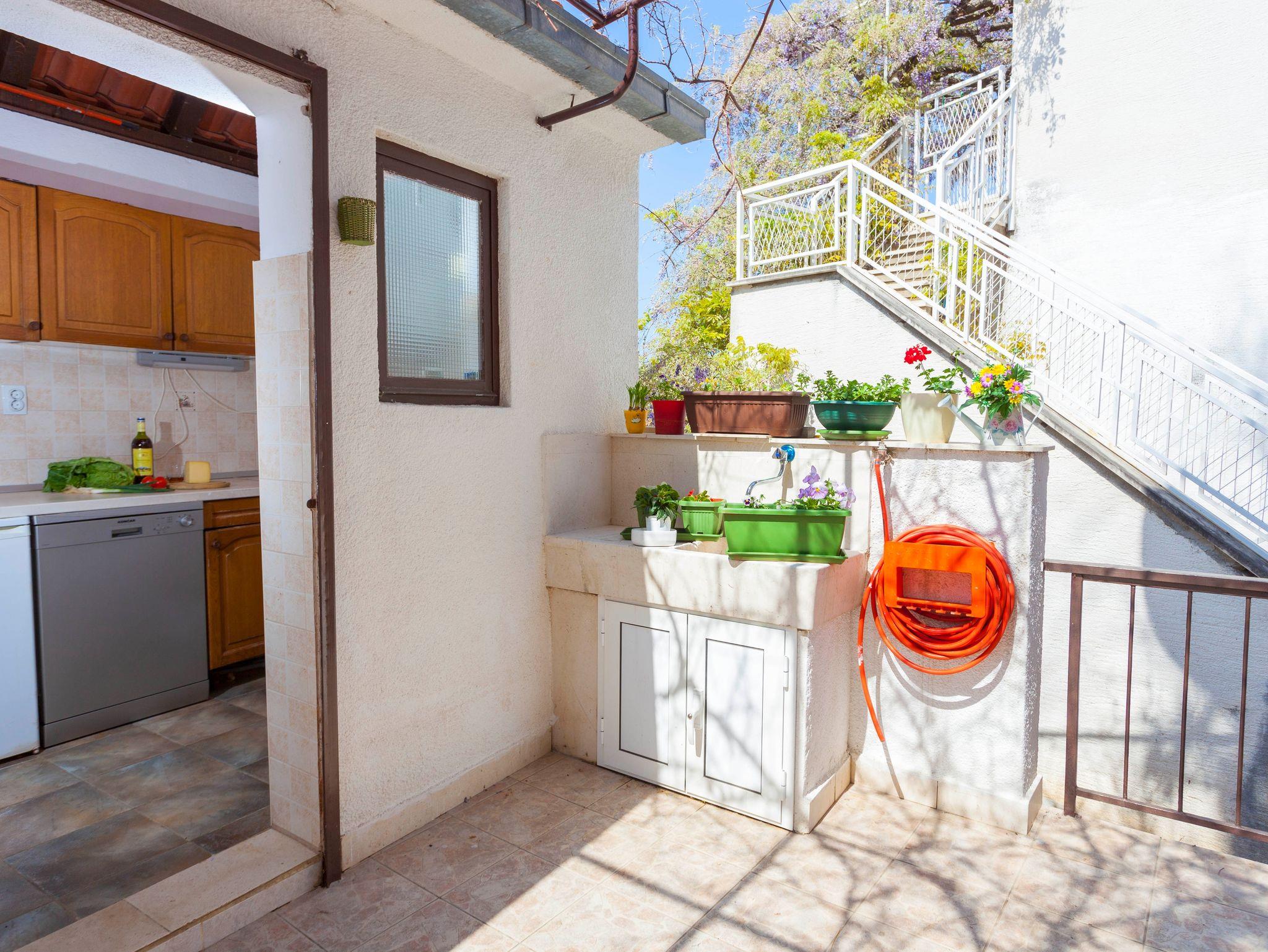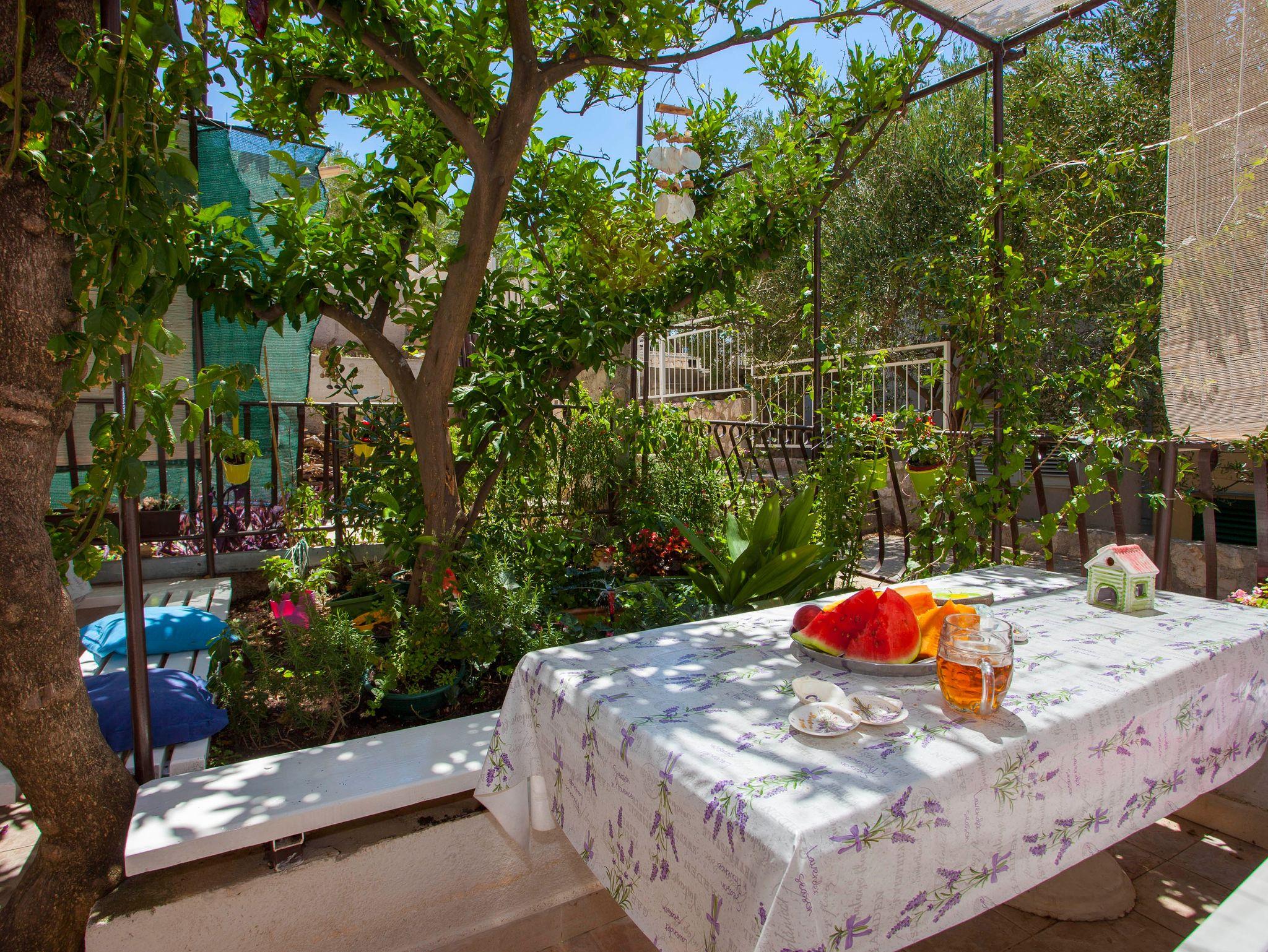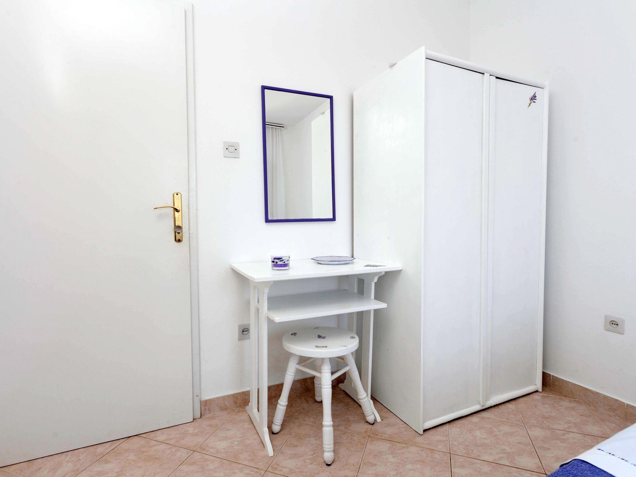 Ferienwohnung bietet Platz für 8 Gäste. Die Betten sind in Schlafzimmern, die es 3 gibt, innerhalb einer Gesamtfläche von 44m2, angeordnet. Die Gäste haben eine eigene Terrasse zur Verfügung, auf der sie in warmen Sommernächten genießen können. Das Apartment bietet Meerblick. Für vollen Genuss und Entspannung gibt es einen privaten Grill für Gäste dieser Unterkunft. Räume der gebuchten Unterkunftseinheit werden nicht in eine Ganze verbunden. Unterkunftseinheit hat Räume, die von dem Rest der Einheit abgetrennt werden. Eingang in die Unterkunftseinheit ist nicht mit einer Tür von anderen Räumen des Objektes getrennt. IM PREIS INBEGRIFFEN: Kurtaxe, Endreinigung, Klimatisierung, Parkplatz, Internet, Wäschewaschen, Kinderbett, Bügeleisen, Bügelbrett, Föhn. VERBINDLICHE ZUSÄTZLICHE KOSTEN: Aufzahlung für Kurzaufenthalte (prozentualer Zuschlag pro Nächtigungsanzahl: 30% - 1, 20% - 2, 10% - 3). Die Verfügbarkeit zusätzlicher Dienstleistungen in Ihrem reservierten Termin und die Preise derselben (falls nicht aufgeführt) müssen im Voraus überprüft werden. Zusätzliche Dienstleistungen die in der Zahlungsaufforderung nicht aufgeführt sind werden direkt beim Vermieter bezahlt, angenommen der Gast nutzt auch diese.