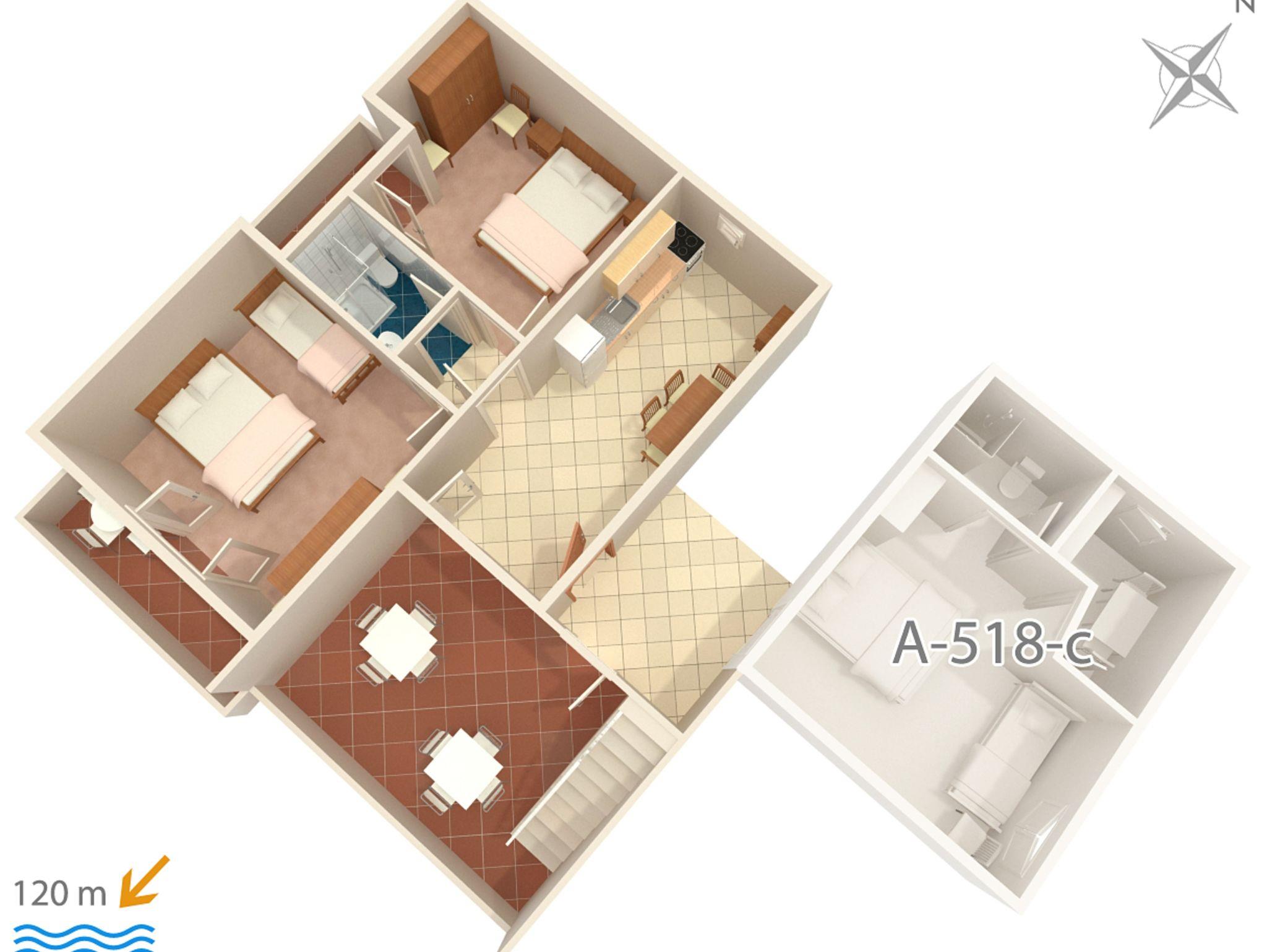 Objekt 518 im Ort Podgora, Makarska - Mitteldalmatien hat Unterkunftseinheiten vom Typ Studio (1), Ferienwohnung (4) und ist 120 m von Meer entfernt. Der nächste Strand zu dieser Unterkunft ist ein Kiesstrand. Es ist möglich, dass auch andere Gäste während Ihres Urlaubes im gleichen Objekt wohnen, da das Objekt mehrere Ferienwohnungen besitzt. Die Hausbesitzer werden während Ihres Urlaubes im Objekt sein. Der Eigentümer ist nicht verpflichtet, zusätzliche unangemeldete Personen und Haustiere zu akzeptieren. Sie sollten im Voraus bekannt gegeben werden. INHALT