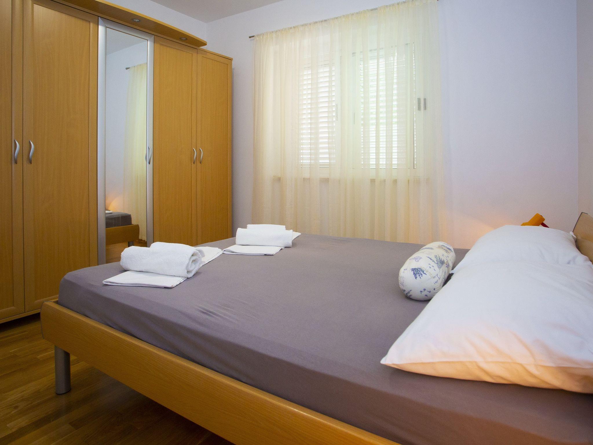 Ferienwohnung bietet Platz für 5 Gäste. Die Betten sind in Schlafzimmern, die es 2 gibt, innerhalb einer Gesamtfläche von 59m2, angeordnet. Die Gäste haben eine eigene Terrasse zur Verfügung, auf der sie in warmen Sommernächten genießen können. In der Unterkunftseinheit besteht die Möglichkeit des Mitbringens von Haustieren gegen Aufpreis. IM PREIS INBEGRIFFEN: Kurtaxe, Endreinigung, Klimatisierung, Parkplatz, Internet, Bügeleisen, Bügelbrett, Föhn. VERBINDLICHE ZUSÄTZLICHE KOSTEN: Aufzahlung für Kurzaufenthalte (prozentualer Zuschlag pro Nächtigungsanzahl: 30% - 1, 20% - 2, 10% - 3). UNVERBINDLICHE ZUSÄTZLICHE KOSTEN: Haustiere (5,00 € pro Nacht), Zusatzbett (10,00 € pro Nacht). Die Verfügbarkeit zusätzlicher Dienstleistungen in Ihrem reservierten Termin und die Preise derselben (falls nicht aufgeführt) müssen im Voraus überprüft werden. Zusätzliche Dienstleistungen die in der Zahlungsaufforderung nicht aufgeführt sind werden direkt beim Vermieter bezahlt, angenommen der Gast nutzt auch diese. Ermäßigung auf den Grundpreis: Gratistag 14=13 (bei einem Aufenthalt von 14 Tagen oder mehr erhalten Sie einen Gratistag für den Aufenthalt bis 31.12.26).