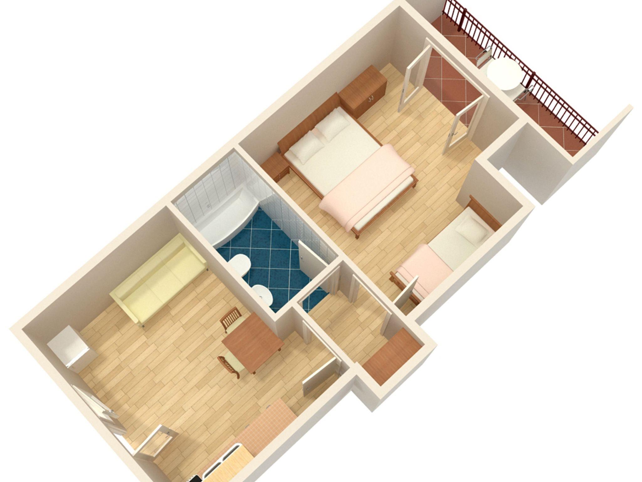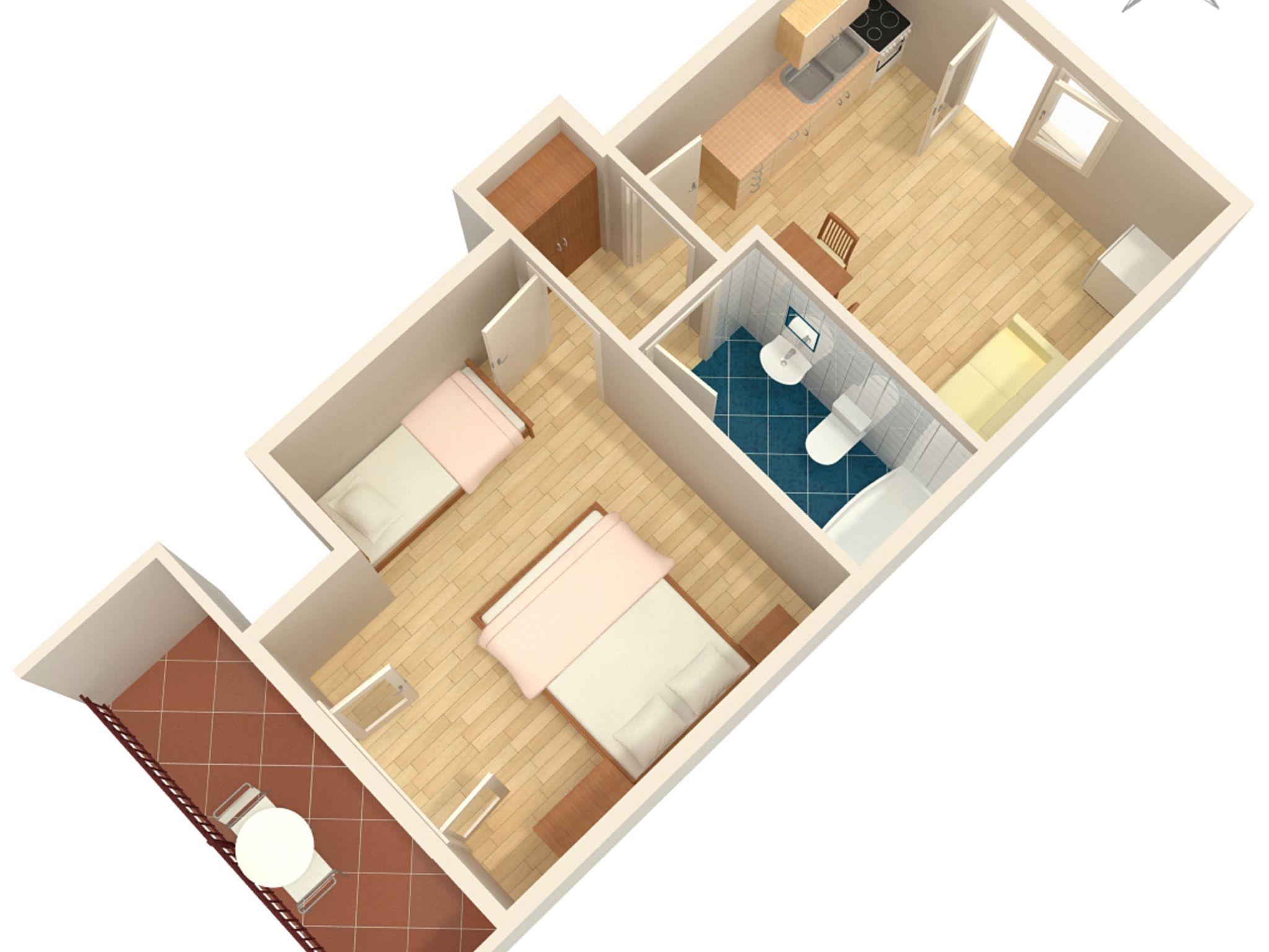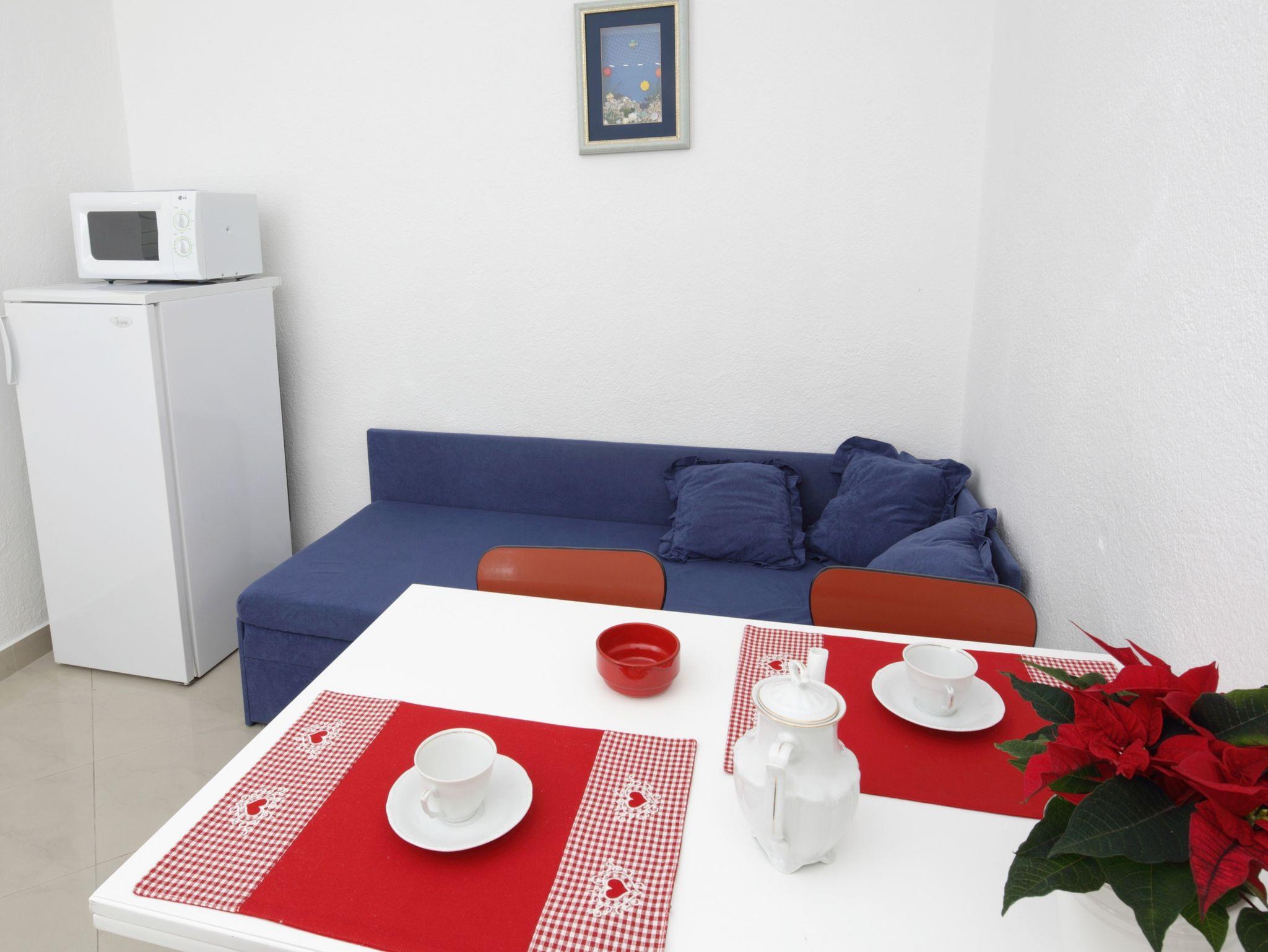 Ferienwohnung bietet Platz für 4 Gäste. Die Betten sind in Schlafzimmern, die es 1 gibt, und in Esszimmer, innerhalb einer Gesamtfläche von 32m2, angeordnet. Die Gäste haben einen eigenen Balkon zur Verfügung, auf der sie in warmen Sommernächten genießen können. Das Apartment bietet Meerblick. IM PREIS INBEGRIFFEN: Kurtaxe, Endreinigung, Klimatisierung, Parkplatz, Internet. VERBINDLICHE ZUSÄTZLICHE KOSTEN: Aufzahlung für Kurzaufenthalte (prozentualer Zuschlag pro Nächtigungsanzahl: 30% - 1, 20% - 2, 10% - 3). Die Verfügbarkeit zusätzlicher Dienstleistungen in Ihrem reservierten Termin und die Preise derselben (falls nicht aufgeführt) müssen im Voraus überprüft werden. Zusätzliche Dienstleistungen die in der Zahlungsaufforderung nicht aufgeführt sind werden direkt beim Vermieter bezahlt, angenommen der Gast nutzt auch diese.