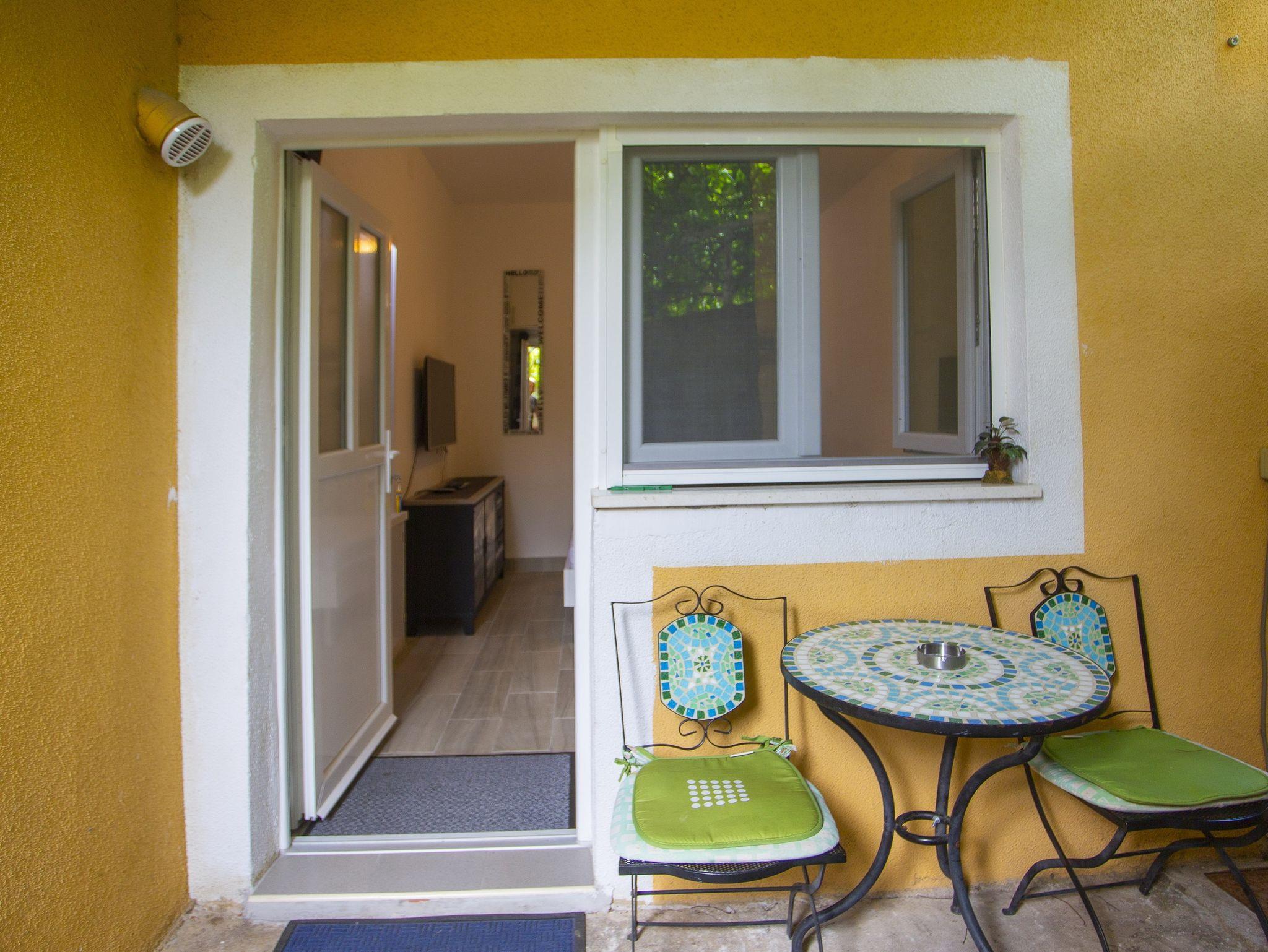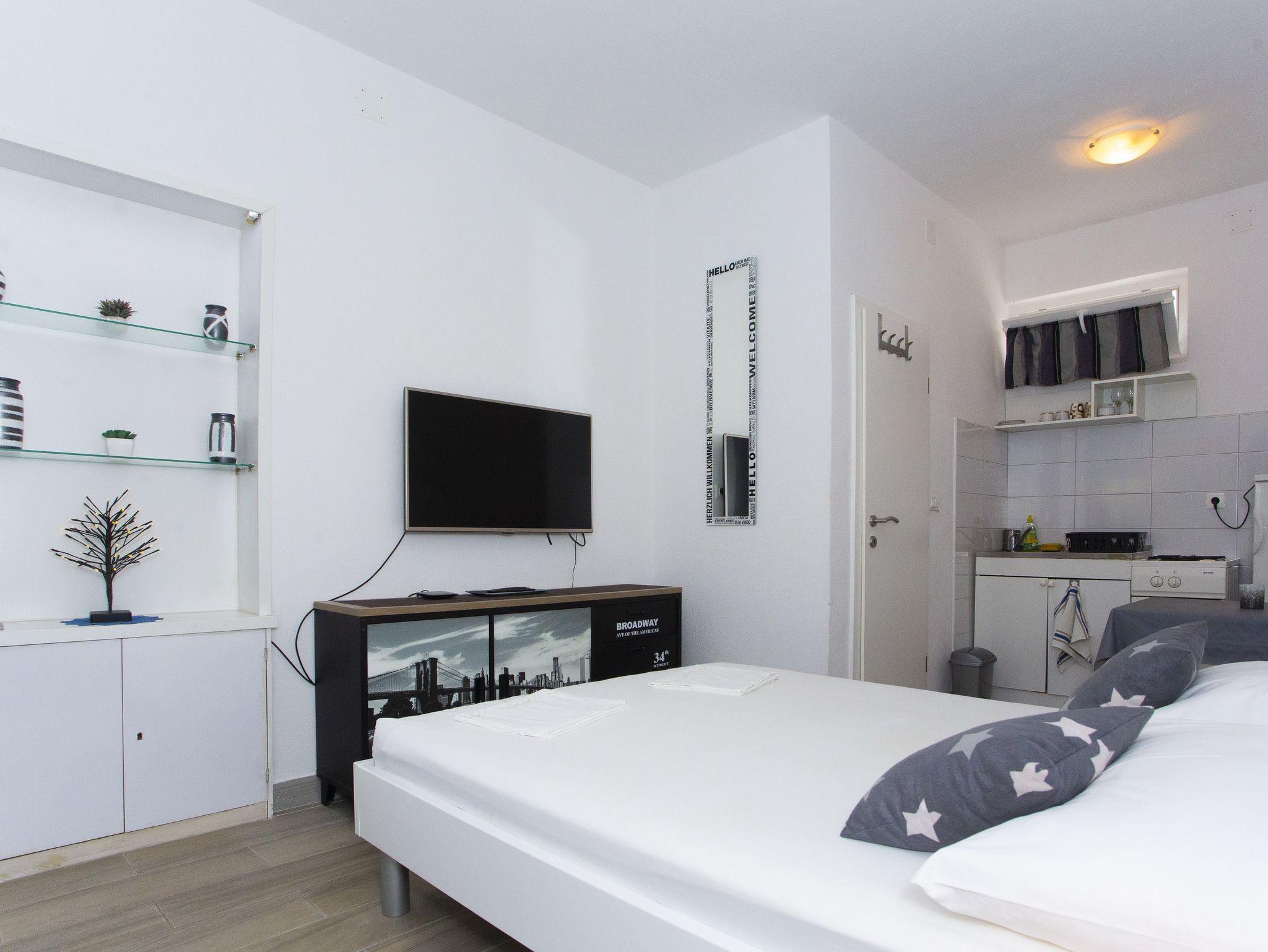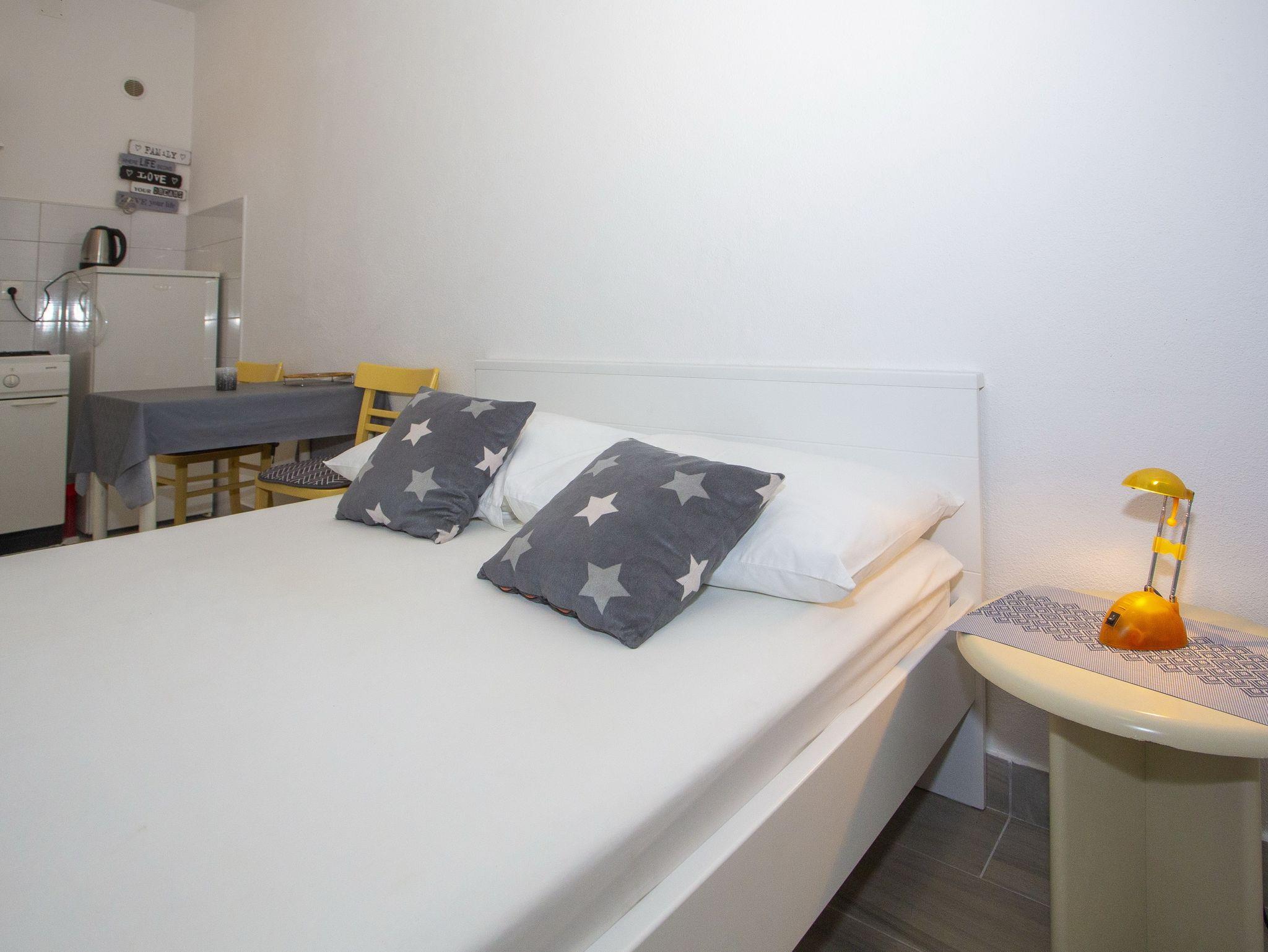Studio bietet Platz für 2 Gäste. Die Betten sind in Schlafzimmern, die es 1 gibt, innerhalb einer Gesamtfläche von 18m2, angeordnet. Die Gäste haben eine eigene Terrasse zur Verfügung, auf der sie in warmen Sommernächten genießen können. In der Unterkunftseinheit besteht die Möglichkeit des Mitbringens von Haustieren gegen Aufpreis. IM PREIS INBEGRIFFEN: Kurtaxe, Endreinigung, Klimatisierung, Parkplatz, Internet, Bügeleisen, Bügelbrett, Föhn. VERBINDLICHE ZUSÄTZLICHE KOSTEN: Aufzahlung für Kurzaufenthalte (prozentualer Zuschlag pro Nächtigungsanzahl: 30% - 1, 20% - 2, 10% - 3). UNVERBINDLICHE ZUSÄTZLICHE KOSTEN: Haustiere (5,00 € pro Nacht). Die Verfügbarkeit zusätzlicher Dienstleistungen in Ihrem reservierten Termin und die Preise derselben (falls nicht aufgeführt) müssen im Voraus überprüft werden. Zusätzliche Dienstleistungen die in der Zahlungsaufforderung nicht aufgeführt sind werden direkt beim Vermieter bezahlt, angenommen der Gast nutzt auch diese. Ermäßigung auf den Grundpreis: Gratistag 14=13 (bei einem Aufenthalt von 14 Tagen oder mehr erhalten Sie einen Gratistag für den Aufenthalt bis 31.12.26).