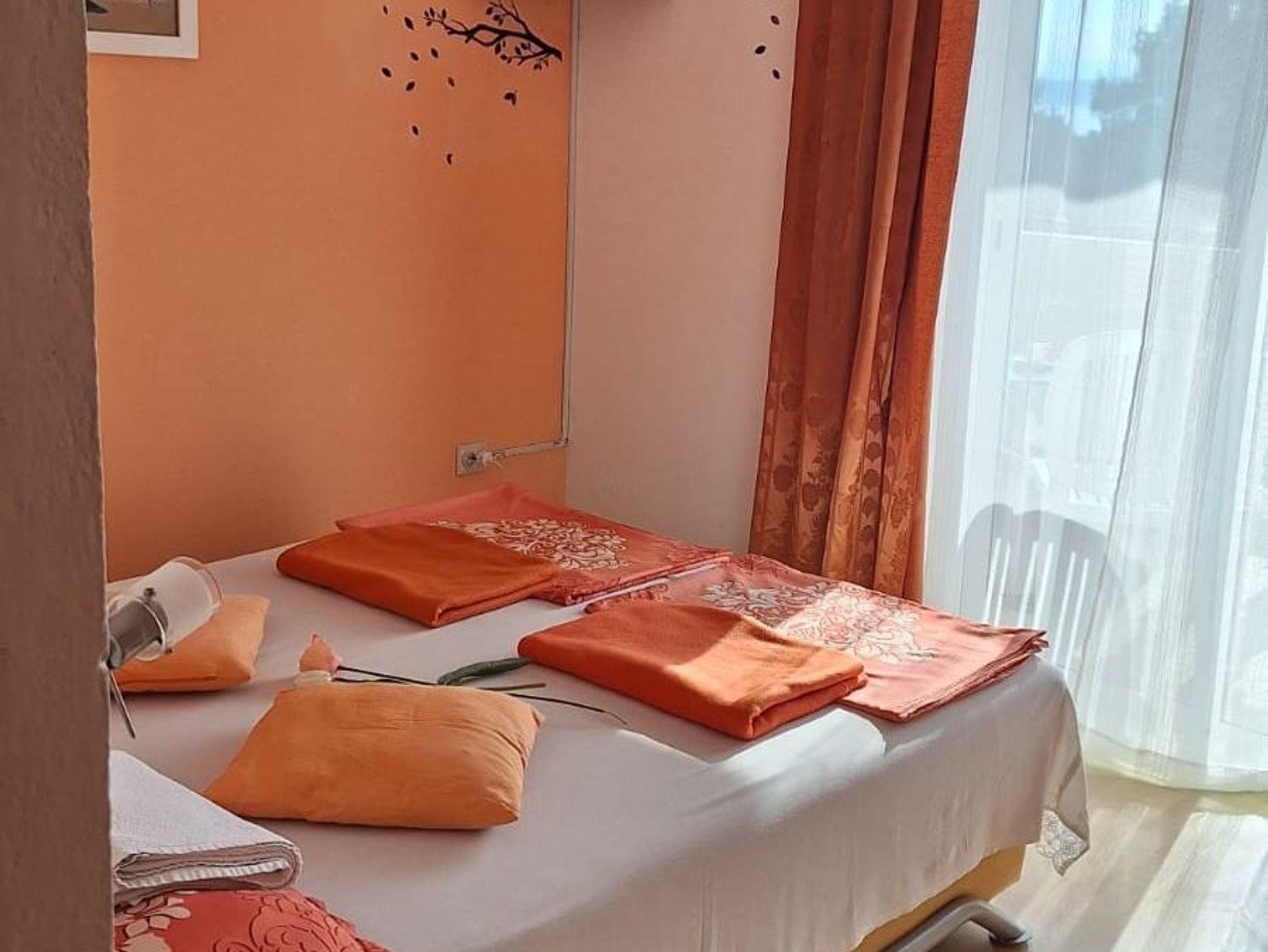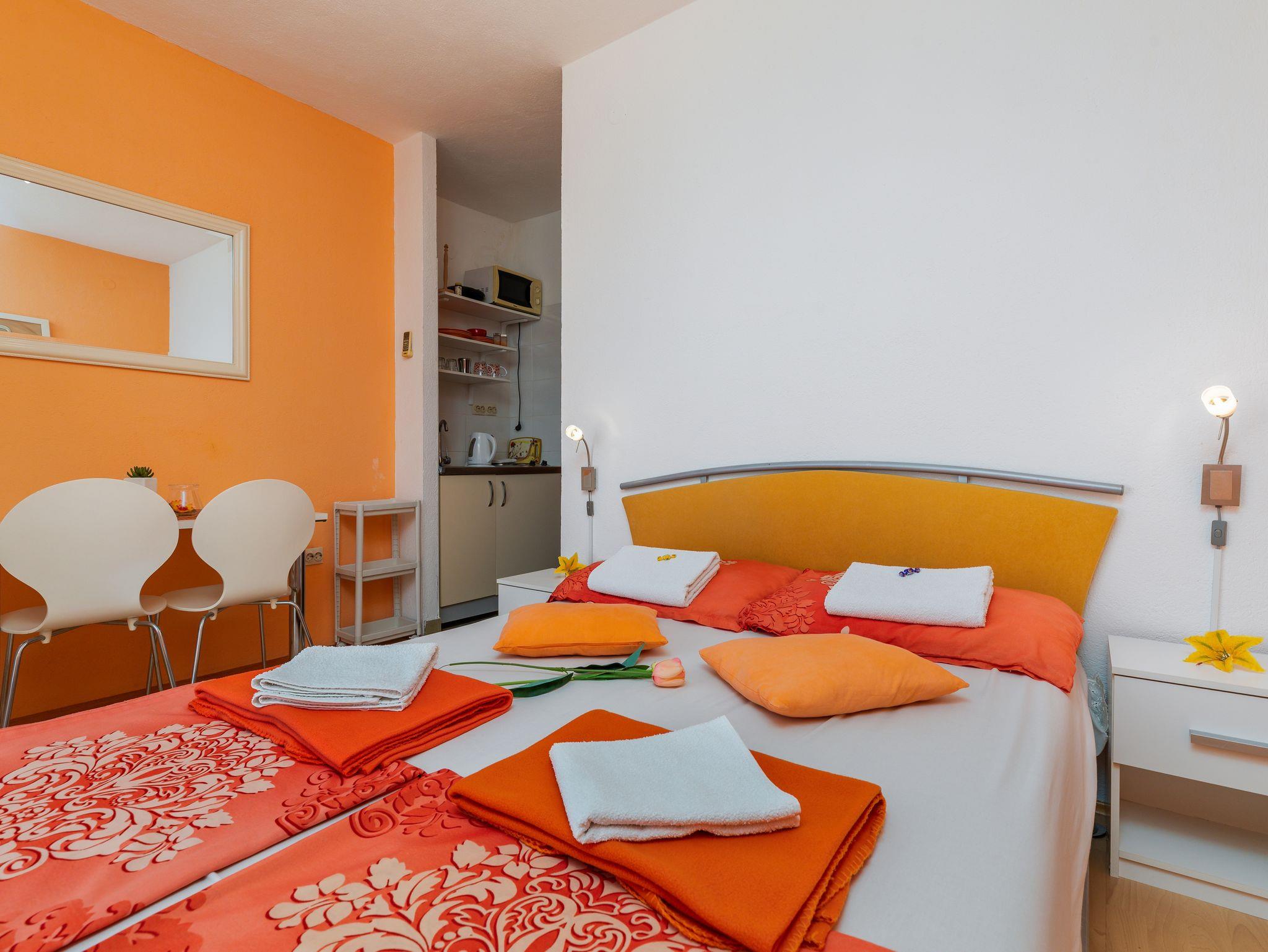 Studio bietet Platz für 2 Gäste. Die Betten sind in Schlafzimmern, die es 1 gibt, innerhalb einer Gesamtfläche von 19m2, angeordnet. Die Gäste haben einen eigenen Balkon zur Verfügung, auf der sie in warmen Sommernächten genießen können. Das Studio-Apartment bietet Meerblick. Es ist erlaubt, Speisen auf dem Gemeinschafts-Grill vorzubereiten. IM PREIS INBEGRIFFEN: Kurtaxe, Endreinigung, Klimatisierung, Parkplatz, Internet, Bügeleisen, Bügelbrett, Föhn. VERBINDLICHE ZUSÄTZLICHE KOSTEN: Aufzahlung für Kurzaufenthalte (prozentualer Zuschlag pro Nächtigungsanzahl: 30% - 1, 20% - 2, 10% - 3). Die Verfügbarkeit zusätzlicher Dienstleistungen in Ihrem reservierten Termin und die Preise derselben (falls nicht aufgeführt) müssen im Voraus überprüft werden. Zusätzliche Dienstleistungen die in der Zahlungsaufforderung nicht aufgeführt sind werden direkt beim Vermieter bezahlt, angenommen der Gast nutzt auch diese. Ermäßigung auf den Grundpreis: Gratistag 14=13 (bei einem Aufenthalt von 14 Tagen oder mehr erhalten Sie einen Gratistag für den Aufenthalt bis 31.12.26).
