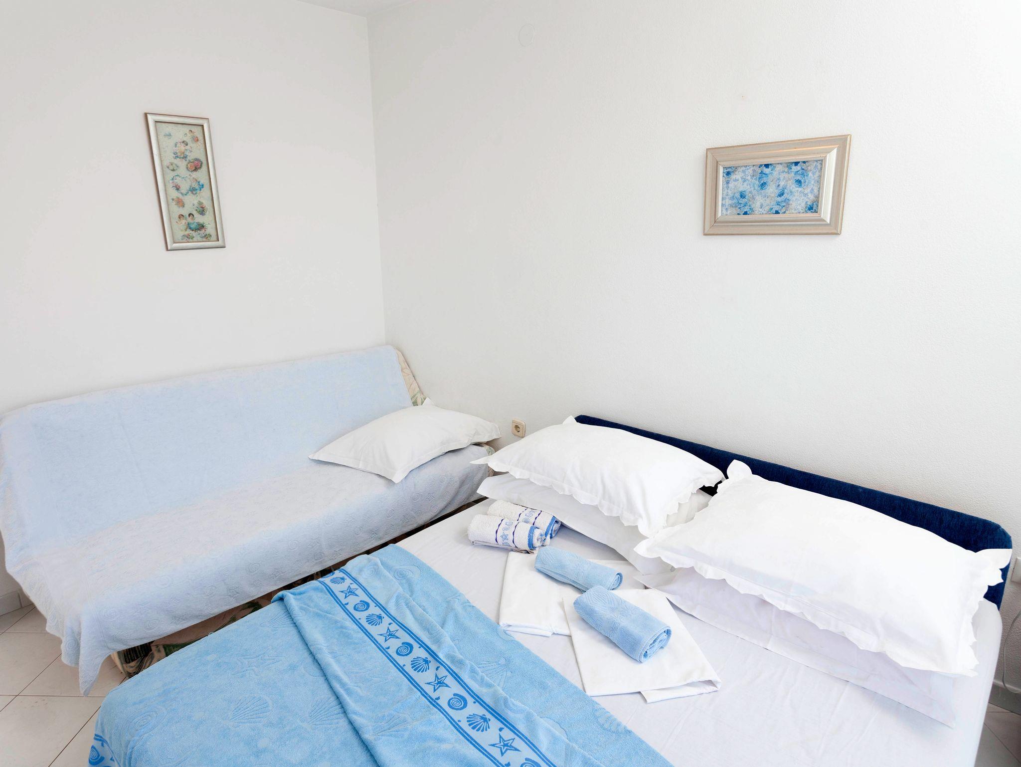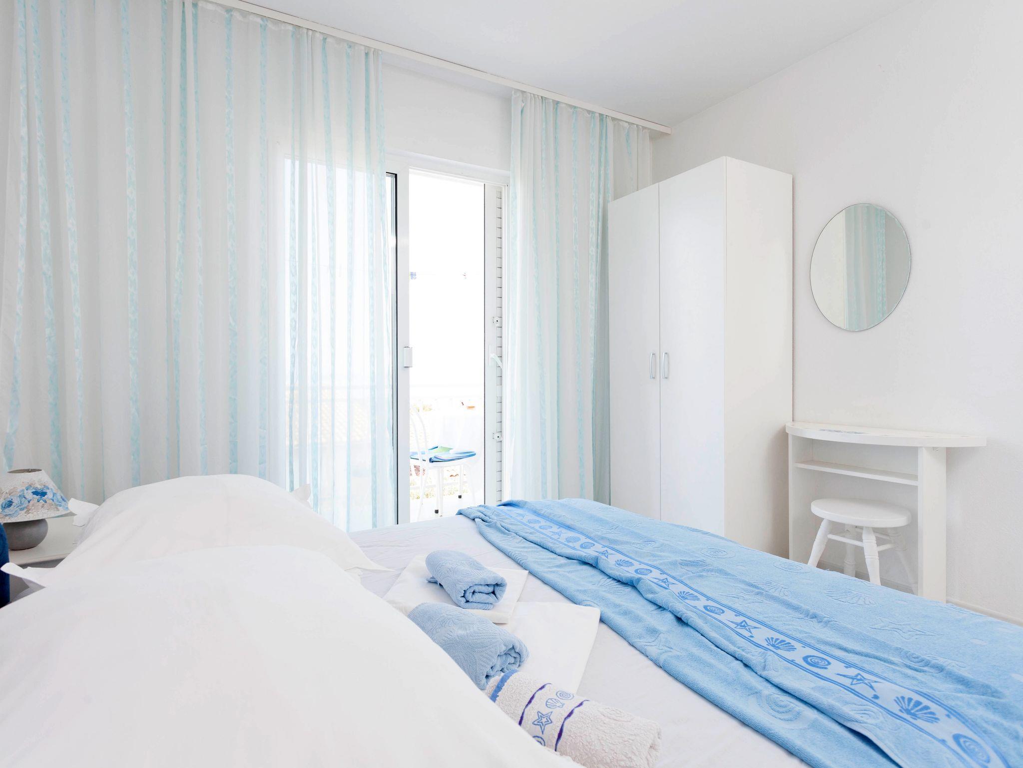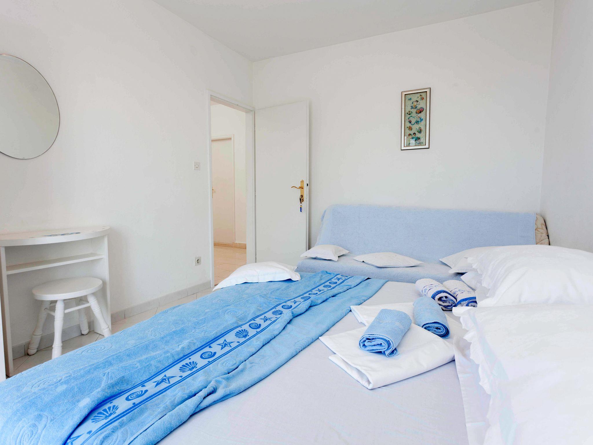 Ferienwohnung bietet Platz für 5 Gäste. Die Betten sind in Schlafzimmern, die es 2 gibt, innerhalb einer Gesamtfläche von 47m2, angeordnet. Die Gäste haben einen eigenen Balkon zur Verfügung, auf der sie in warmen Sommernächten genießen können. Das Apartment bietet Meerblick. IM PREIS INBEGRIFFEN: Kurtaxe, Endreinigung, Klimatisierung, Parkplatz, Internet, Wäschewaschen, Kinderbett, Bügeleisen, Bügelbrett, Föhn. VERBINDLICHE ZUSÄTZLICHE KOSTEN: Aufzahlung für Kurzaufenthalte (prozentualer Zuschlag pro Nächtigungsanzahl: 30% - 1, 20% - 2, 10% - 3). Die Verfügbarkeit zusätzlicher Dienstleistungen in Ihrem reservierten Termin und die Preise derselben (falls nicht aufgeführt) müssen im Voraus überprüft werden. Zusätzliche Dienstleistungen die in der Zahlungsaufforderung nicht aufgeführt sind werden direkt beim Vermieter bezahlt, angenommen der Gast nutzt auch diese.