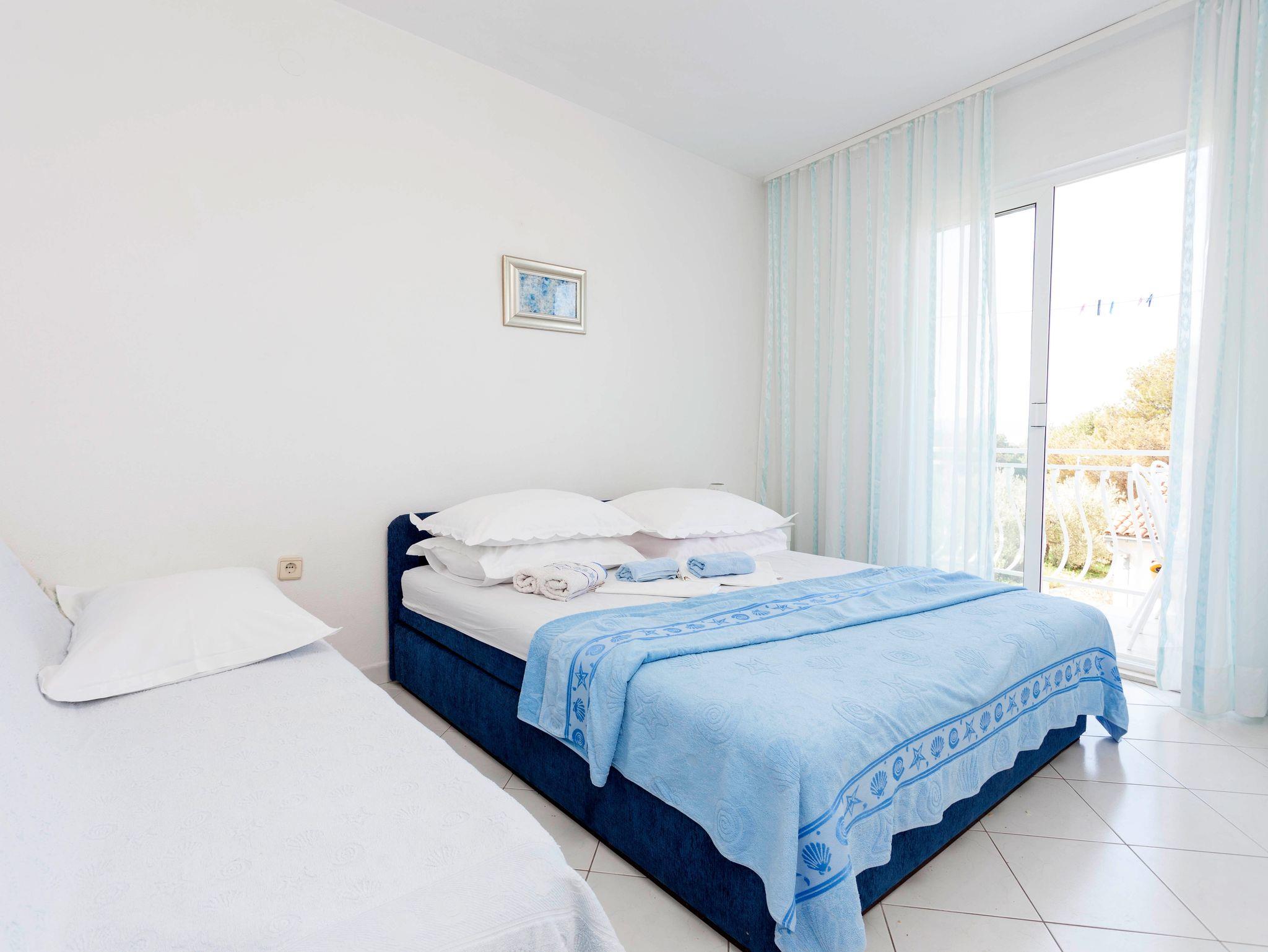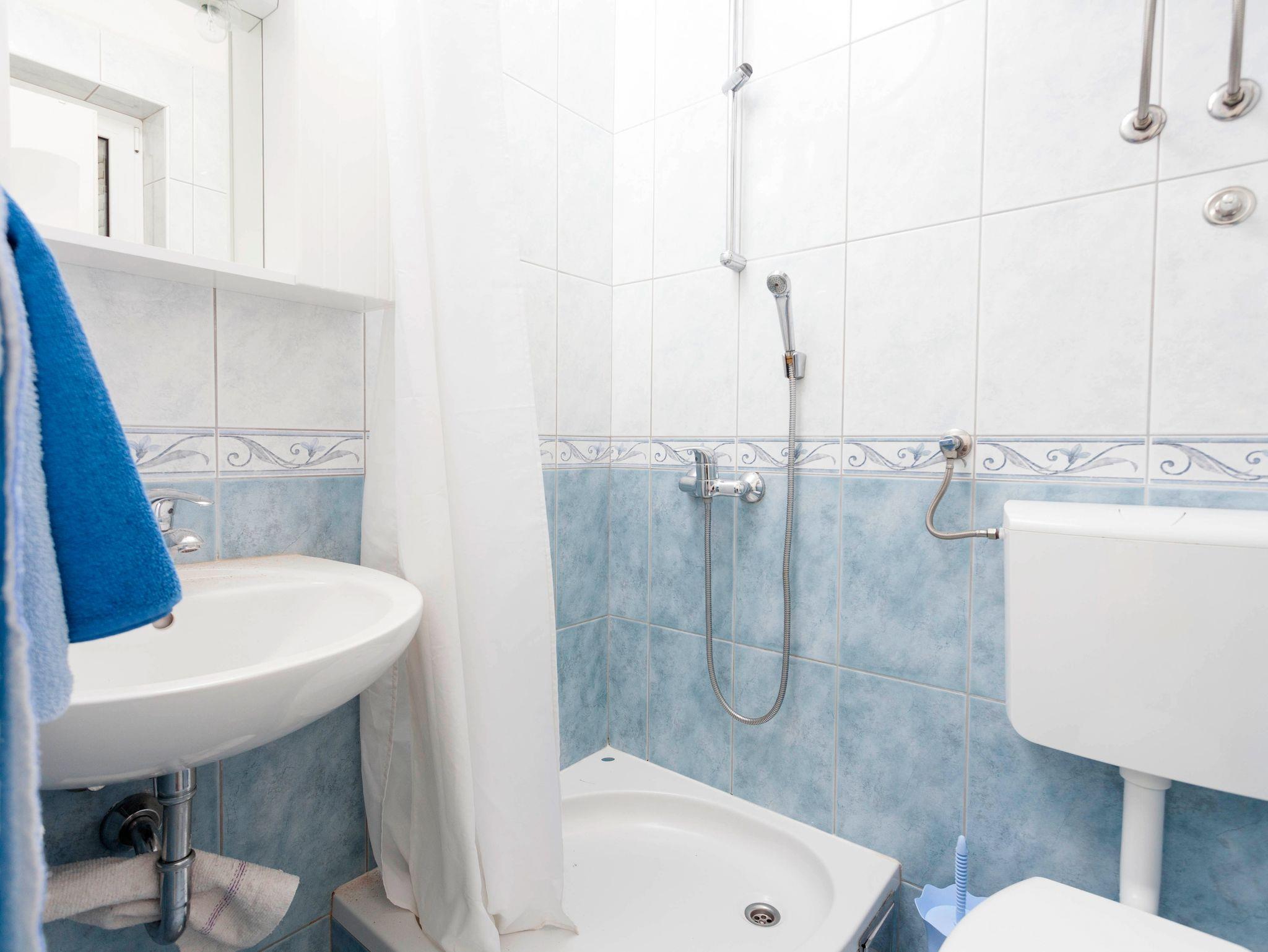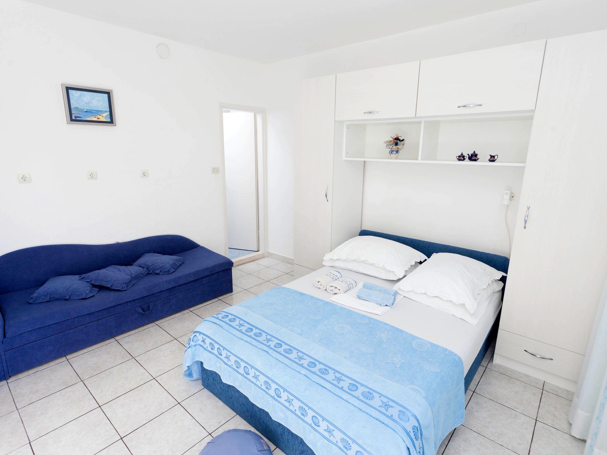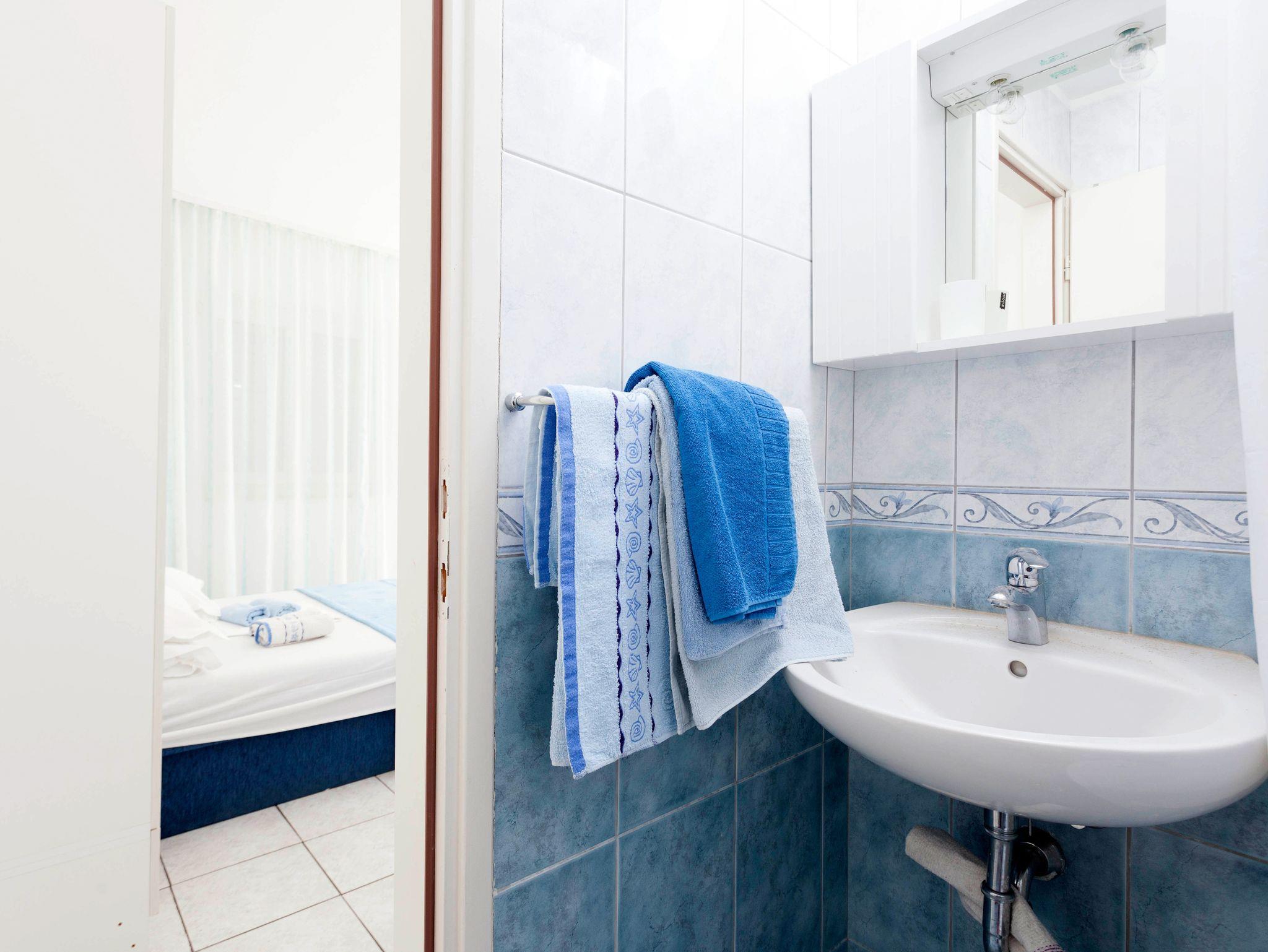 Ferienwohnung bietet Platz für 5 Gäste. Die Betten sind in Schlafzimmern, die es 2 gibt, innerhalb einer Gesamtfläche von 47m2, angeordnet. Die Gäste haben einen eigenen Balkon zur Verfügung, auf der sie in warmen Sommernächten genießen können. Das Apartment bietet Meerblick. IM PREIS INBEGRIFFEN: Kurtaxe, Endreinigung, Klimatisierung, Parkplatz, Internet, Wäschewaschen, Kinderbett, Bügeleisen, Bügelbrett, Föhn. VERBINDLICHE ZUSÄTZLICHE KOSTEN: Aufzahlung für Kurzaufenthalte (prozentualer Zuschlag pro Nächtigungsanzahl: 30% - 1, 20% - 2, 10% - 3). Die Verfügbarkeit zusätzlicher Dienstleistungen in Ihrem reservierten Termin und die Preise derselben (falls nicht aufgeführt) müssen im Voraus überprüft werden. Zusätzliche Dienstleistungen die in der Zahlungsaufforderung nicht aufgeführt sind werden direkt beim Vermieter bezahlt, angenommen der Gast nutzt auch diese.