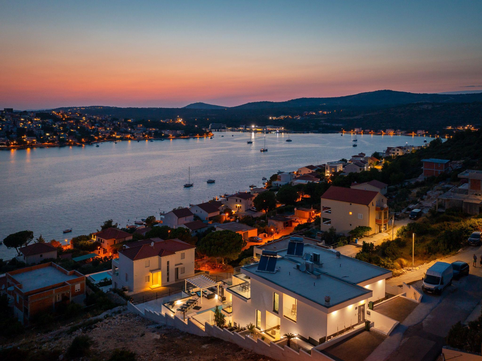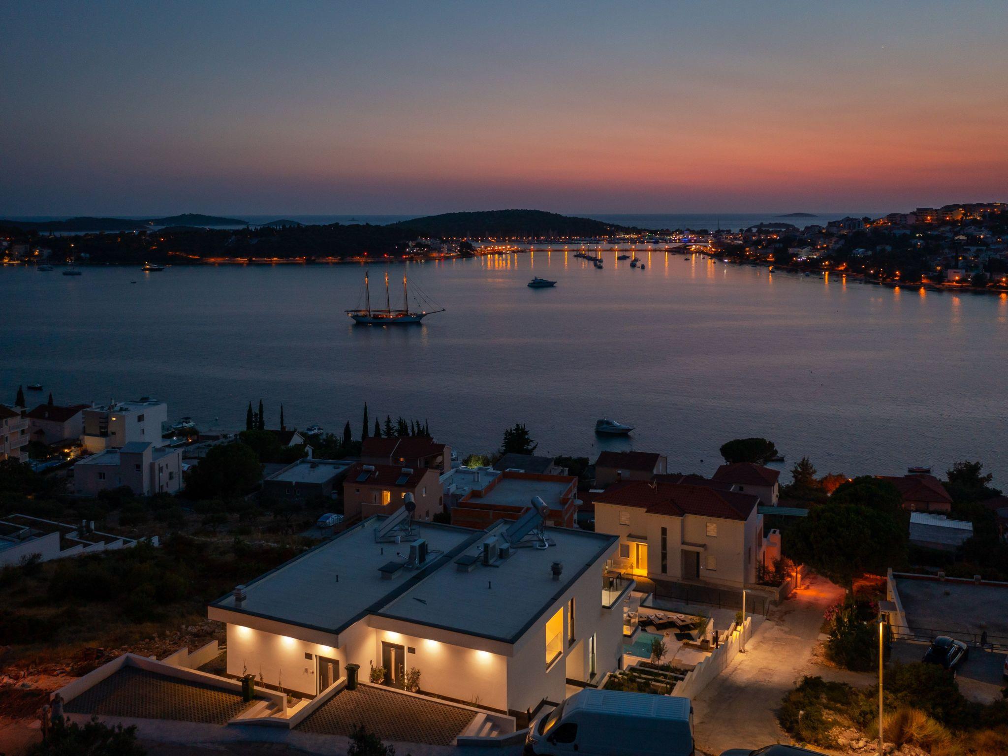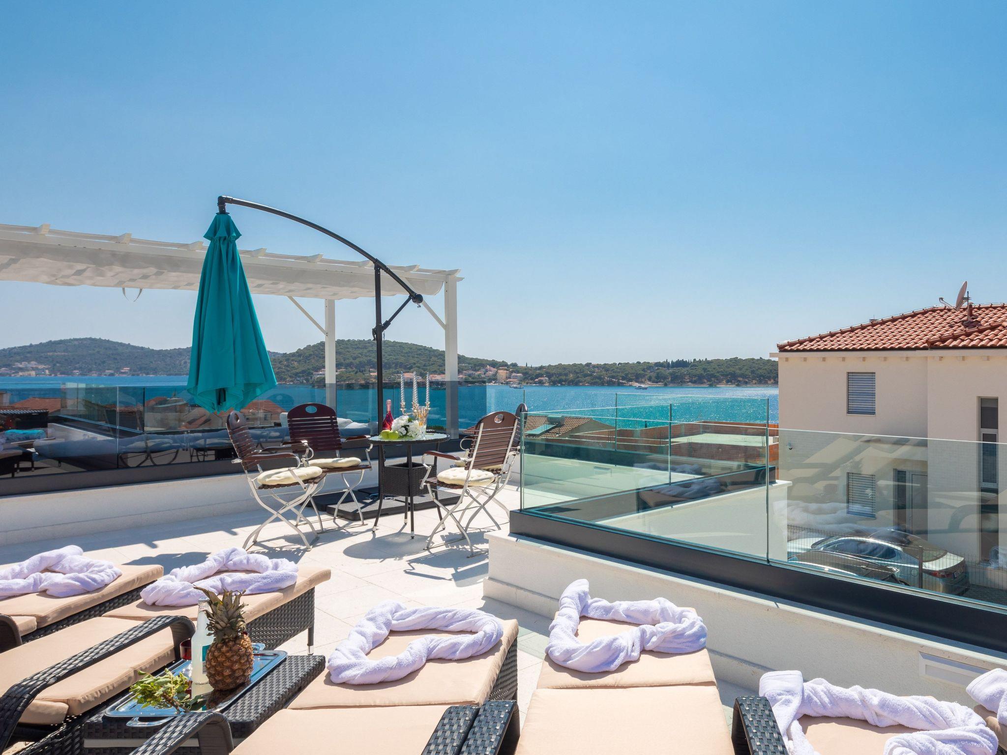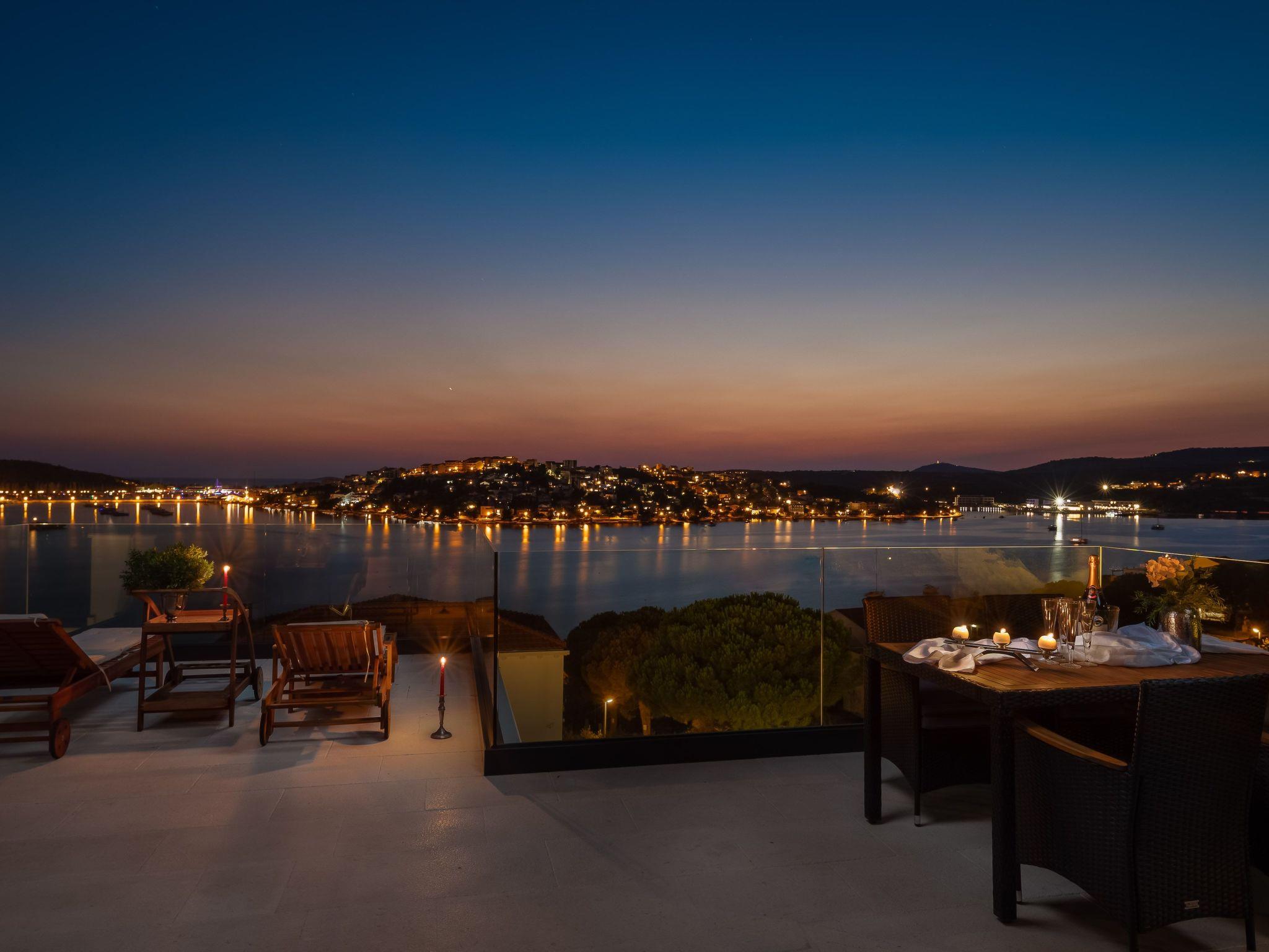 The west-facing villa guarantees unforgettable sunsets. The pictures with the unique panorama are ideal for posting. All rooms are with sea view, balcony, terrace and smart TV. The towns of Primosten & Marina Frappa can be reached in a few minutes. In Rogoznica you will find many nice bars & restaurants on the new promenade. It is only about 80 metres from the villa to the beach & sea.
