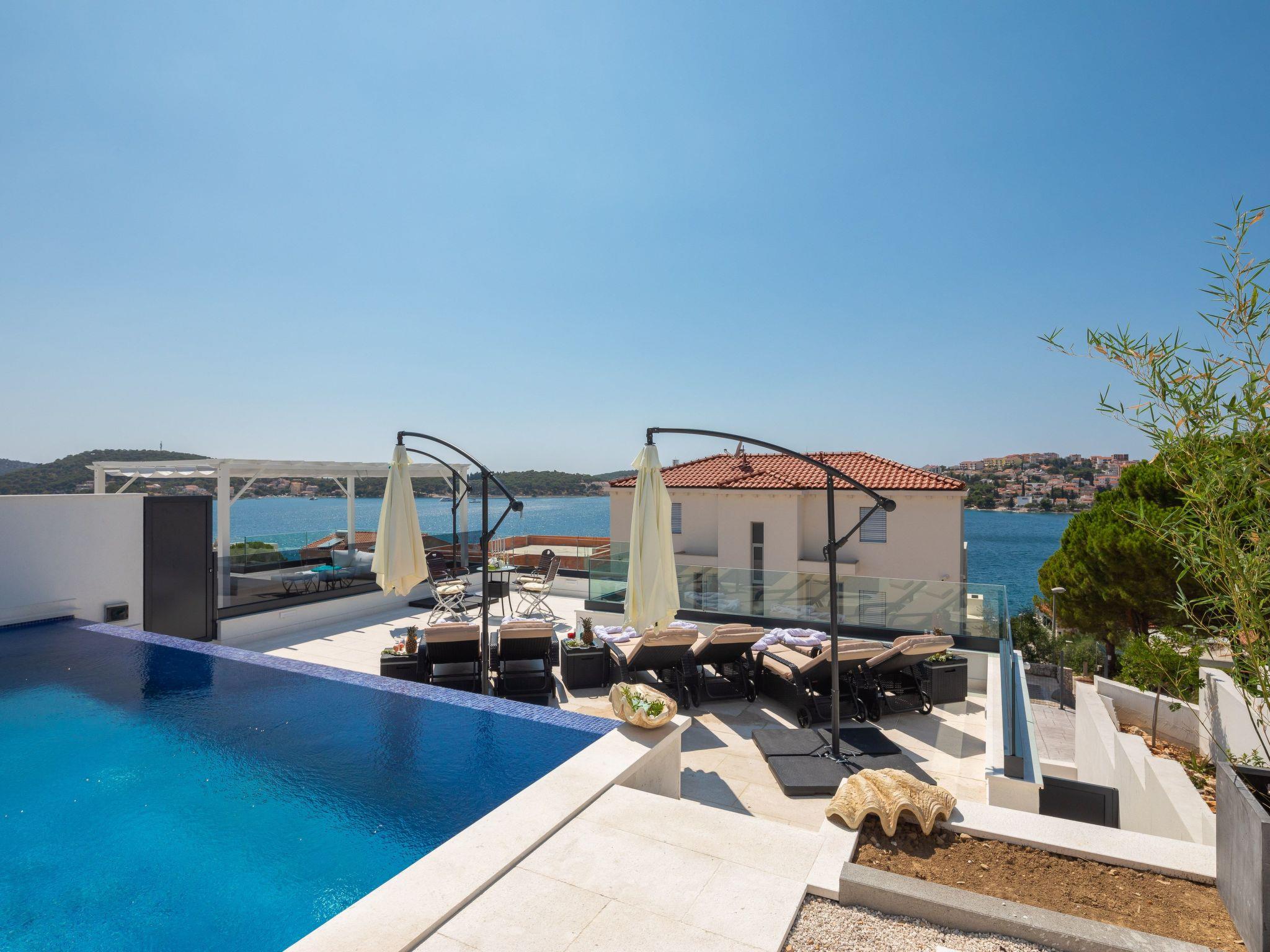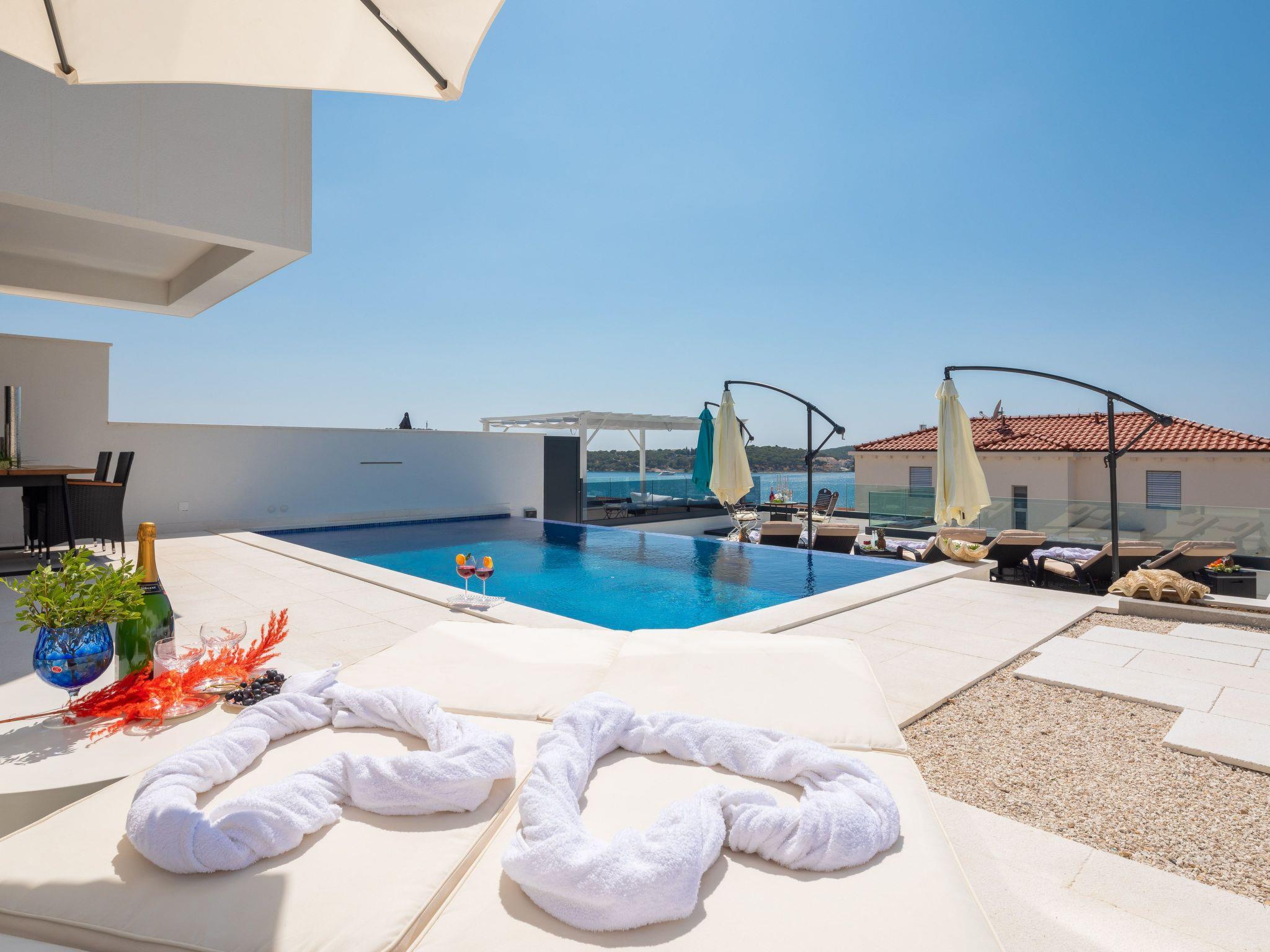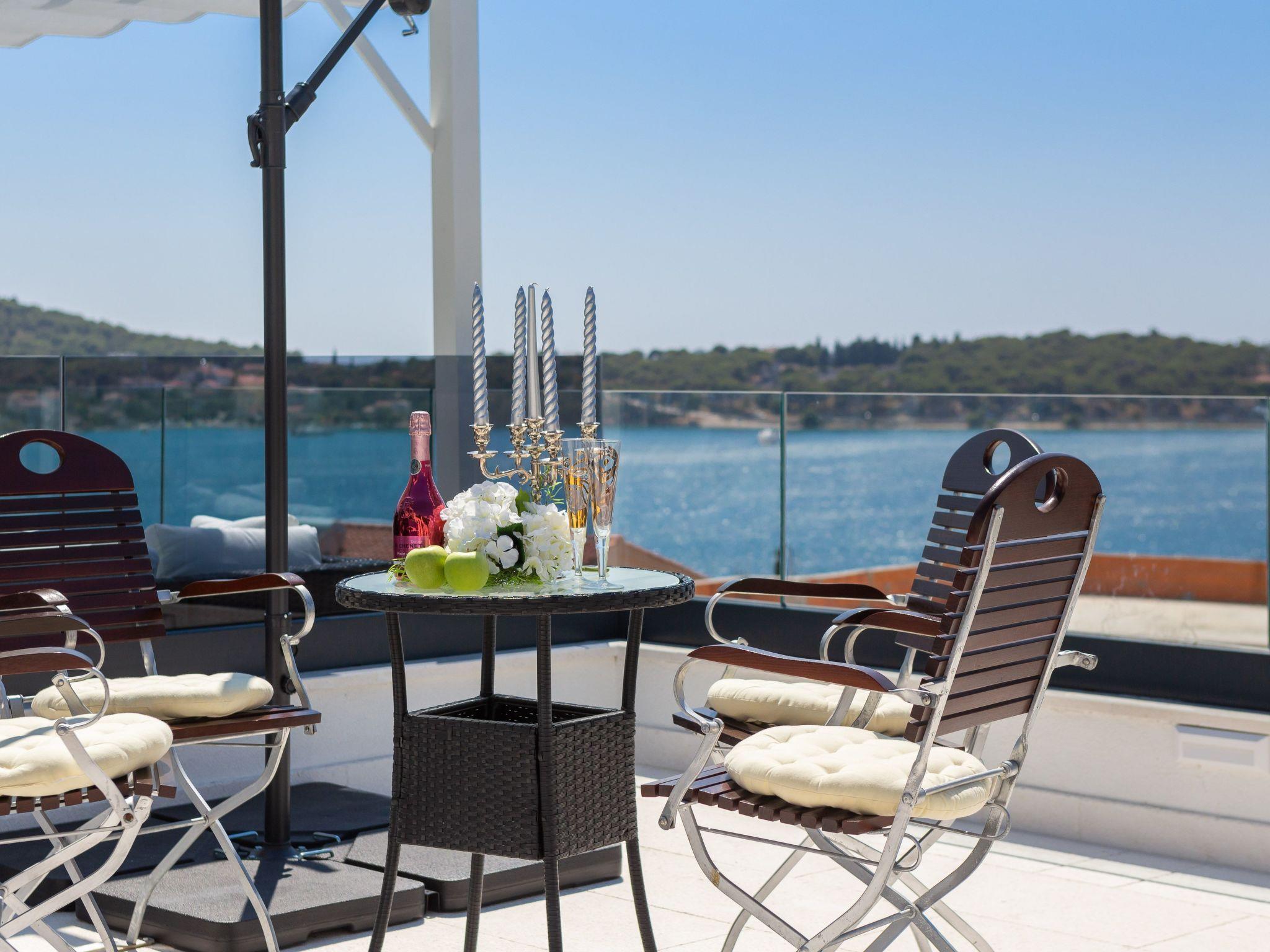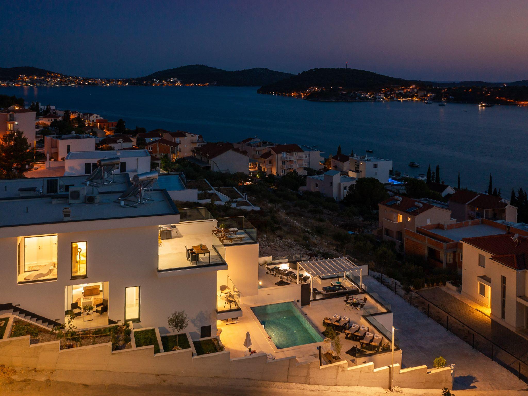 The west-facing villa guarantees unforgettable sunsets. The pictures with the unique panorama are ideal for posting. All rooms are with sea view, balcony, terrace and smart TV. The towns of Primosten & Marina Frappa can be reached in a few minutes. In Rogoznica you will find many nice bars & restaurants on the new promenade. It is only about 80 metres from the villa to the beach & sea.