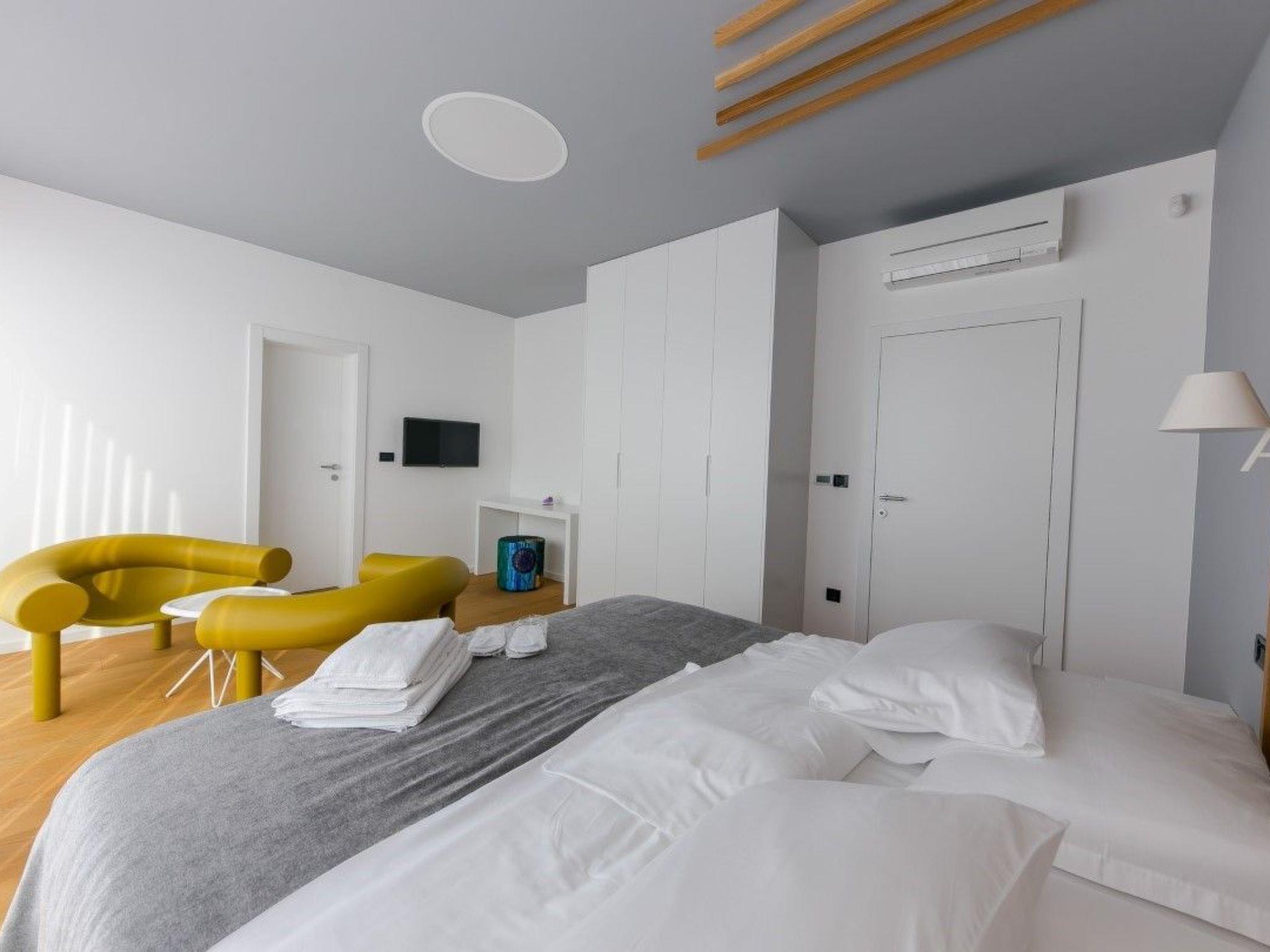 Four carefully designed and luxurious double bedrooms have private en-suite bathrooms, exits to the terraces, SAT-TV, and air-conditioning. In total, the villa can accommodate up to 8 guests. Delightful villa Korina is created for vacation and escape from reality. If you want to take your pets on vacation, it is possible with an extra charge.