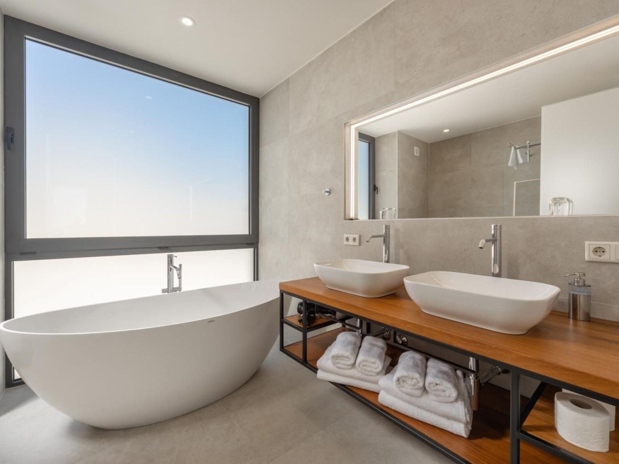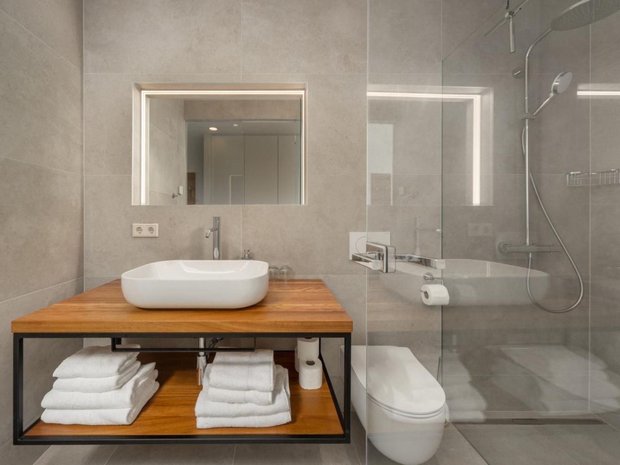 Each room has its own bathroom. The spacious interior is characterized by an open space concept and modern design, with luxurious furniture in neutral colors. On the ground floor, you can prepare meals in the luxurious, fully equipped kitchen or relax in the living room where there is also an attractive fireplace.
