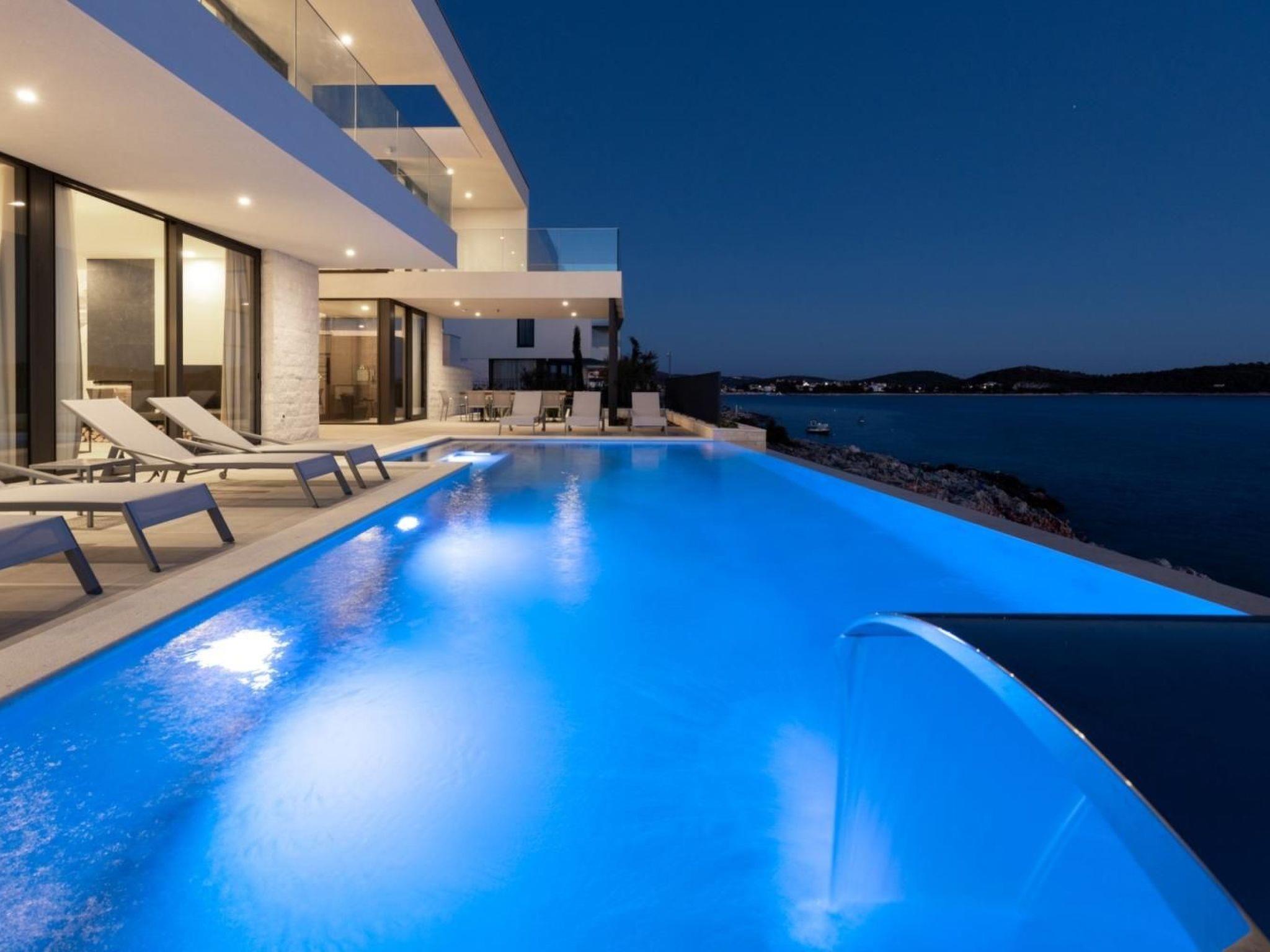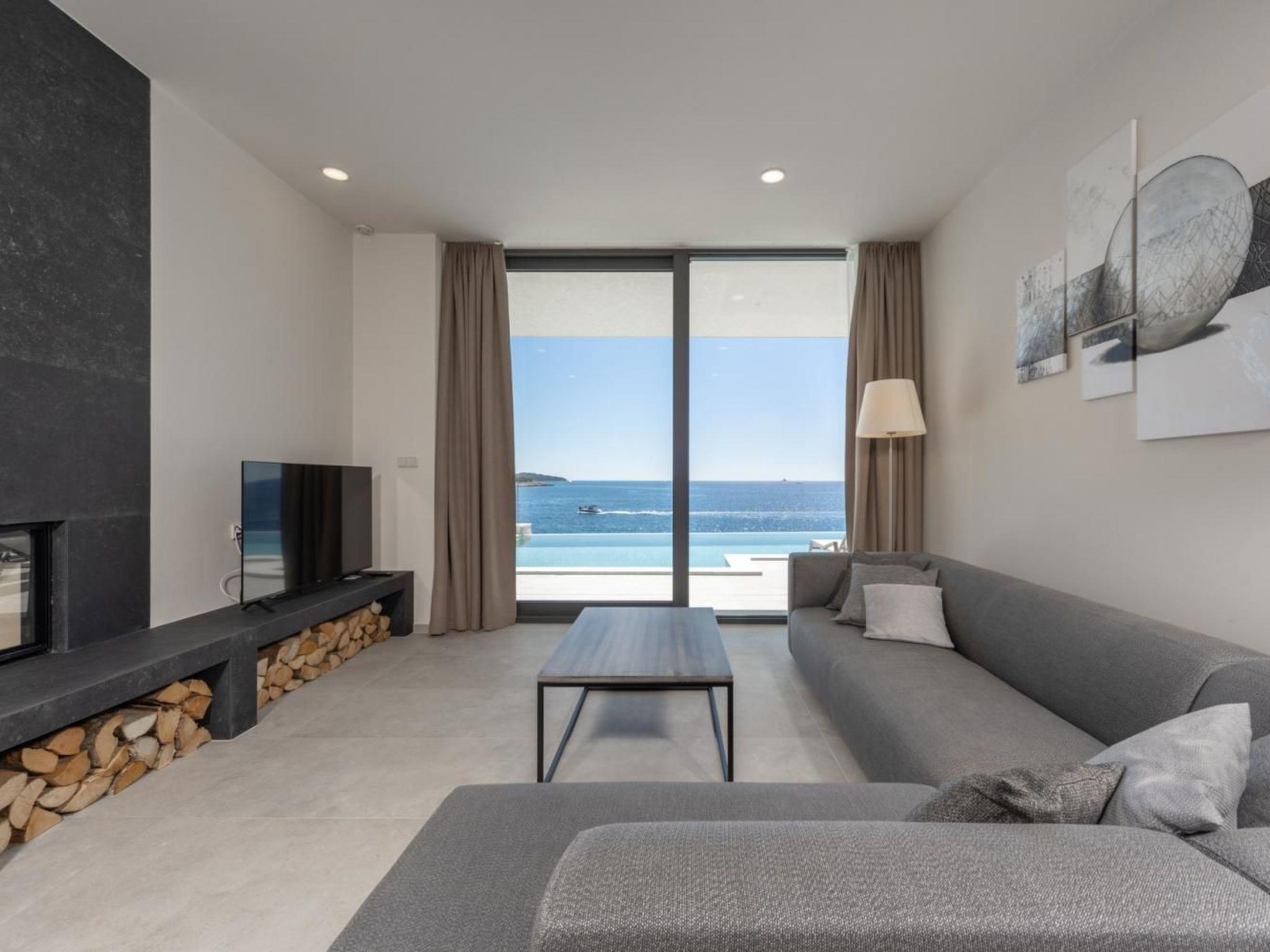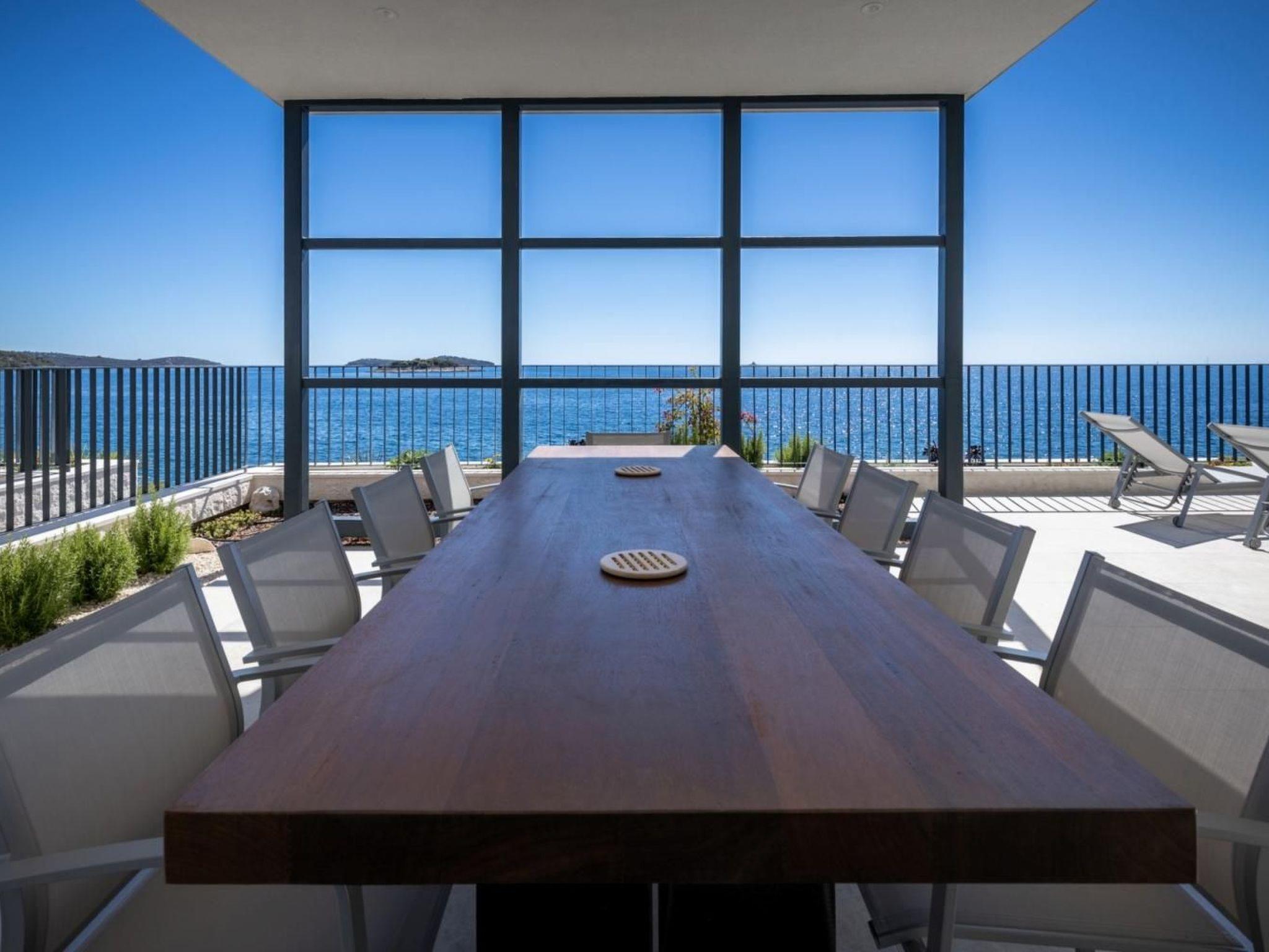 Exit to the terrace is possible directly from the living room, dining room and kitchen and outside you can relax on deck chairs by the pool with sea water, with a refreshing cocktail or cup of coffee, and family and friends in the outdoor dining room with a glass of wine and food prepared in traditional Dalmatian the chimney will be unforgettable.
