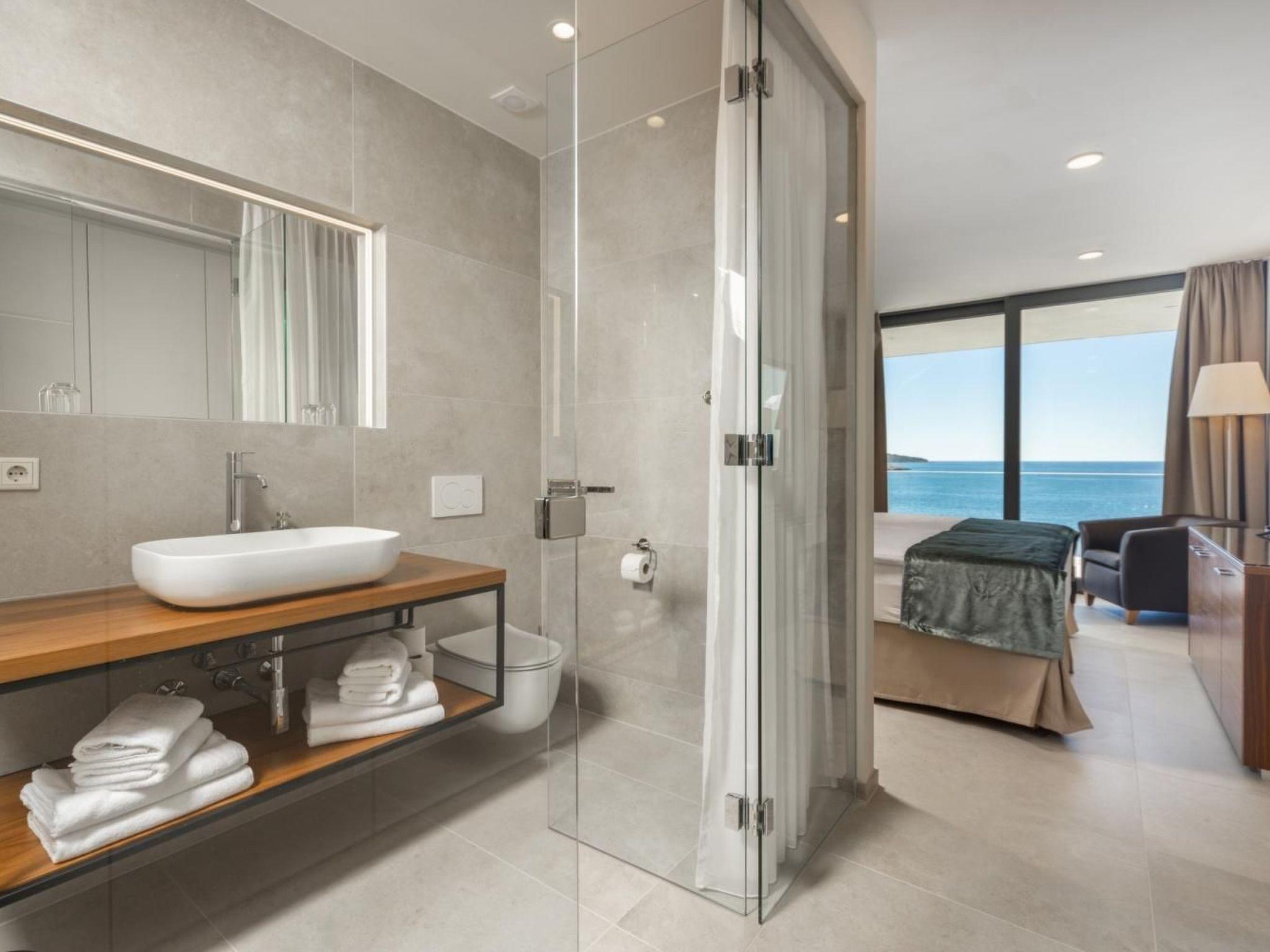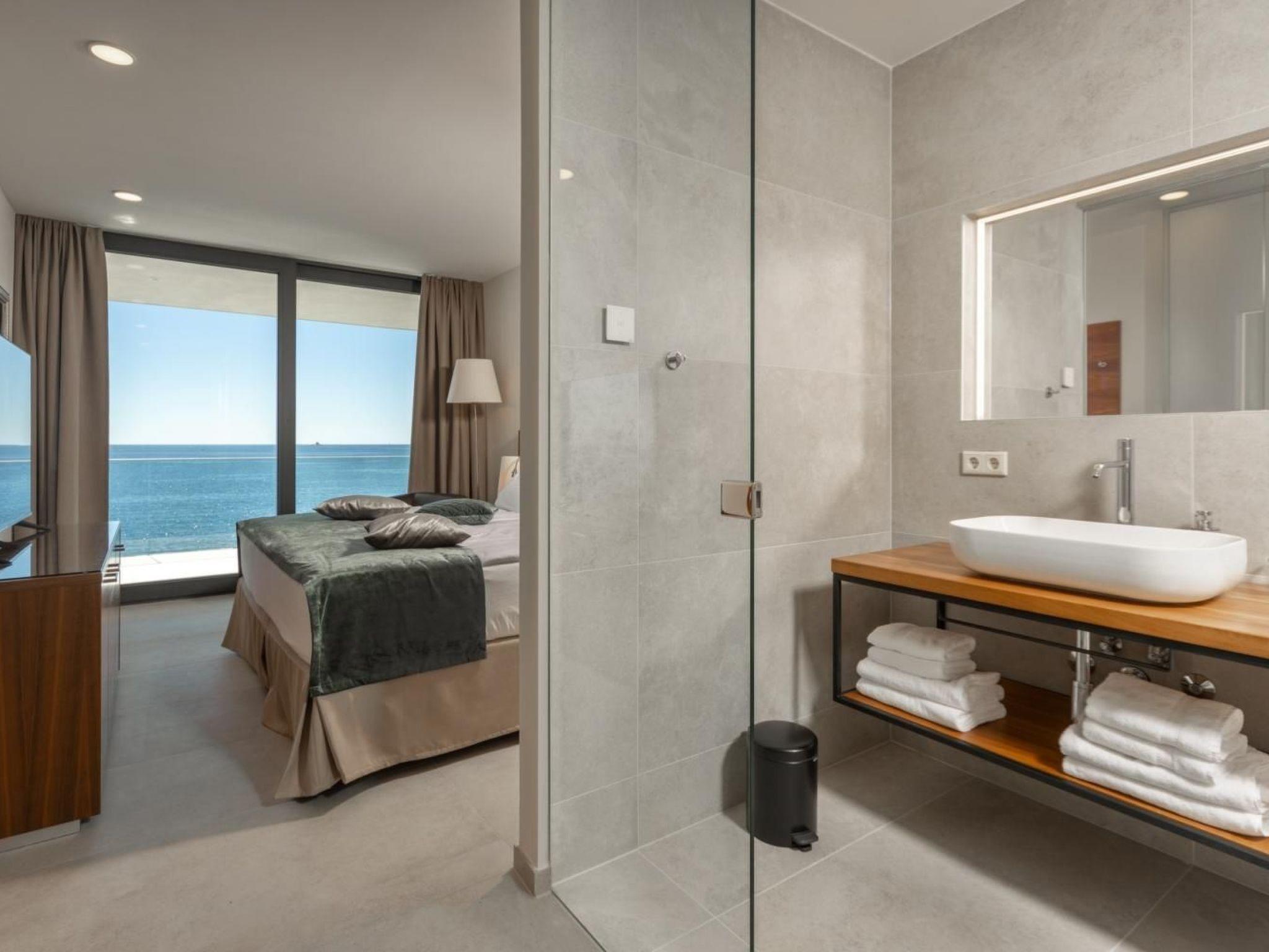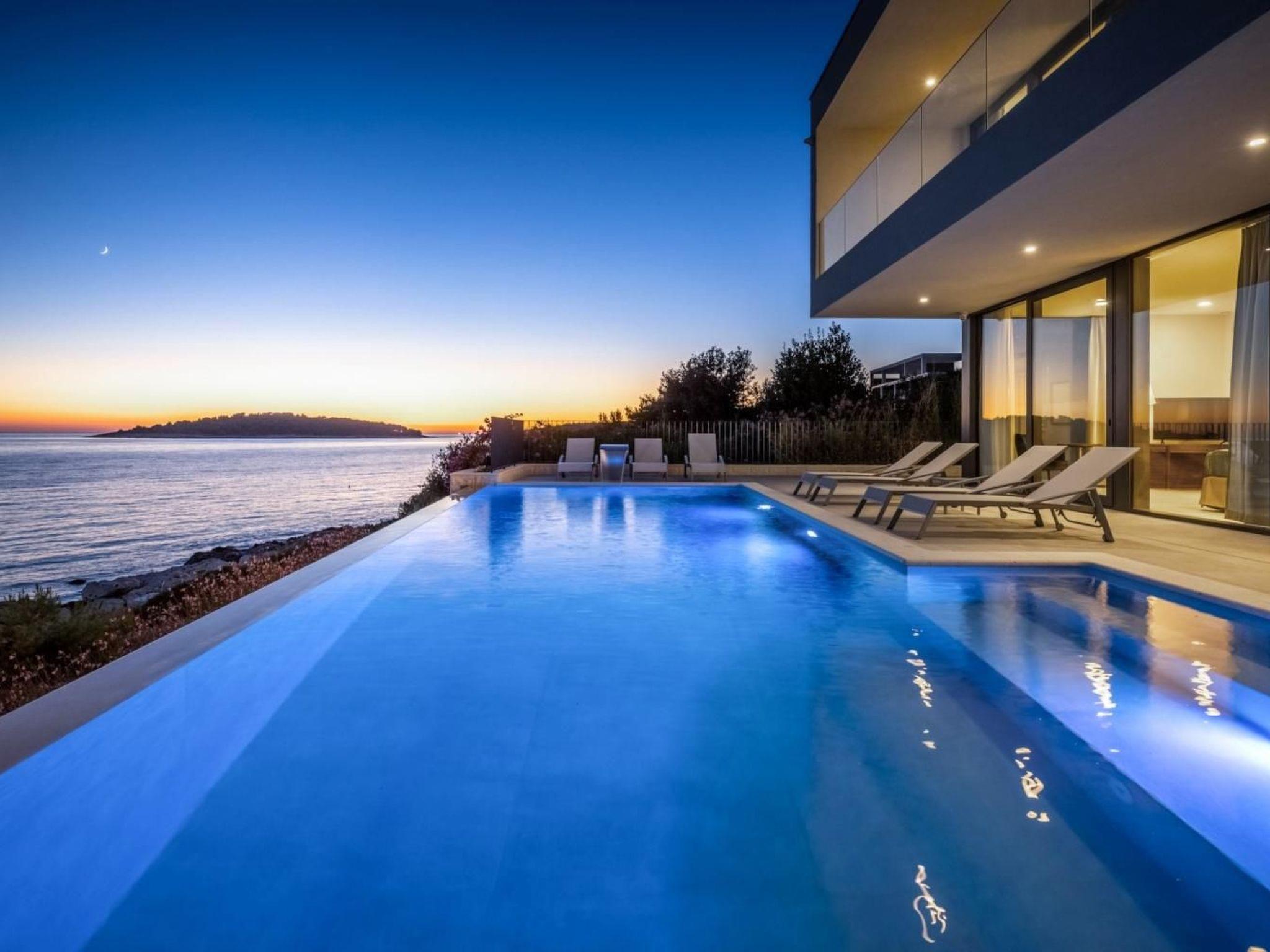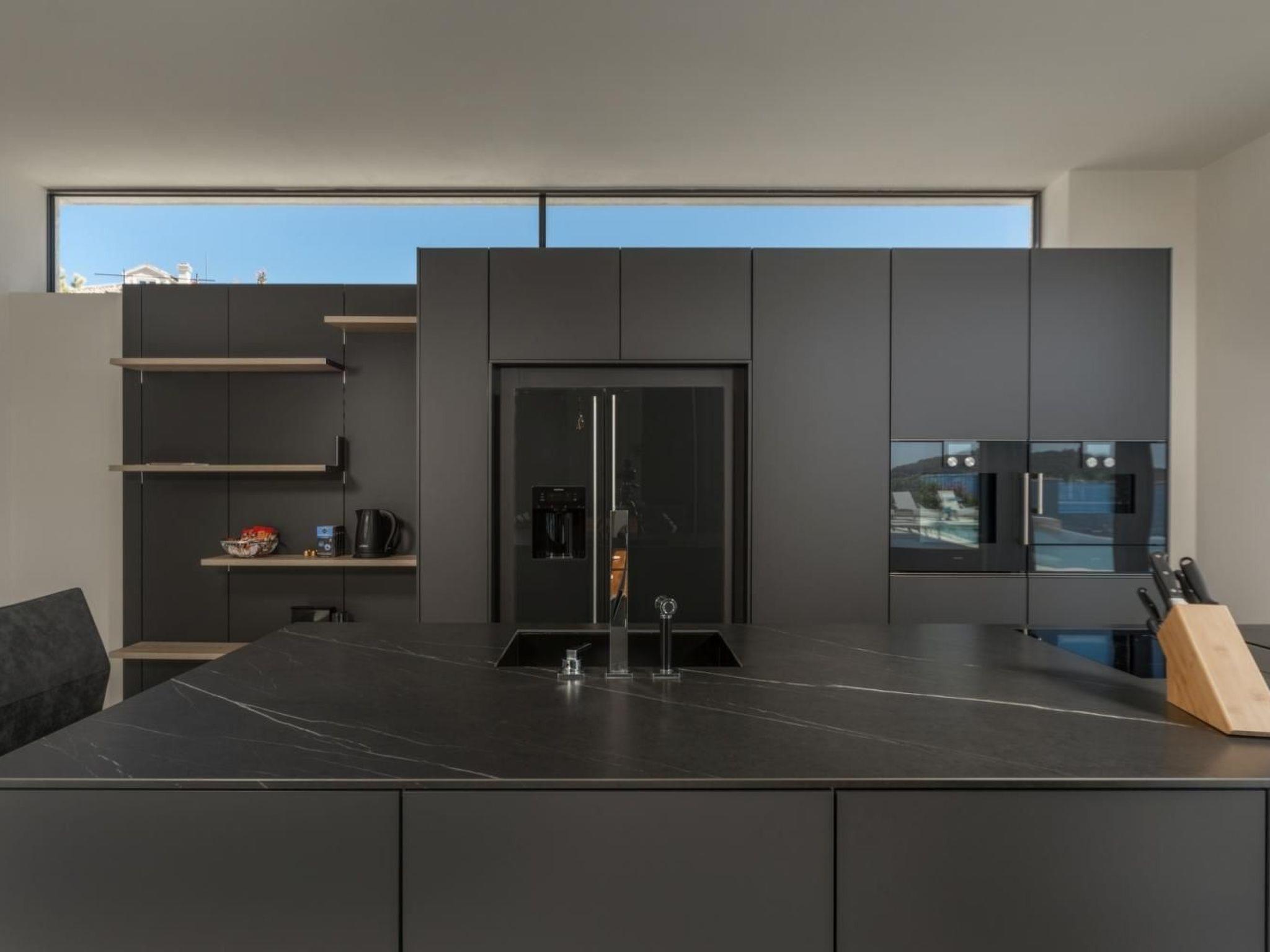 Exit to the terrace is possible directly from the living room, dining room and kitchen and outside you can relax on deck chairs by the pool with sea water, with a refreshing cocktail or cup of coffee, and family and friends in the outdoor dining room with a glass of wine and food prepared in traditional Dalmatian the chimney will be unforgettable.