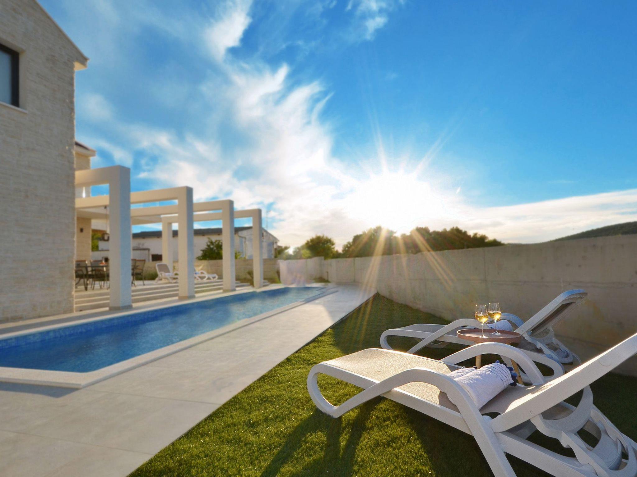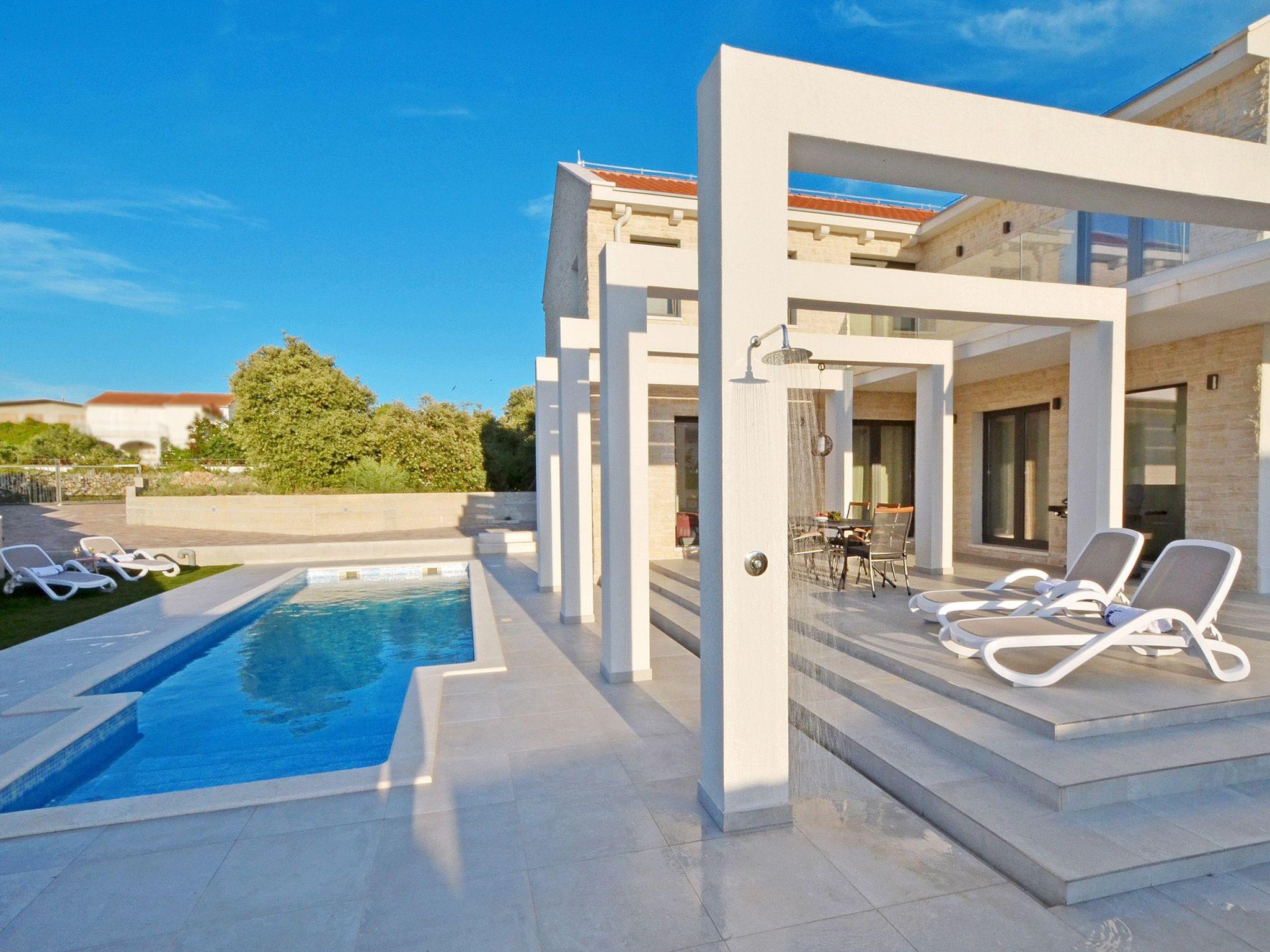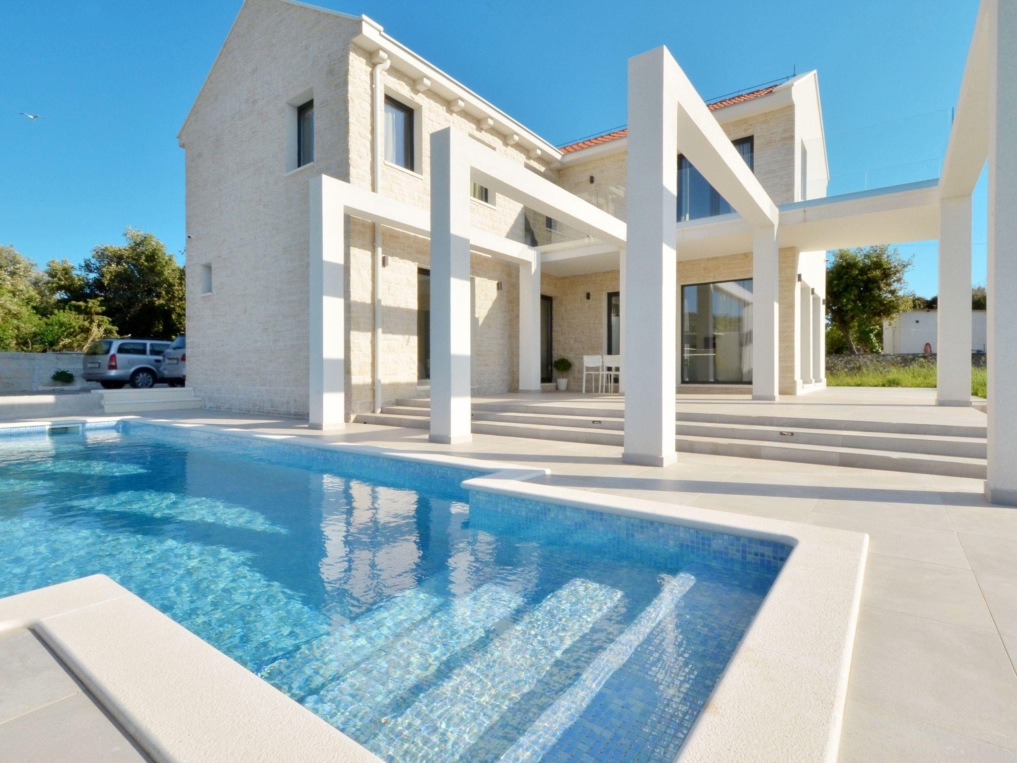 National park Krka is 50km far.Newly built Villa. 80m away from the beach, restaurants & grocery store. Perfect for families, fenced property.. Large pool & pivate parking inside the property.