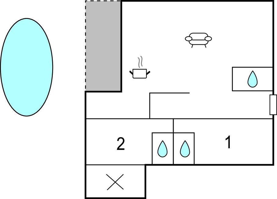 Opholdsstue/køkken 35m2 - 2 Sovepladser. (Sofa, madras eller lignende).