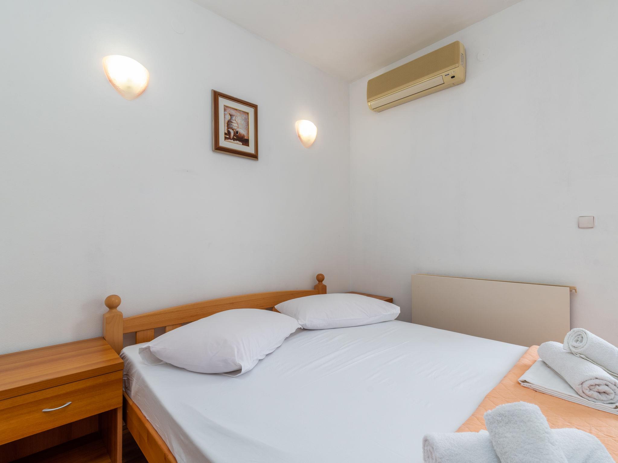 "Jerkan 11", 2-room apartment 22 m2 on 1st floor, south facing position. Living/dining room with 1 double sofabed (160 cm, length 200 cm), satellite TV (flat screen), air conditioning. Exit to the balcony. 1 room with 1 french bed (180 cm, length 200 cm), air conditioning. Exit to the balcony. Open kitchen (2 hot plates, kettle, freezer). Shower/WC. 2 balconies 4 m2. Balcony furniture. Very beautiful view of the sea. Facilities: hair dryer. Internet (WiFi, free).