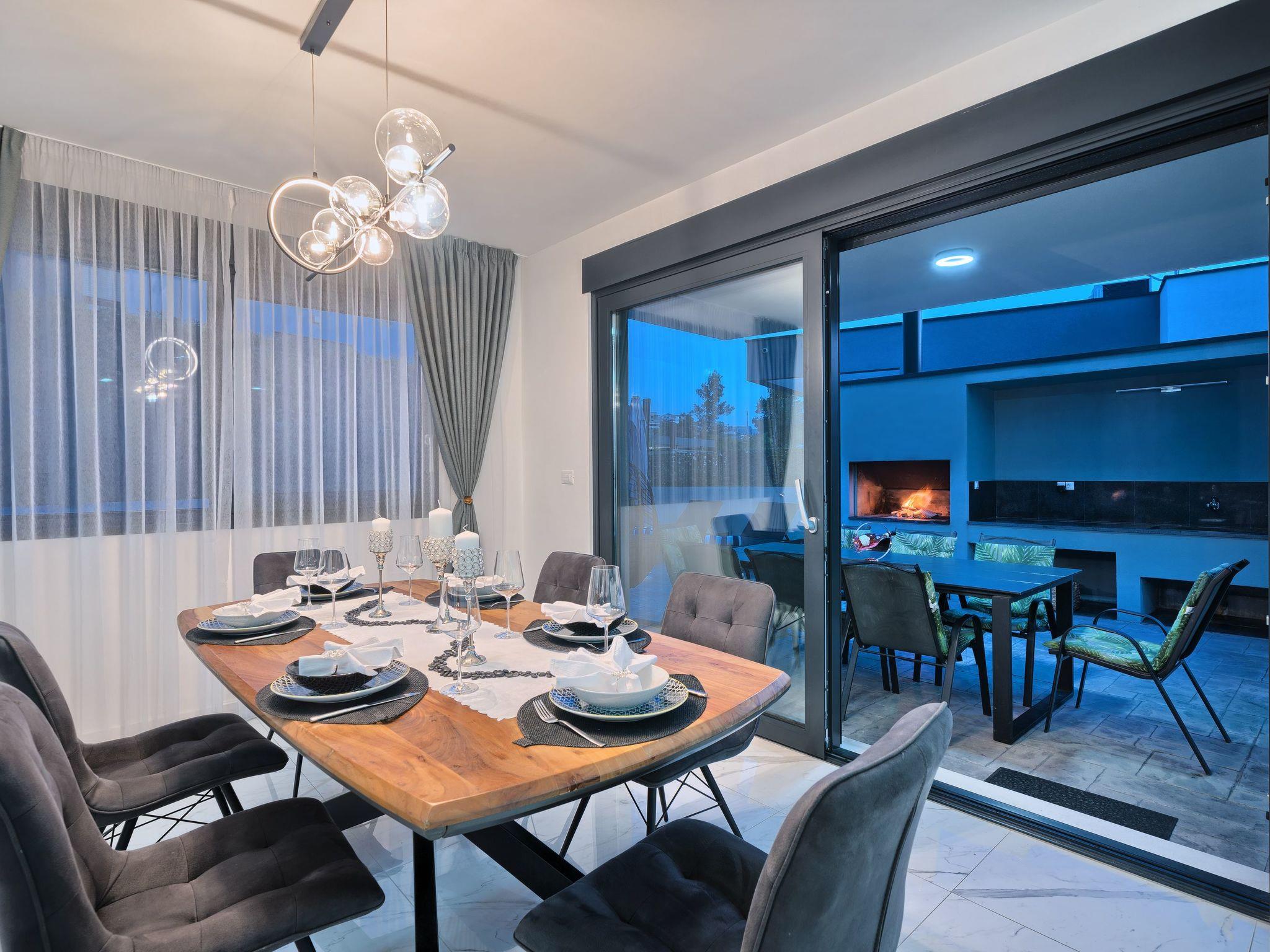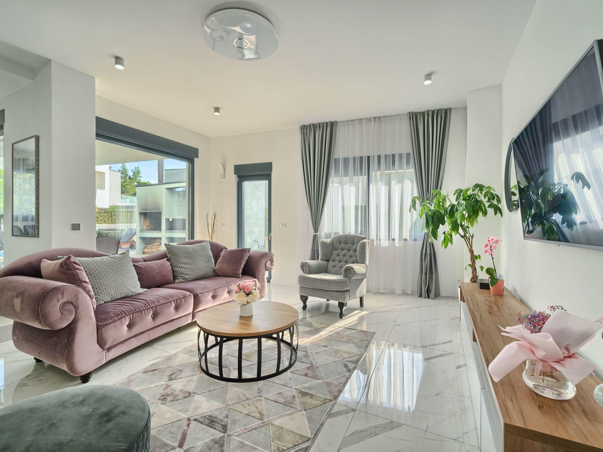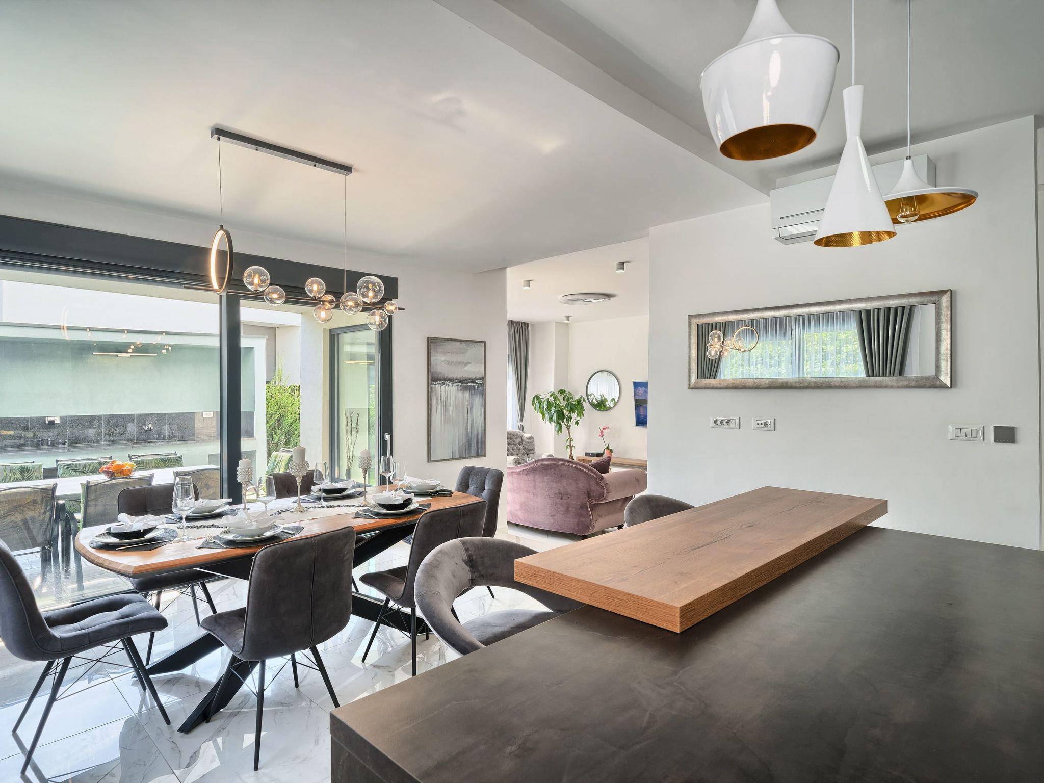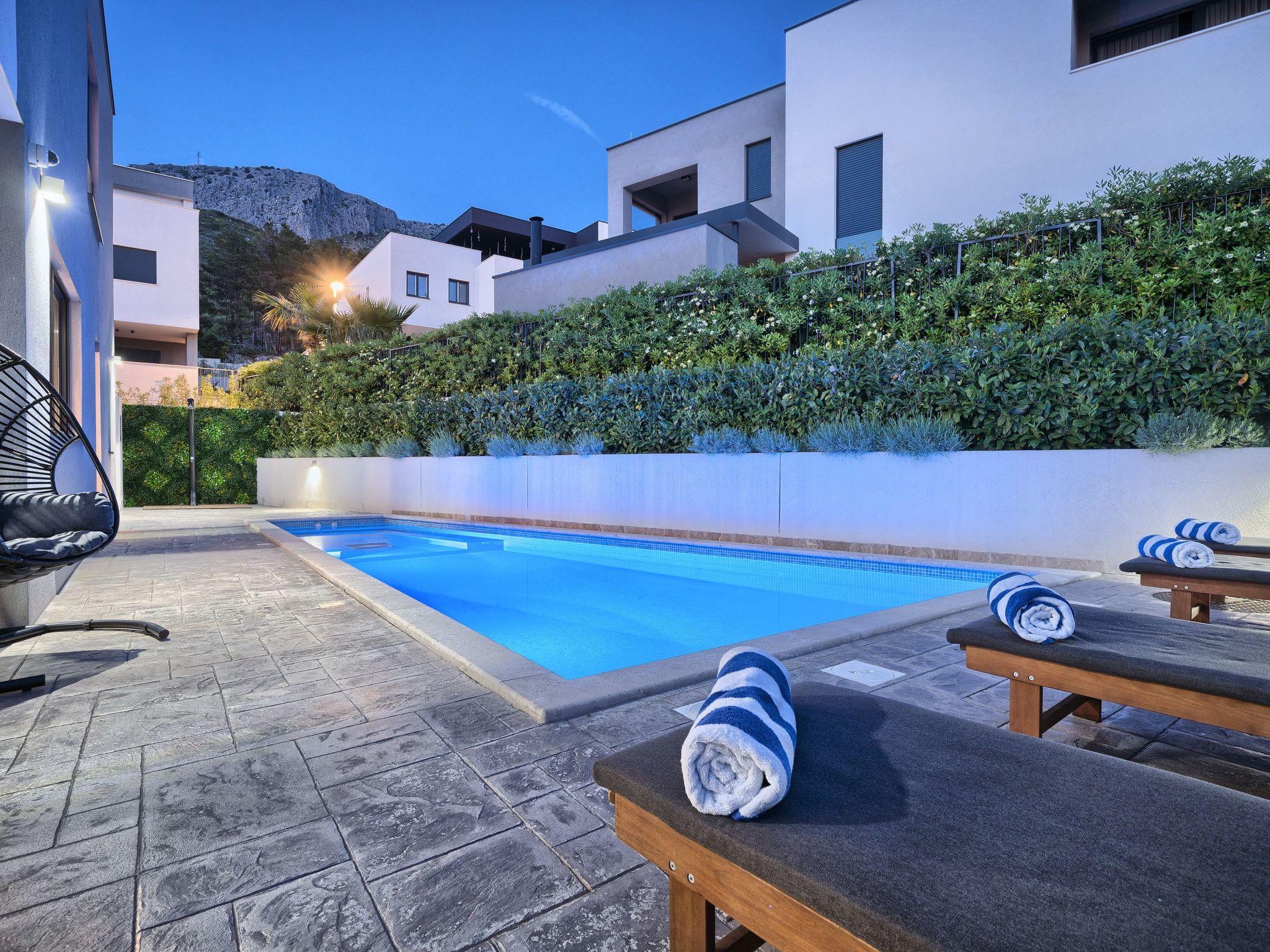 Featuring an outdoor heated swimming pool and a concierge service, Villa Celestial is situated conveniently in Podstrana, less than 0.6 miles from Sand Beach Strožanac and an 11-minute walk from Strožanac North Beach.This villa features a garden, barbecue facilities, free WiFi and free private parking.The property has 230m2 and consists of two floors. It is ideal for 6 (+1) persons. It consists of three bedrooms and all three bedrooms are equipped with a double beds (180×200cm).The villa consists of 3 separate bedrooms, 4 bathrooms and a living room.The villa offers a terrace. Popular points of interest near the accommodation include Strožanac South Beach, Tourist Board Podstrana and Strozanac Port. The nearest airport is Split, 16.2 miles from Villa Celestial, and the property offers a paid airport shuttle service.Short descriptionOther : Non-smoking houseShort description 1Number of kitchens : 1Garden and outdoorGarden facilities : GrillOn-site leisure facilities : Basin, Outdoor swimming pool exclusive use, Swimming poolService benefits 1Other : Samostalna prijava dostupna na zahtjev.Outside area: Balcony; Garages; Grill; Parking spaces: 1; Private parking space; Private swimming pool; Terrace; Veranda;House information: 2nd double bed; Bathrooms: 4; Bedroom; Property area: 400 m²; Year of renovation: 1;Living area: Cable-tv; Fireplace; Sleeping sofa; TV;Bath/WC: Hairdryers; Shower; Toilet;Kitchen: 2 plate stove; Coffee machine; Dishwasher; Electric stove; Freezer; Freezer; Fridge; Microwave; Oven; Stove; Toaster; Water boiler;Other: Air conditioning; Floor heating; Heating; Non-smoking object; Vacuum cleaner; Washing machine; Wifi all-inclusive package;Distances (linear, approx.): Distance to airport: 25,00 km;Short descriptionOther : Non-smoking houseGarden and outdoorGarden facilities : GrillOn-site leisure facilities : Swimming pool