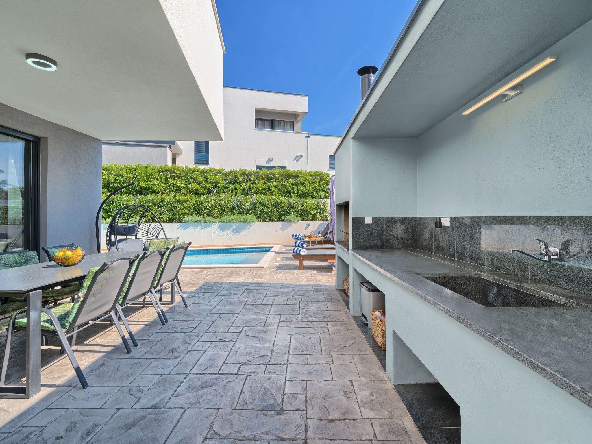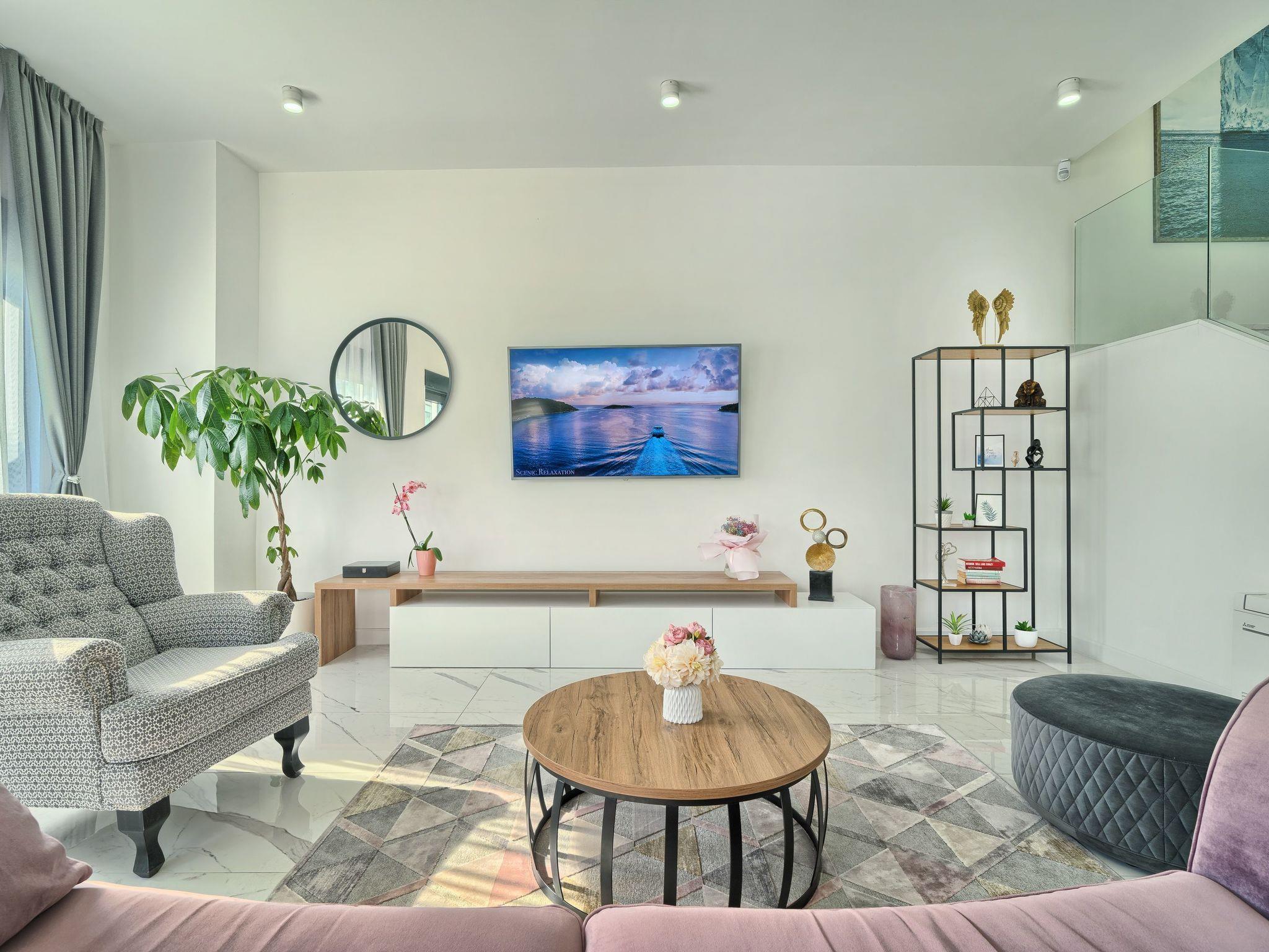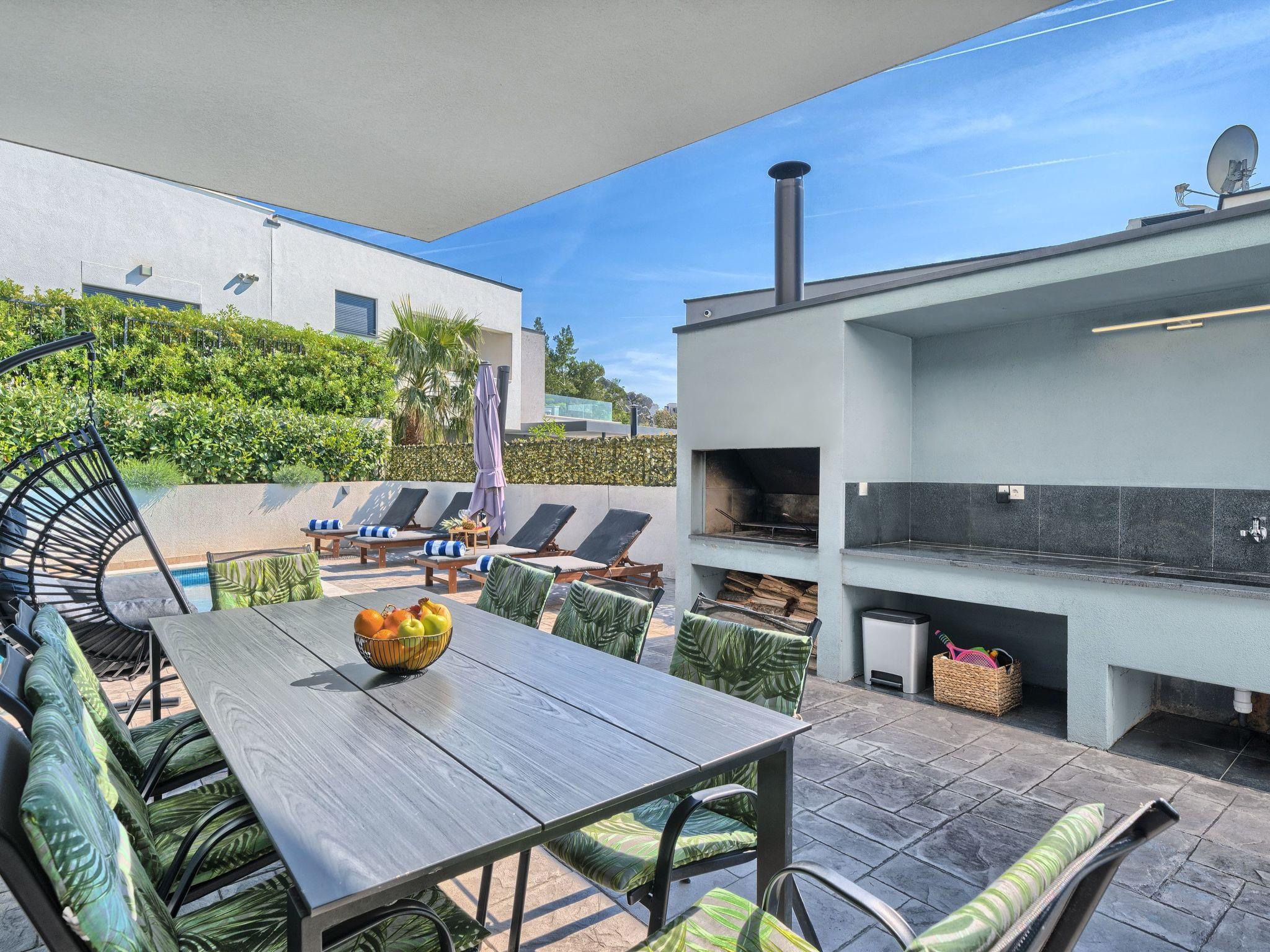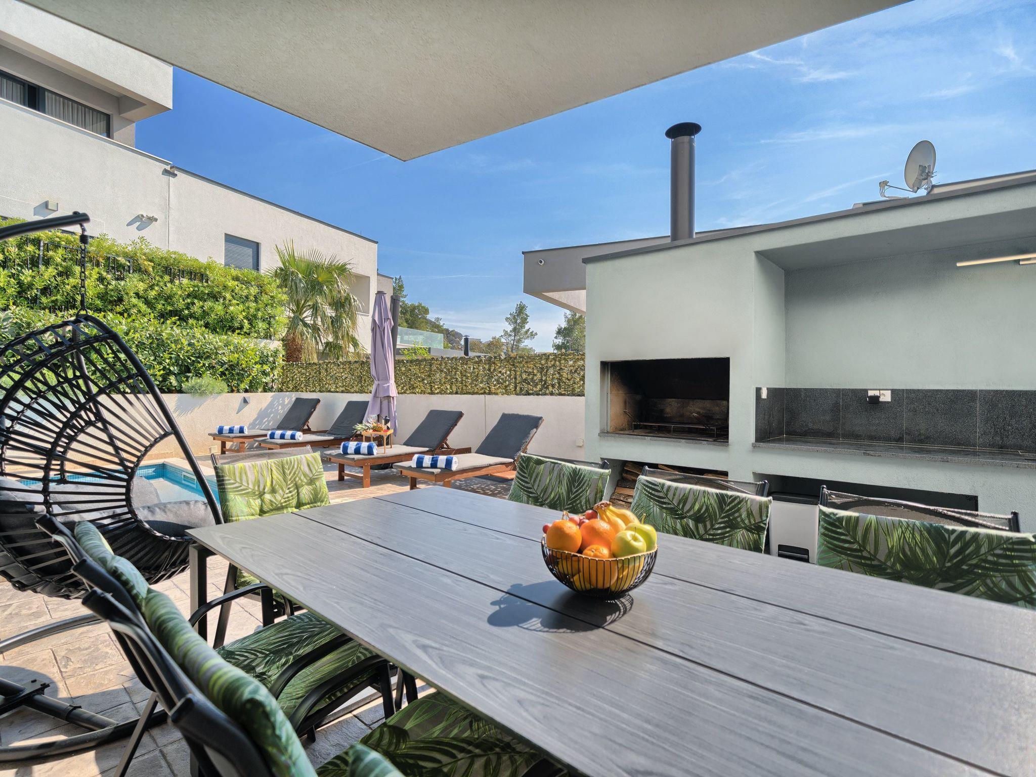Featuring an outdoor heated swimming pool and a concierge service, Villa Celestial is situated conveniently in Podstrana, less than 0.6 miles from Sand Beach Strožanac and an 11-minute walk from Strožanac North Beach.This villa features a garden, barbecue facilities, free WiFi and free private parking.The property has 230m2 and consists of two floors. It is ideal for 6 (+1) persons. It consists of three bedrooms and all three bedrooms are equipped with a double beds (180×200cm).The villa consists of 3 separate bedrooms, 4 bathrooms and a living room.The villa offers a terrace. Popular points of interest near the accommodation include Strožanac South Beach, Tourist Board Podstrana and Strozanac Port. The nearest airport is Split, 16.2 miles from Villa Celestial, and the property offers a paid airport shuttle service.Short descriptionOther : Non-smoking houseShort description 1Number of kitchens : 1Garden and outdoorGarden facilities : GrillOn-site leisure facilities : Basin, Outdoor swimming pool exclusive use, Swimming poolService benefits 1Other : Samostalna prijava dostupna na zahtjev.Outside area: Balcony; Garages; Grill; Parking spaces: 1; Private parking space; Private swimming pool; Terrace; Veranda;House information: 2nd double bed; Bathrooms: 4; Bedroom; Property area: 400 m²; Year of renovation: 1;Living area: Cable-tv; Fireplace; Sleeping sofa; TV;Bath/WC: Hairdryers; Shower; Toilet;Kitchen: 2 plate stove; Coffee machine; Dishwasher; Electric stove; Freezer; Freezer; Fridge; Microwave; Oven; Stove; Toaster; Water boiler;Other: Air conditioning; Floor heating; Heating; Non-smoking object; Vacuum cleaner; Washing machine; Wifi all-inclusive package;Distances (linear, approx.): Distance to airport: 25,00 km;Short descriptionOther : Non-smoking houseGarden and outdoorGarden facilities : GrillOn-site leisure facilities : Swimming pool