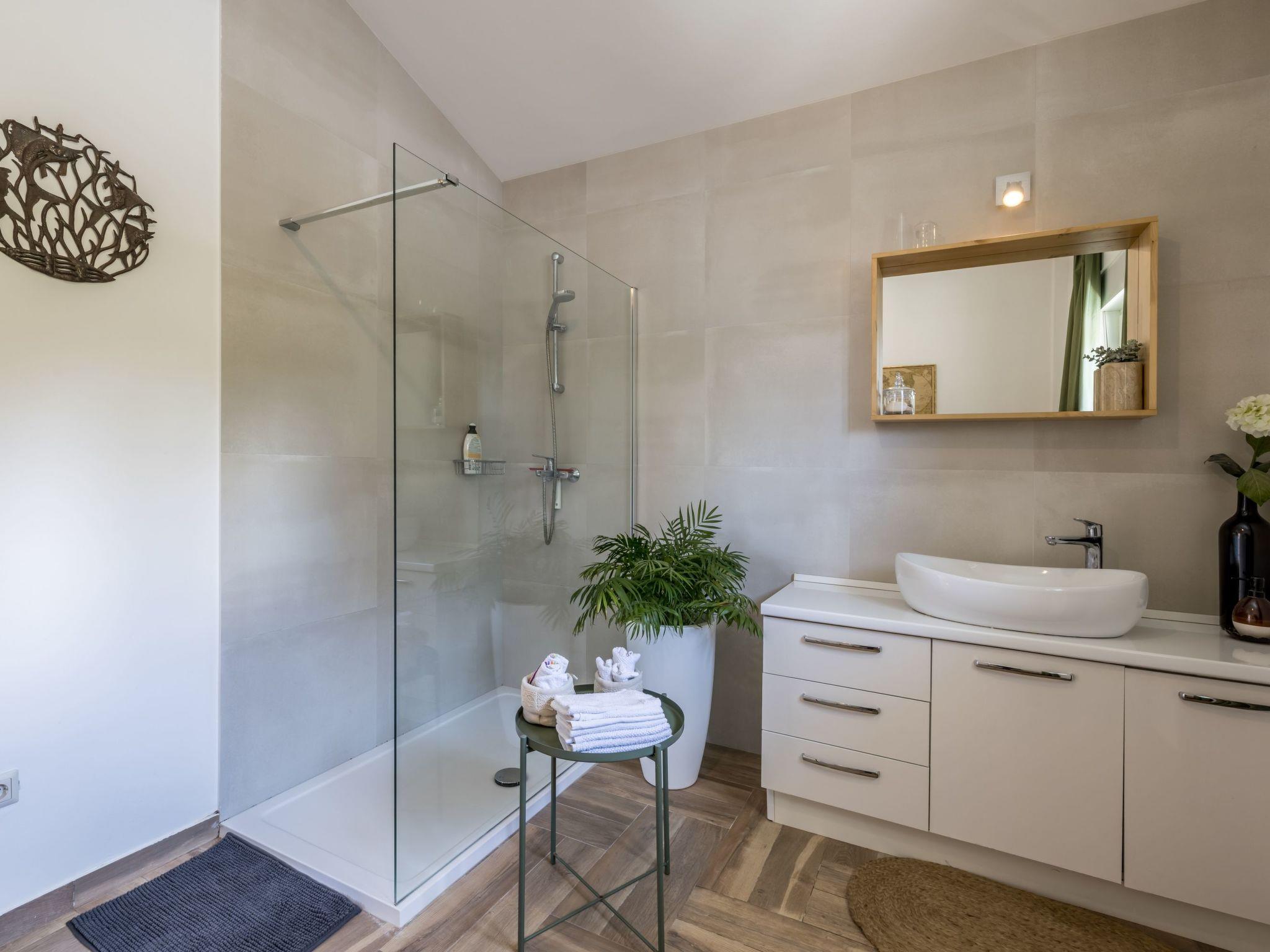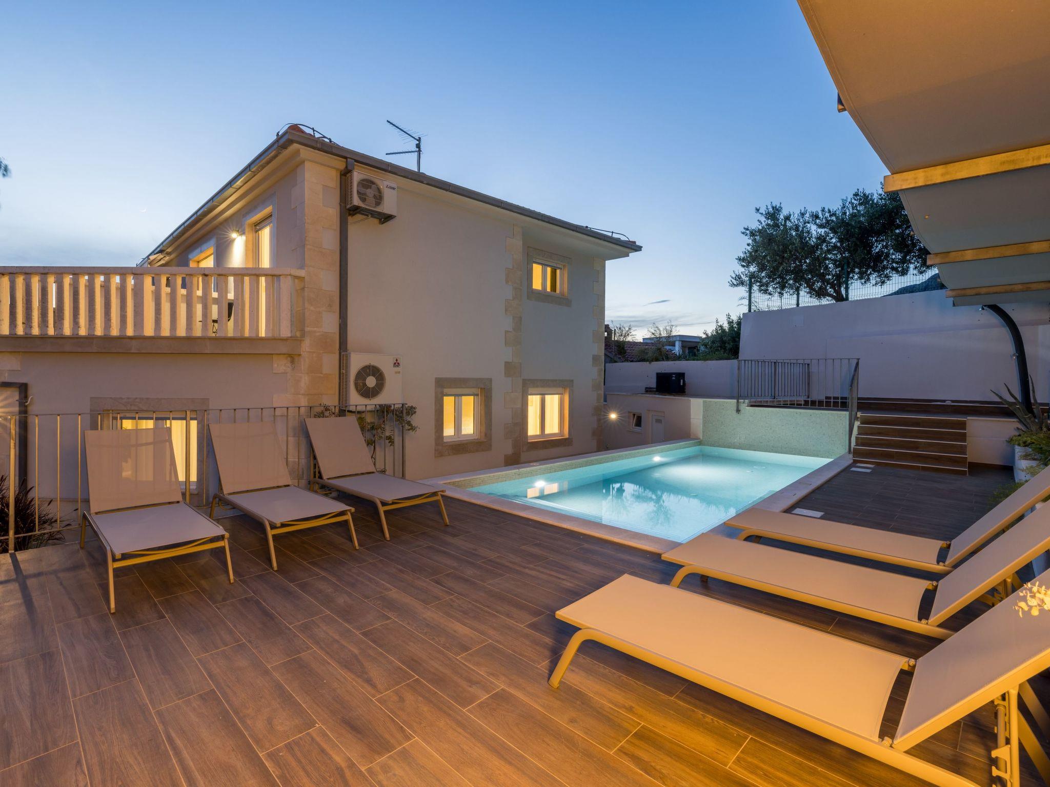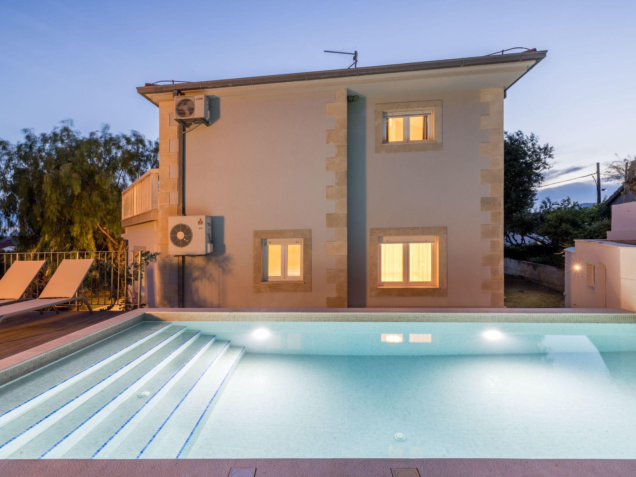Villa Artea offers a perfect blend of contemporary and antique, fusion of traditional and modern to provide luxurious and relaxing surroundings for the best vacation you could ever have! With four spacious bedrooms and two modern bathrooms, this villa can easily accommodate up to 8 guests. Big open space living area with adjoining dining area and fully equipped kitchen offers all the luxury you can expect from a modern villa, set up in a wonderful modern Mediterranean style. The villa offers a tastefully decorated modern interior which is packed with luxurious features and facilities. The high quality furniture and amenities, the lush exterior and the unbelievable views of the crystal clear sea will not fail to create a comfortable and relaxing environment for you. Sit back and enjoy panoramic views of the surrounding countryside in the shady covered outdoor lounge and dining area that adjoin the house to your own exquisite swimming heated pool. The interior of the villa is exceptionally designed, ready to offer you a memorable holiday. You are sure to find it stylish and spacious, as it spreads over 170 sq.m. in two floors. Majority of the ground floor is made into a cozy living room area, equipped with a TV set and other gadgets, and a big library, so staying here will truly make you feel at home. The comfy sofa (that can be made into an additional bed for 2) and the overall aura of the space with plenty of sunlight will definitely allow you to relax. Kitchen: The kitchen of the villa is fully equipped and yours to use at all times. Kitchenware and various appliances (fridge, cooker, microwave oven, dishwasher, coffee machine, toaster, water boiler etc.) will be at your disposal and the separate pantry room will certainly give you enough space to prepare your favorite meals. The stairs leading to the first floor takes you to the bedrooms area, there are 3 of them with comfortable large beds, and own ac-units to provide you with highest level of comfort. There is also a private balcony in each room, overlooking the sea. All bedrooms are very spacious and homey and master bedroom is equipped with own TV. Last bedroom is located on the ground floor next to the bathroom also equipped with large comfortable bed . Extras: Additionally to a large and luxurious bathroom, upstairs you will also find a large walk in closet, an office space and a separate laundry room.