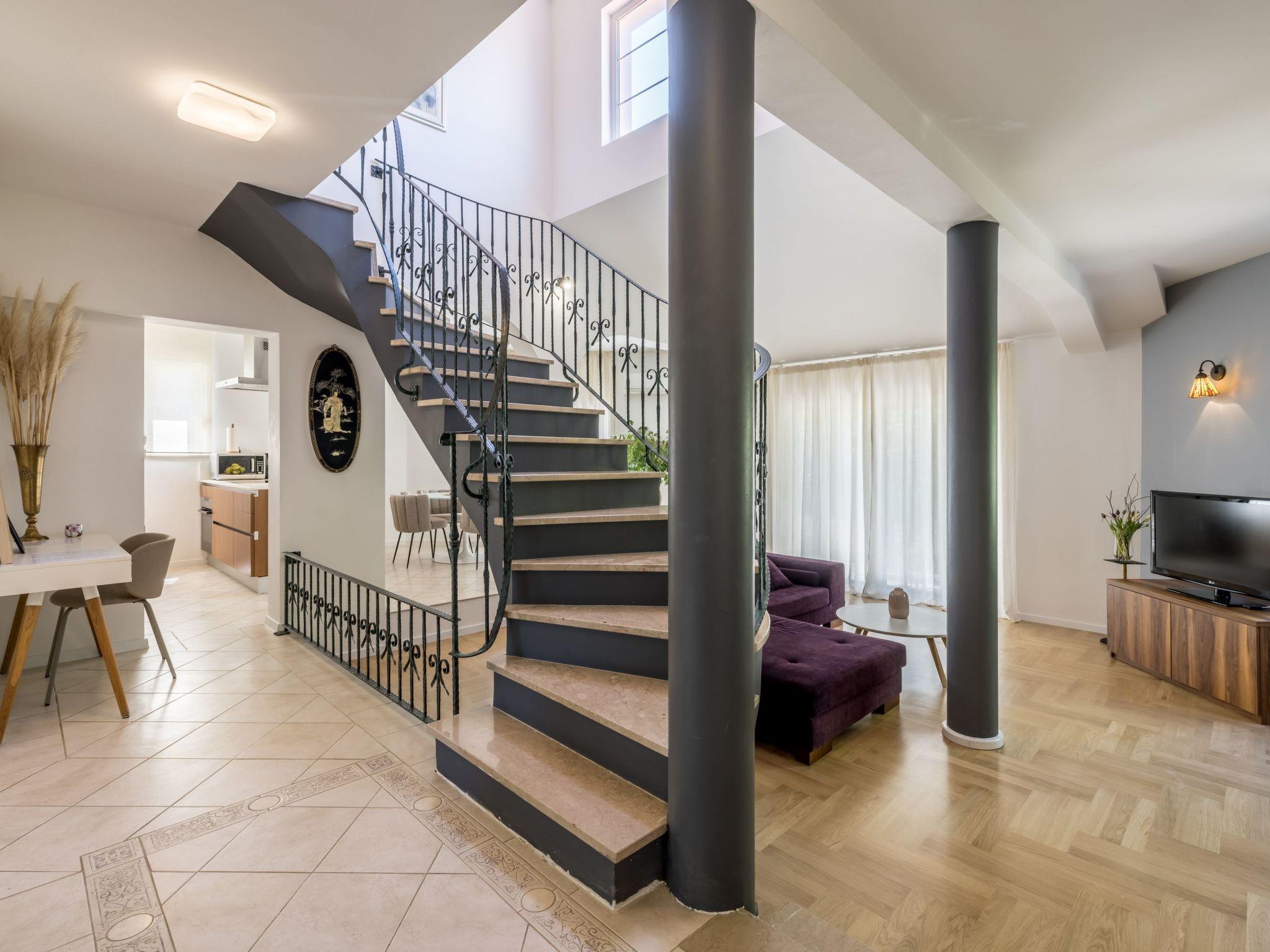 They feature the epicenter of life in the summer months and have been designed accordingly, throughout large and beautifully maintained garden. Apart from the carefully curated planted area all around the house, you will find a private swimming pool surrounded with wooden deck and comfortable sunbeds where you can relax during the day. And in the evening enjoy your drink and dinner at the al fresco dining area and kitchen. An outdoor shower facility is available, as well as a bbq and wood oven. We also have a private garage and additional space for 2 cars in front of the property.
