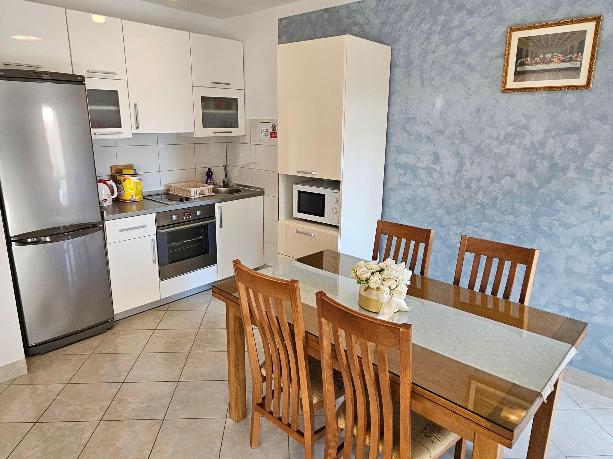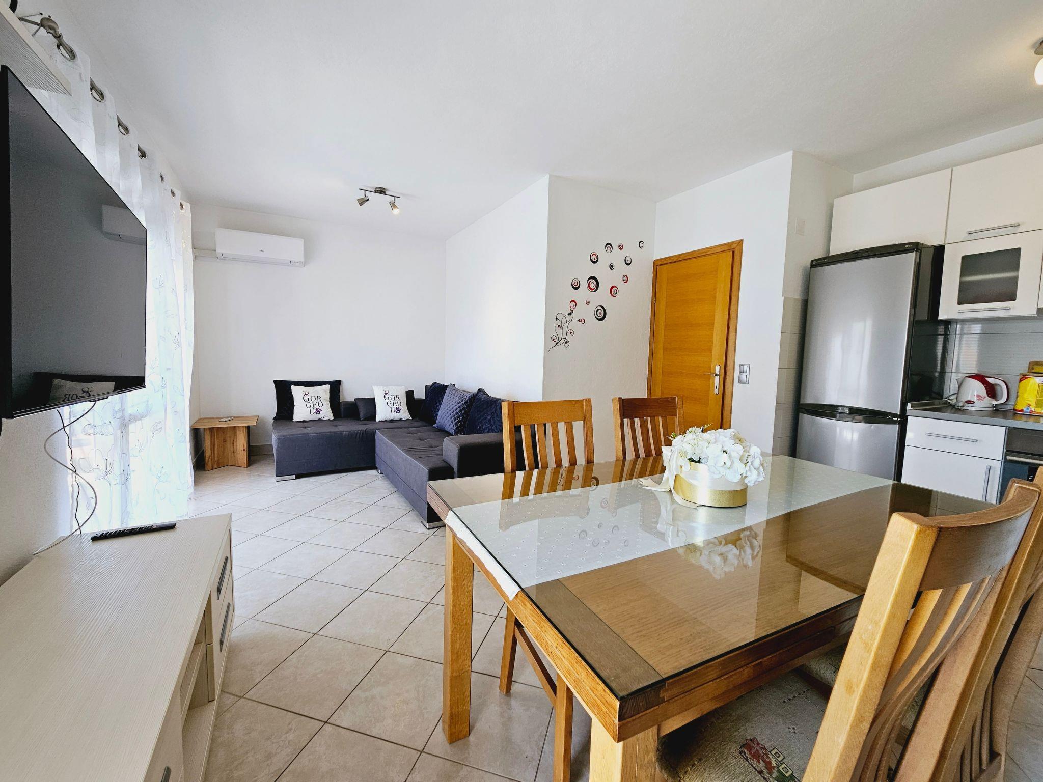 The nearest grocery store and a pizzeria restaurant are 400 meters from the apartments. Within a radius of 600 meters there are various types of beaches and Hotel Le Meridien. The apartment is only nine kilometers from the historic center of Split and Diocletian's Palace, ideal for day trips to visit world-famous cultural and historical heritage sites