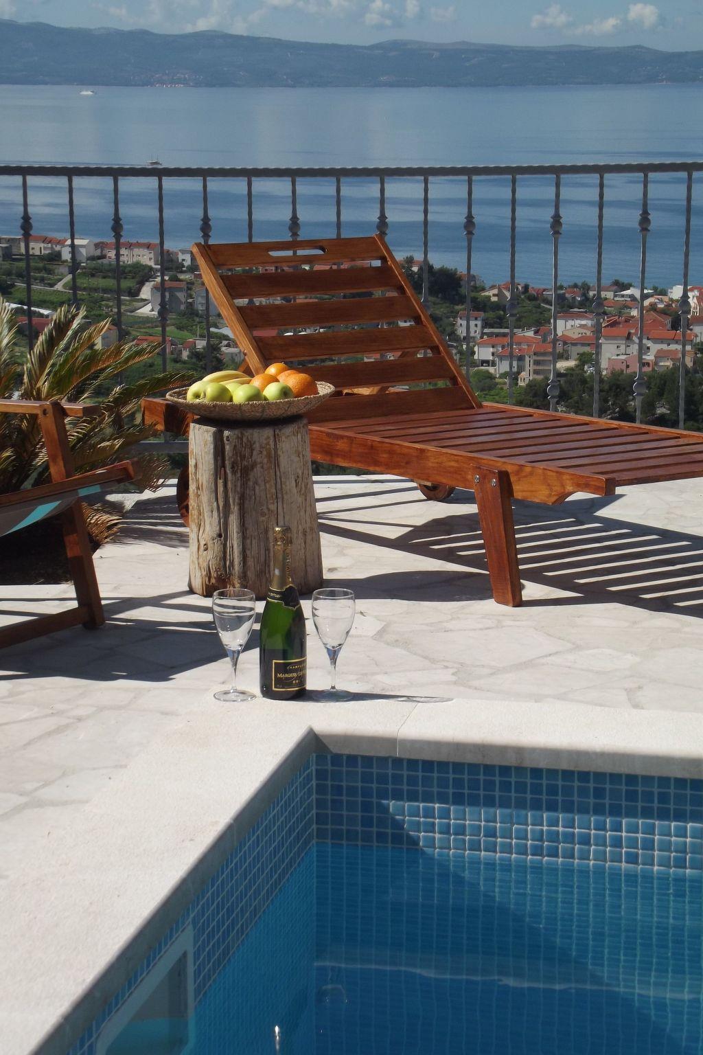 This exclusive holiday villa is nestled in the hilly landscape above the long beach and romantic harbor of the town of Podstrana, along the blue Adriatic coast in sunny southern Croatia. Here, you can enjoy a relaxing holiday in idyllic surroundings and with plenty of privacy. This fenced, recently built (2010) holiday villa offers panoramic sea views from its private pool, which can be illuminated at night, with an outdoor shower, and an in-house fitness and games room with a pool table. Please note: the pool is only available from June 15th to September 15th.
