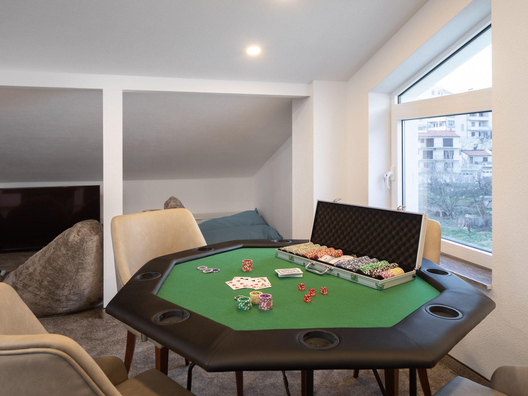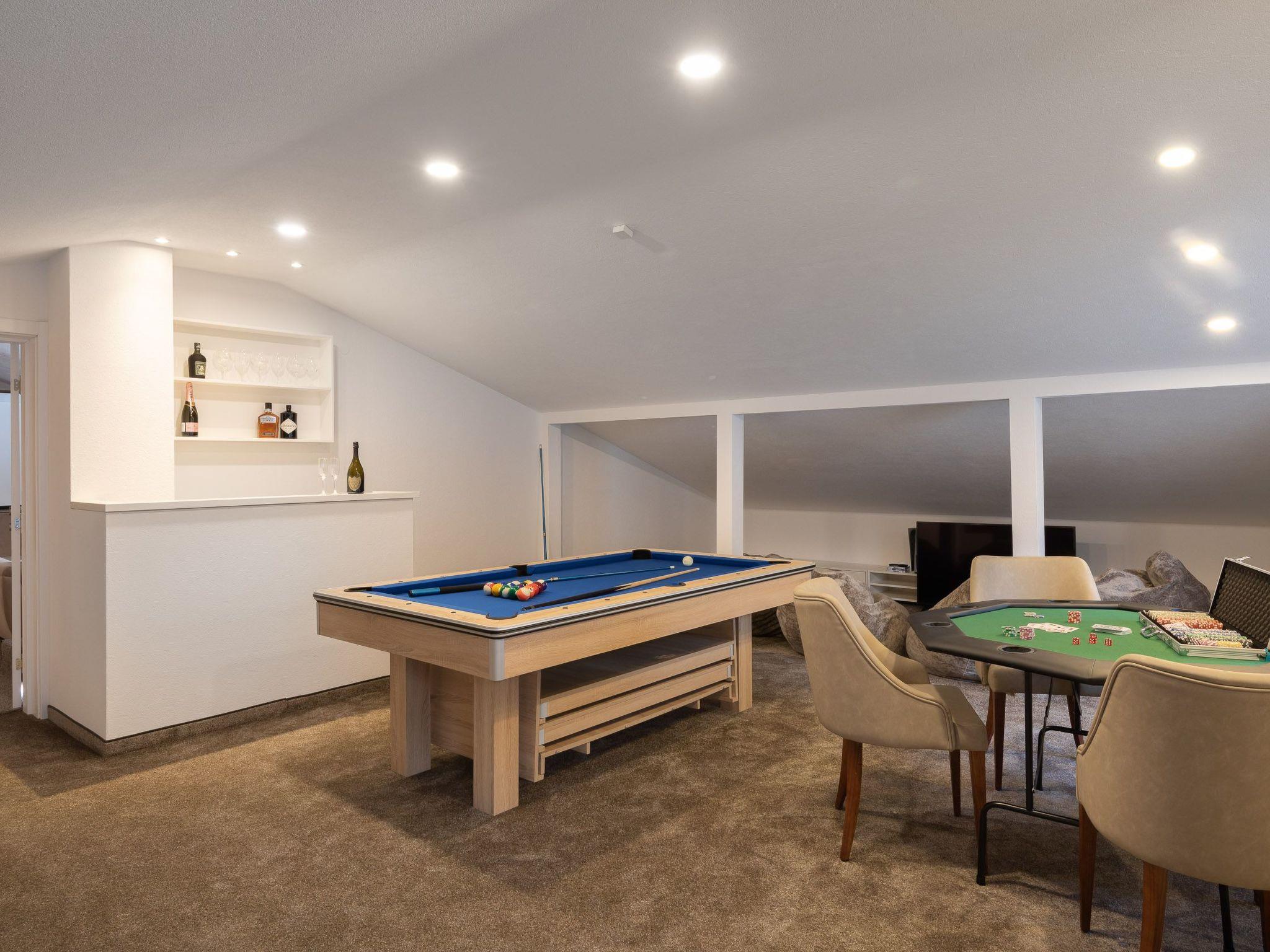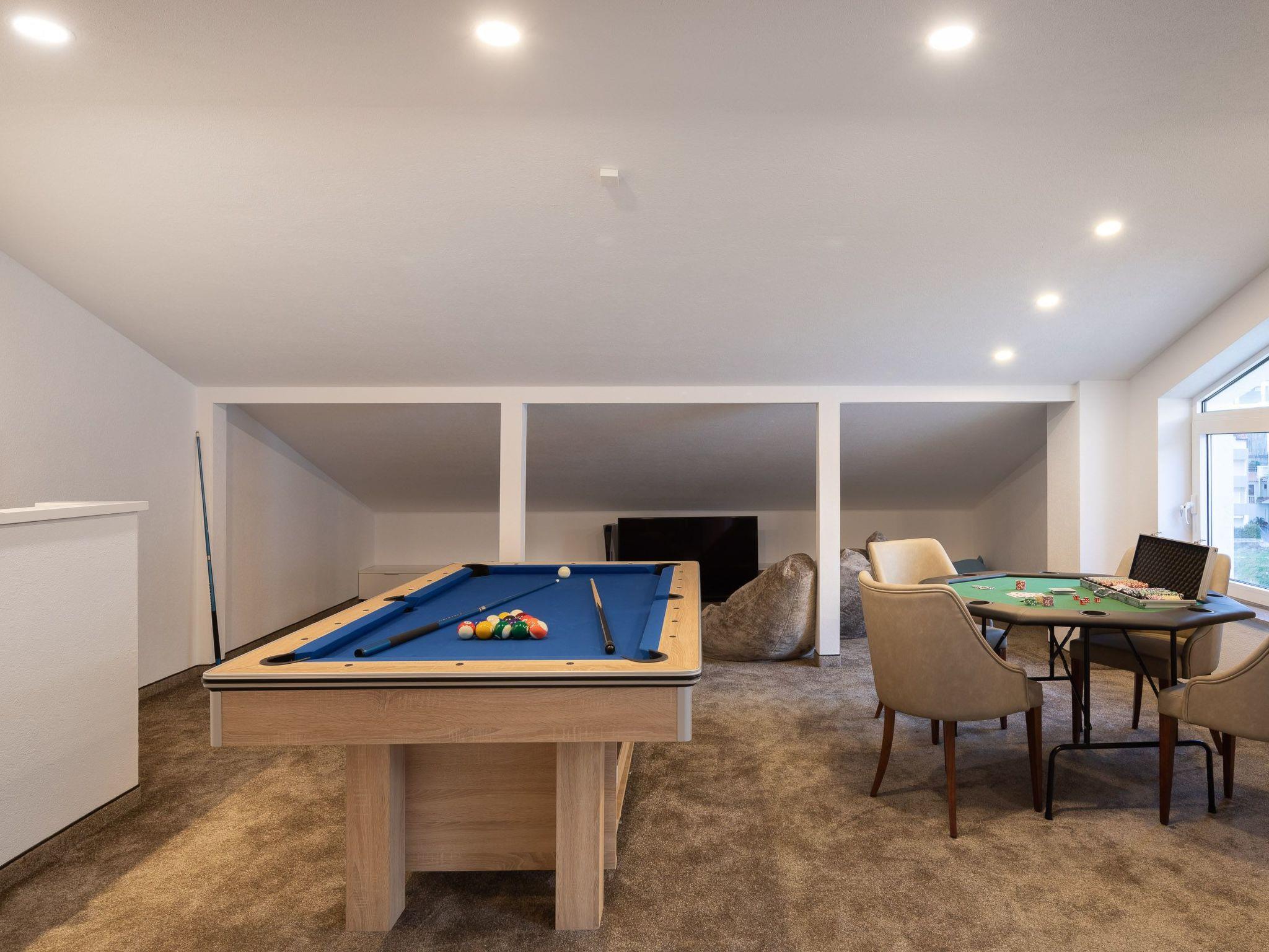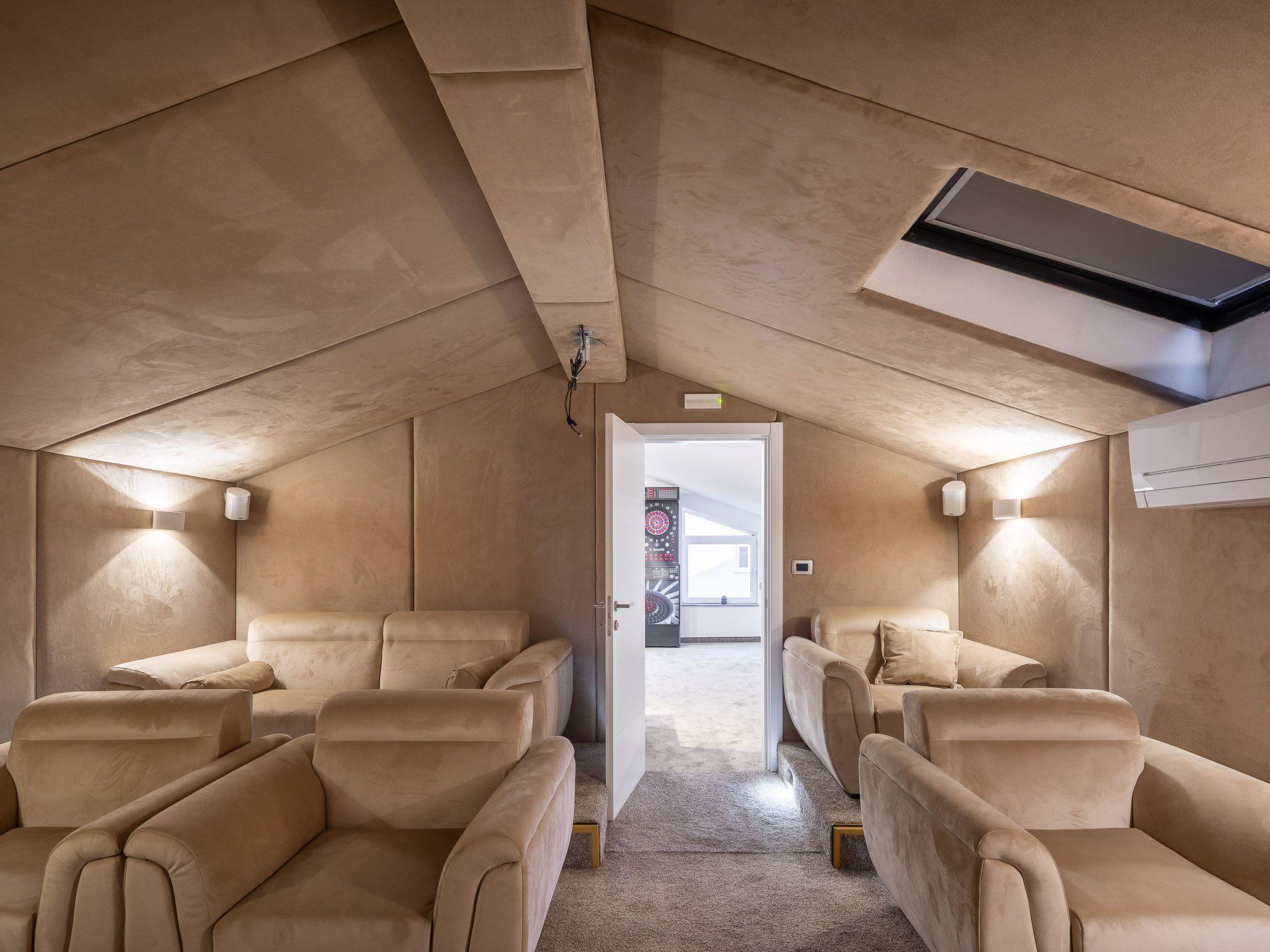 The Attic of the villa is specially adjusted for one spacious cinema room and playroom with pool table and darts.