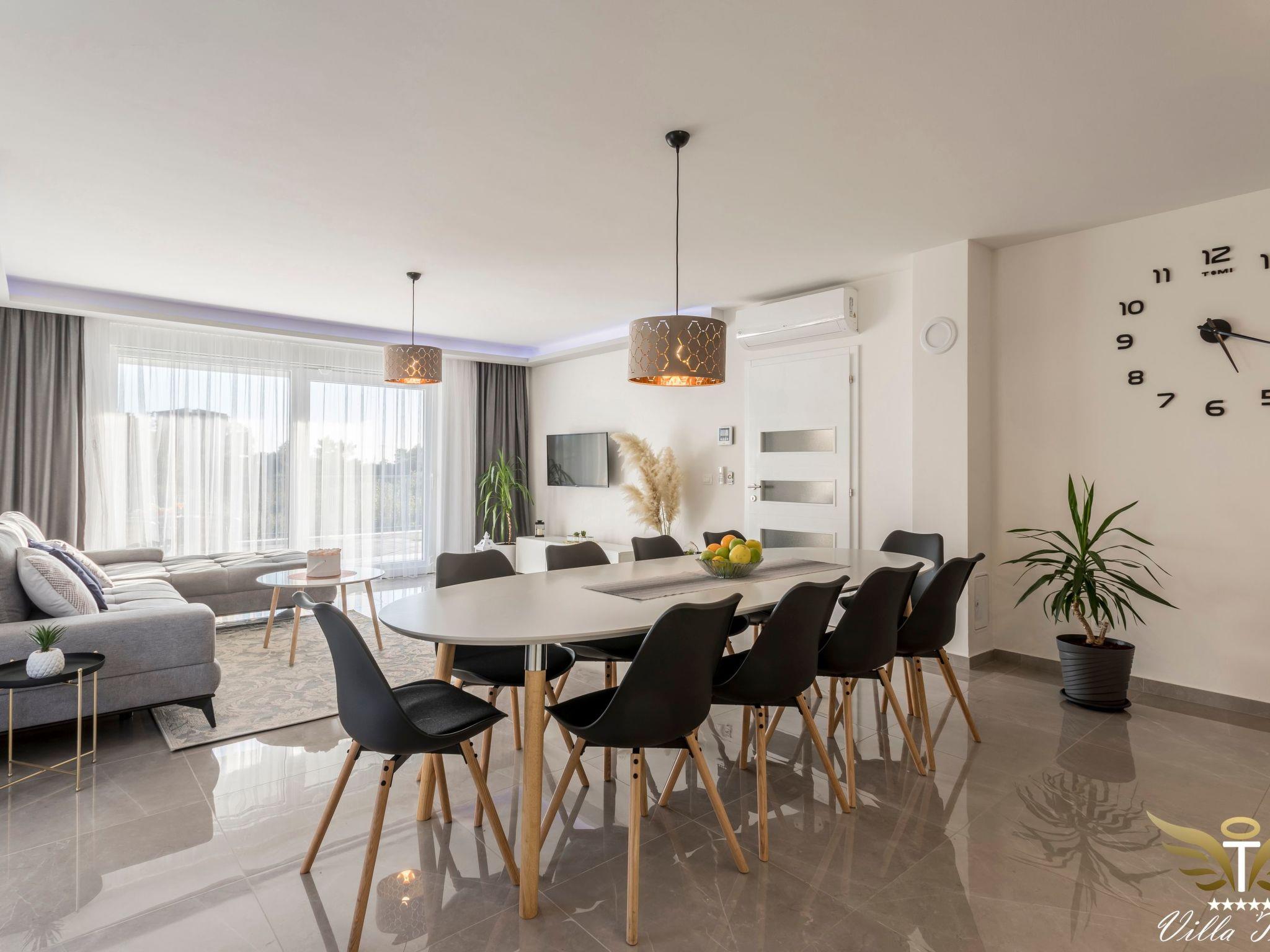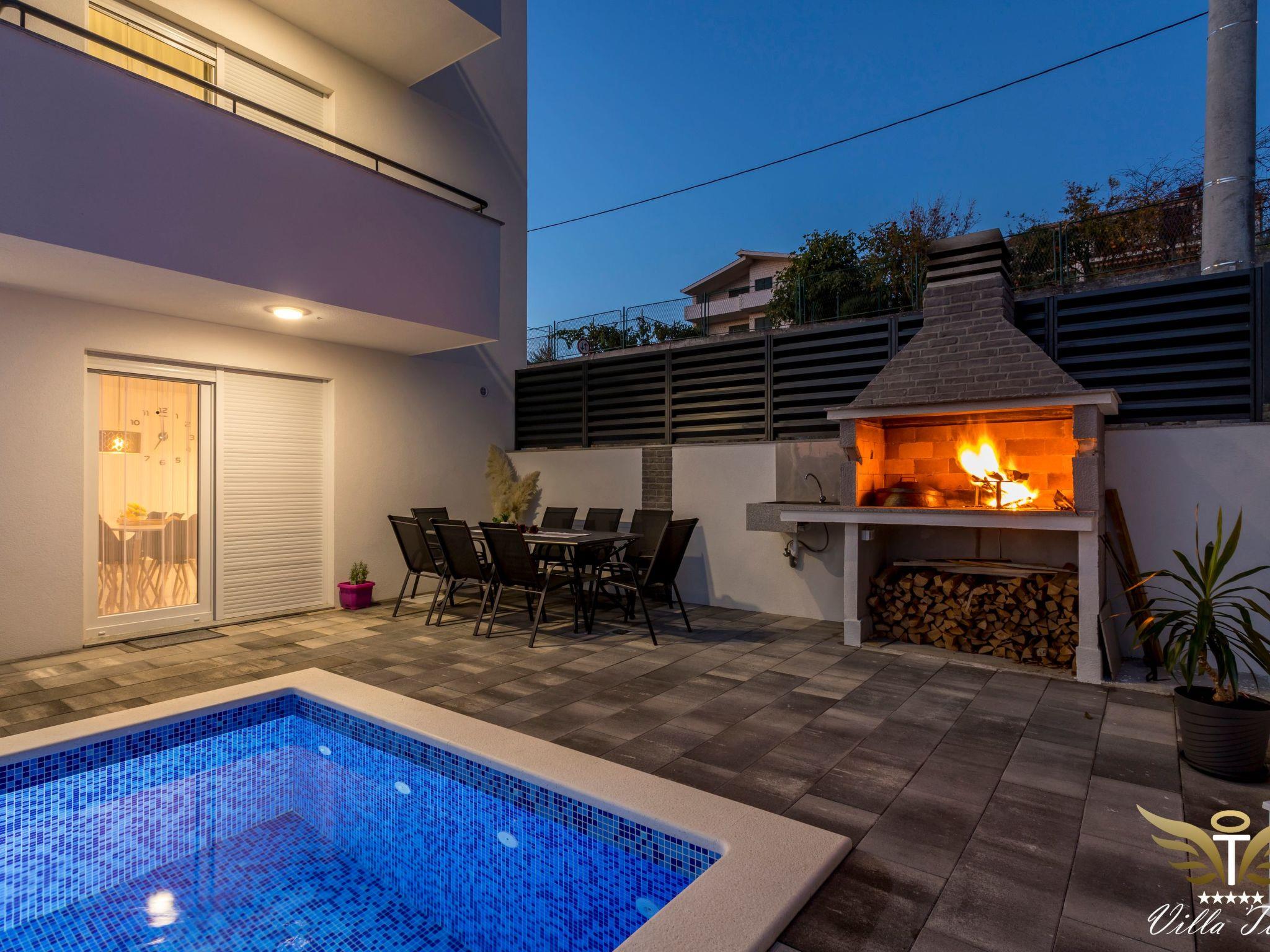The location in which this charming villa is situated guarantees a peaceful and relaxing holiday. Villa Tomi is only 9 km away from the 1700 year old town of Split, has the view of the beach, the sea, the island and panoramic views of the mountains. It is primarily intended for families and all those people who have come to rest and relax.