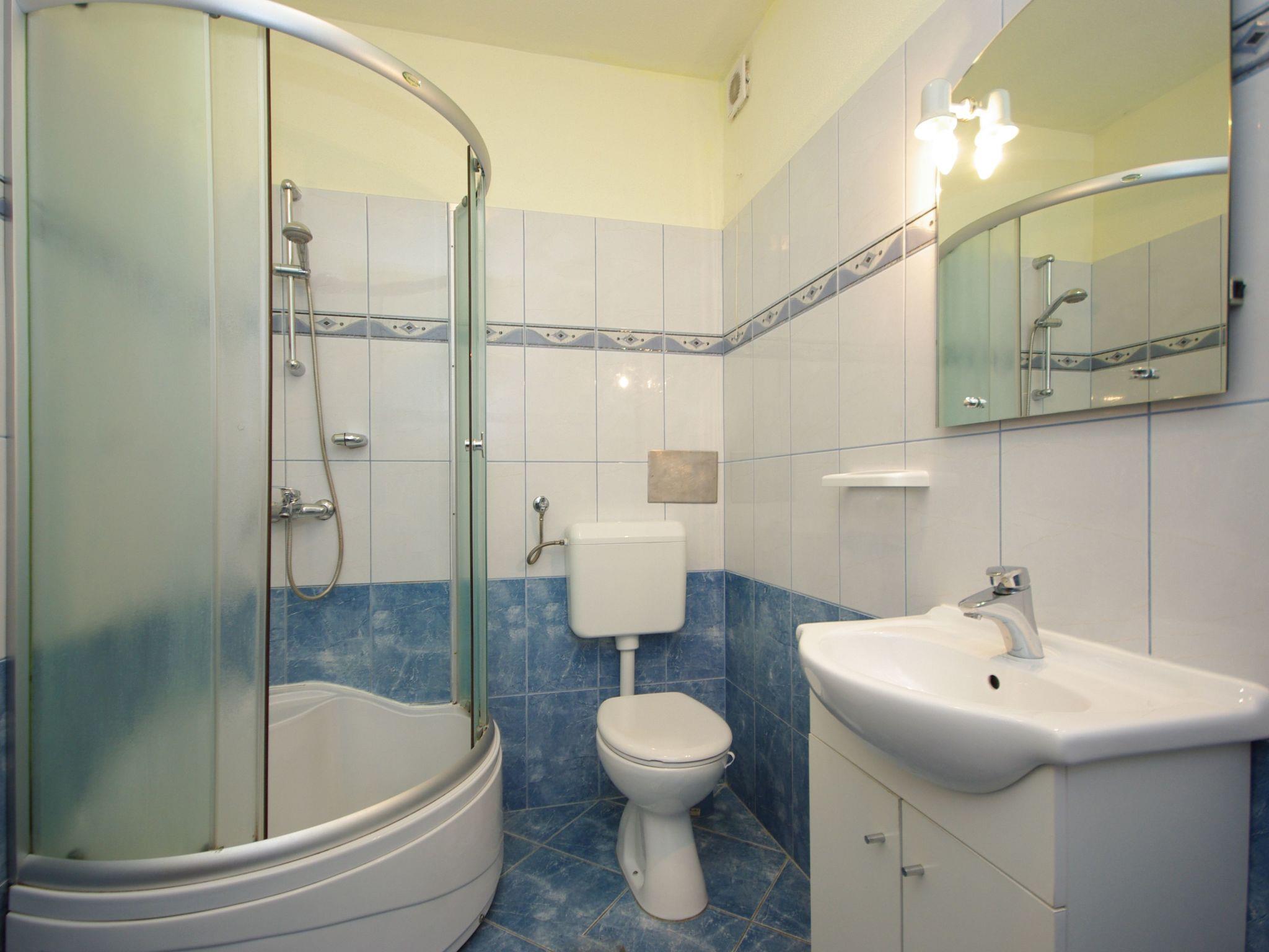 Apartment is located on the first floor, it consists of about 40 m² in size + a balcony of 8m2 overlooking the sea. This is a one-bedroom apartment (bedroom with two single beds), a kitchen adjoined with living room (with a double sofa for two more persons), and a bathroom which includes a toilet, a shower, a washbasin and a laundry washing machine.