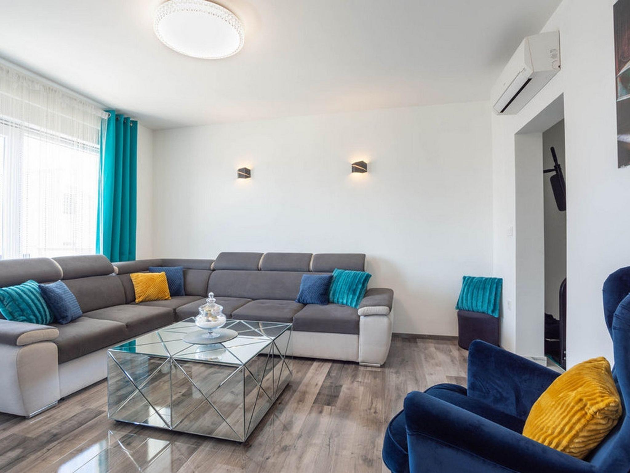 Ferienwohnung bietet Platz für 8 Gäste. Die Betten sind in Schlafzimmern, die es 3 gibt, und in Wohnzimmer, innerhalb einer Gesamtfläche von 114m2, angeordnet. Die Gäste haben eine eigene Terrasse zur Verfügung, auf der sie in warmen Sommernächten genießen können. Das Apartment bietet Meerblick. Es ist erlaubt, Speisen auf dem Gemeinschafts-Grill vorzubereiten. IM PREIS INBEGRIFFEN: Kurtaxe, Endreinigung, Klimatisierung, Parkplatz, Internet, Kinderbett, Zusatzbett, Bügeleisen, Bügelbrett, Föhn. Die Verfügbarkeit zusätzlicher Dienstleistungen in Ihrem reservierten Termin und die Preise derselben (falls nicht aufgeführt) müssen im Voraus überprüft werden. Zusätzliche Dienstleistungen die in der Zahlungsaufforderung nicht aufgeführt sind werden direkt beim Vermieter bezahlt, angenommen der Gast nutzt auch diese.