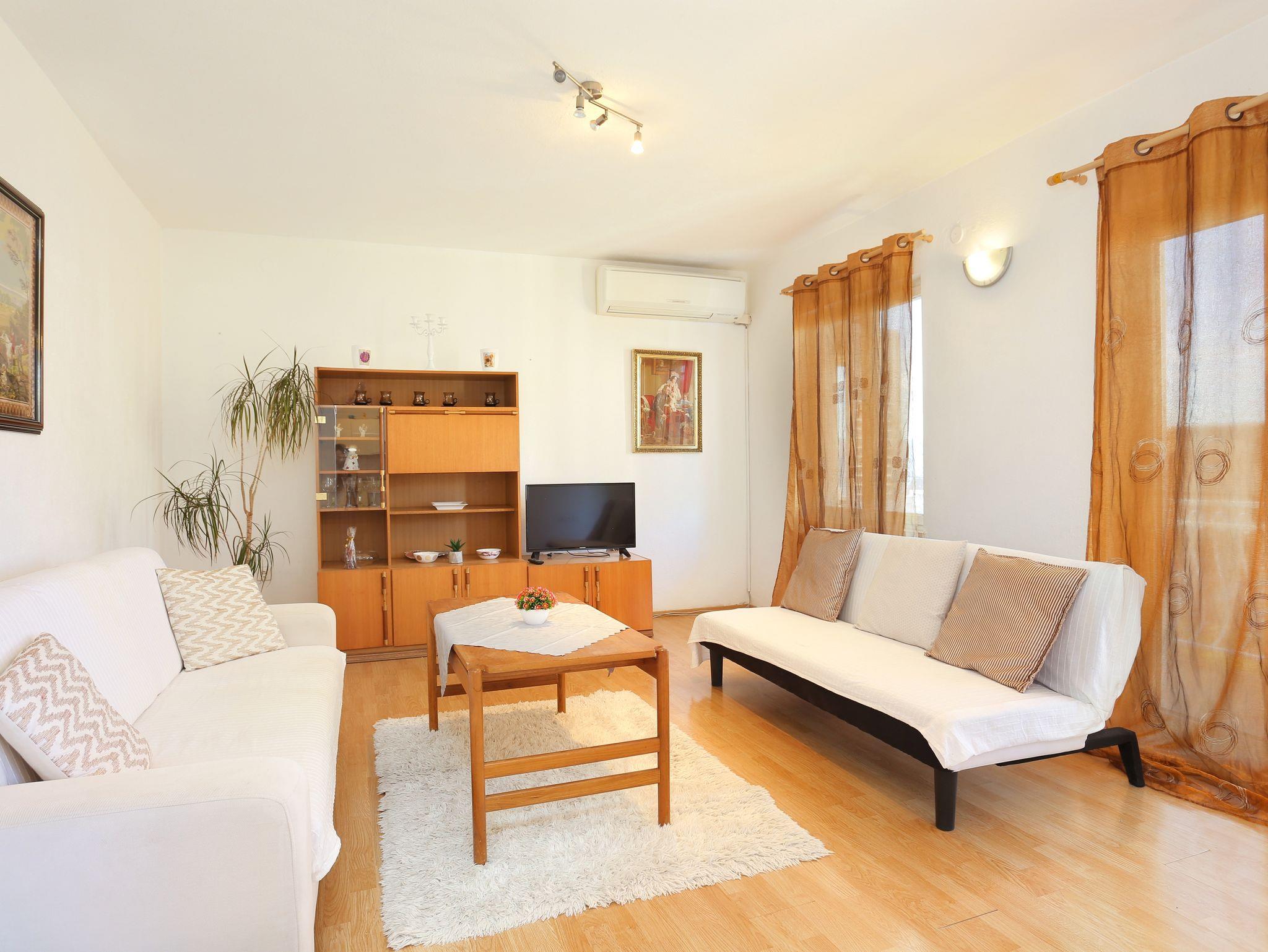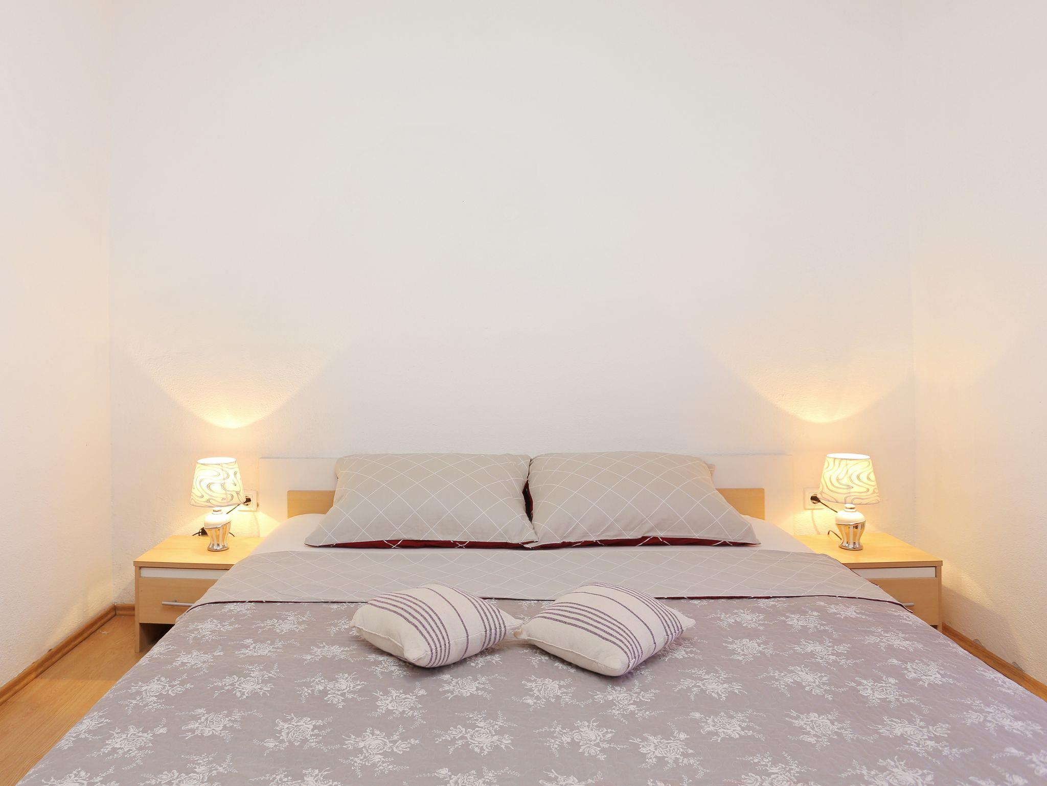 Ferienwohnung bietet Platz für 5 Gäste. Die Betten sind in Schlafzimmern, die es 3 gibt, innerhalb einer Gesamtfläche von 84m2, angeordnet. Die Gäste haben einen eigenen Balkon zur Verfügung, auf der sie in warmen Sommernächten genießen können. Das Apartment bietet Meerblick. IM PREIS INBEGRIFFEN: Kurtaxe, Endreinigung, Klimatisierung, Parkplatz, Internet, Bügeleisen, Bügelbrett, Föhn, 1 Bett für Kinder (im Preis enthalten). VERBINDLICHE ZUSÄTZLICHE KOSTEN: Aufzahlung für Kurzaufenthalte (prozentualer Zuschlag pro Nächtigungsanzahl: 30% - 1, 20% - 2, 10% - 3). Die Verfügbarkeit zusätzlicher Dienstleistungen in Ihrem reservierten Termin und die Preise derselben (falls nicht aufgeführt) müssen im Voraus überprüft werden. Zusätzliche Dienstleistungen die in der Zahlungsaufforderung nicht aufgeführt sind werden direkt beim Vermieter bezahlt, angenommen der Gast nutzt auch diese.