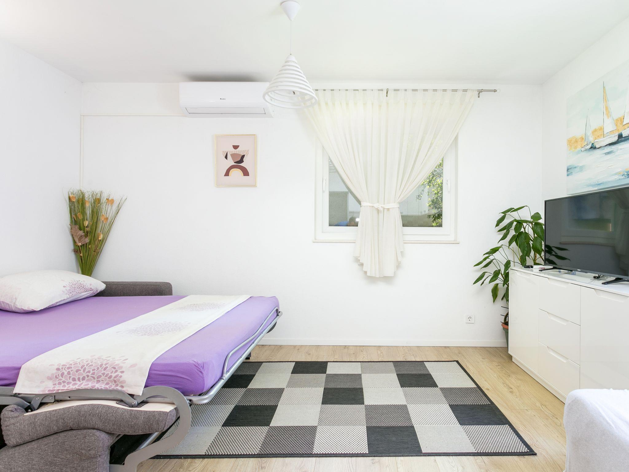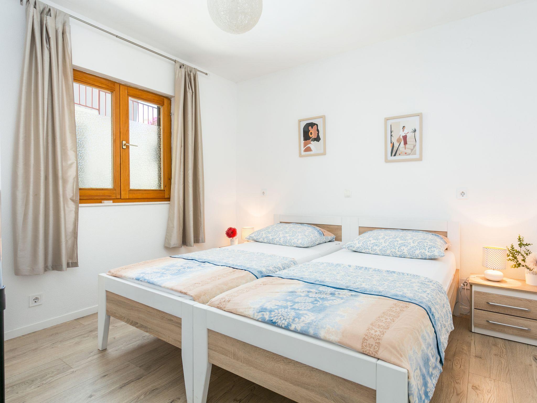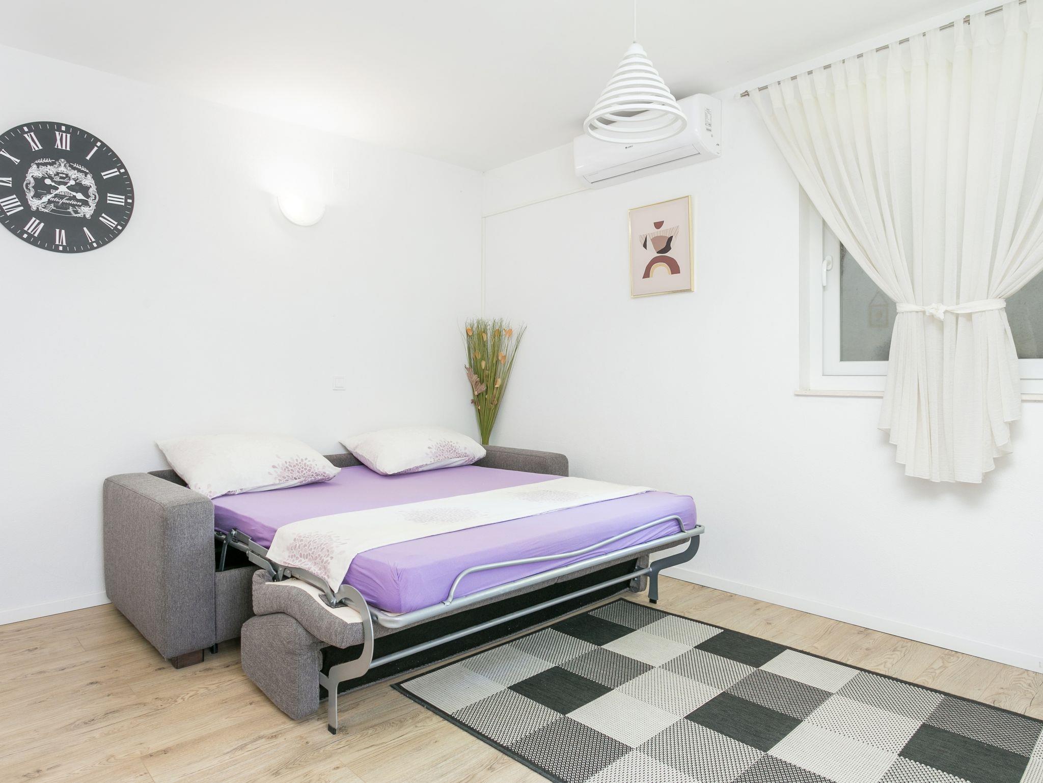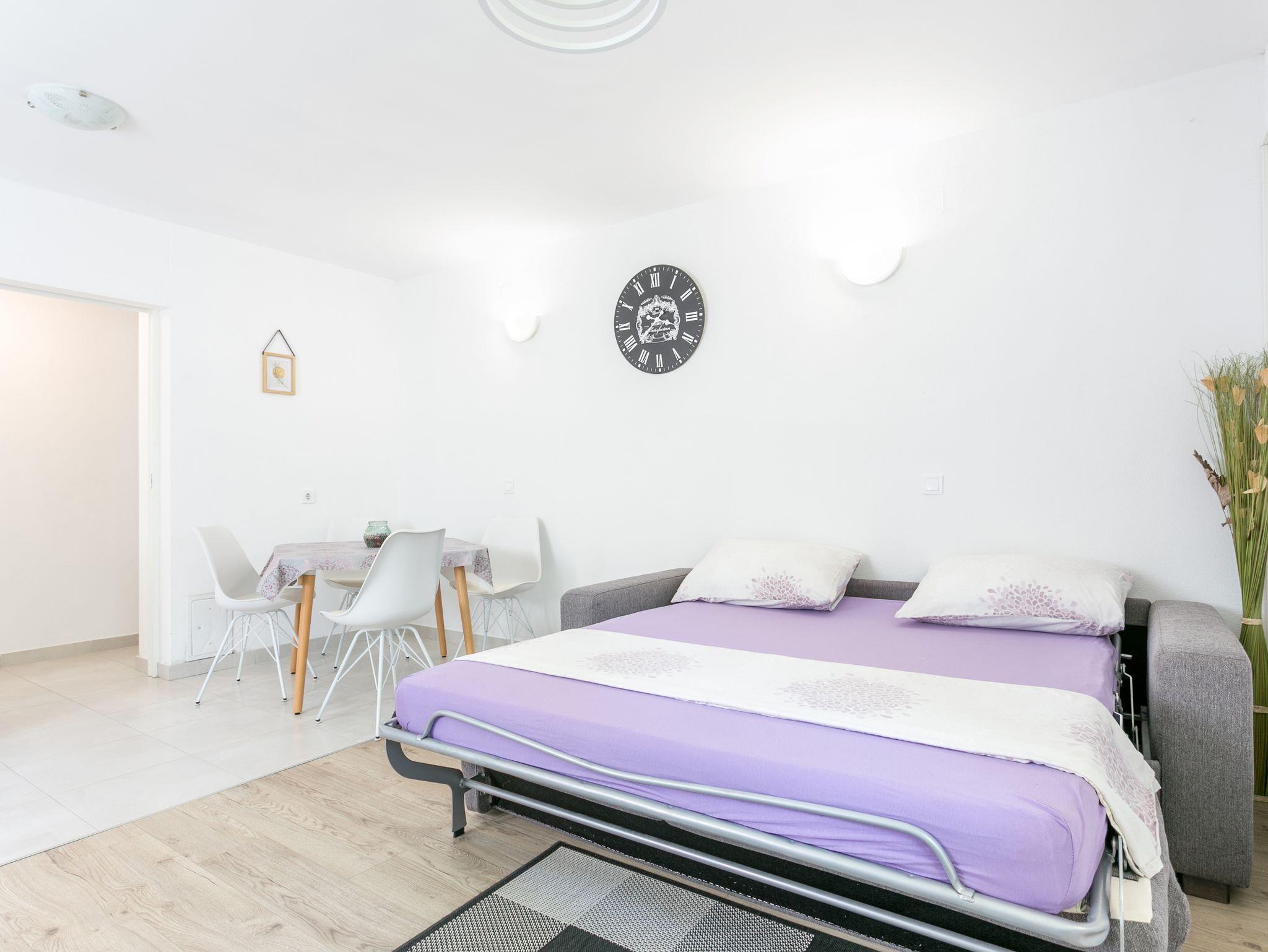 Ferienwohnung bietet Platz für 4 Gäste. Die Betten sind in Schlafzimmern, die es 1 gibt, und in Wohnzimmer, innerhalb einer Gesamtfläche von 45m2, angeordnet. Die Gäste haben eine eigene Terrasse zur Verfügung, auf der sie in warmen Sommernächten genießen können. IM PREIS INBEGRIFFEN: Kurtaxe, Endreinigung, Klimatisierung, Parkplatz, Internet, Bügeleisen, Bügelbrett, Föhn. VERBINDLICHE ZUSÄTZLICHE KOSTEN: Aufzahlung für Kurzaufenthalte (prozentualer Zuschlag pro Nächtigungsanzahl: 30% - 1, 20% - 2, 10% - 3). Die Verfügbarkeit zusätzlicher Dienstleistungen in Ihrem reservierten Termin und die Preise derselben (falls nicht aufgeführt) müssen im Voraus überprüft werden. Zusätzliche Dienstleistungen die in der Zahlungsaufforderung nicht aufgeführt sind werden direkt beim Vermieter bezahlt, angenommen der Gast nutzt auch diese.